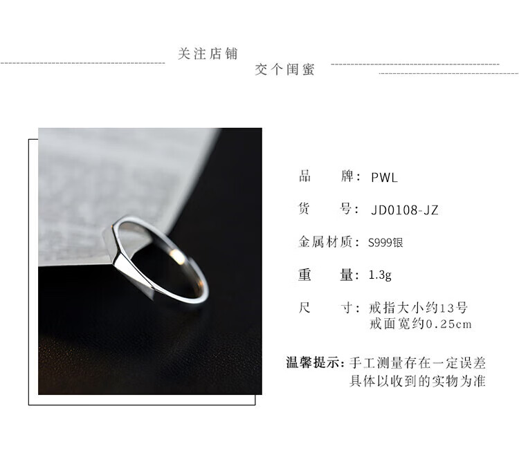 PWL999 solid silver ring women's ring niche design 2025 new trendy high-end fashion cold style index ring S999 silver ring ring