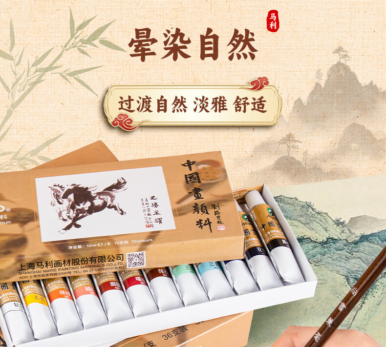 Marie s Chinese painting pigment large capacity 32ml refill single pack landscape painting ink painting professional grade meticulous painting Chinese painting pigment monochrome Chinese painting pigment 32ml phthalocyanine blue