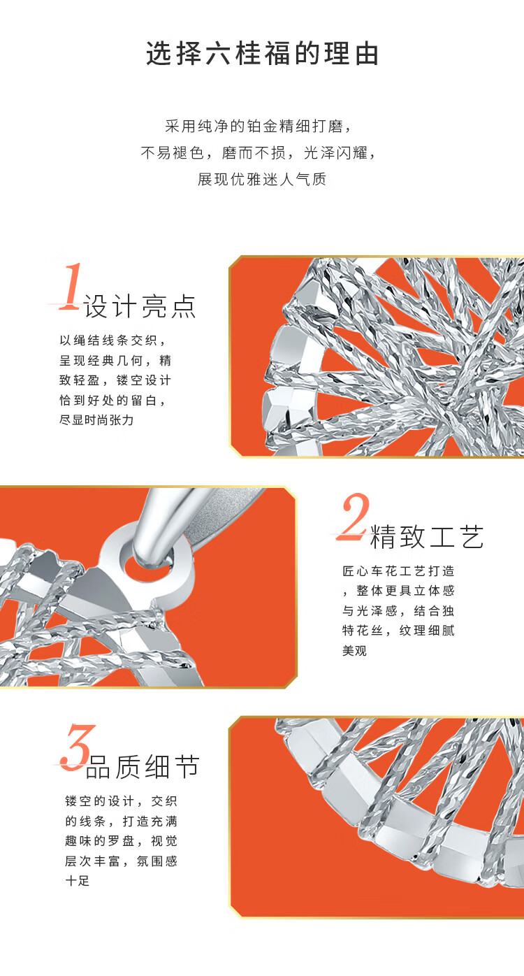 Liuguifu Jewelry PT950 Platinum White Gold Hollow Geometric Round Pendant Women's Necklace Birthday Gift 1.55g