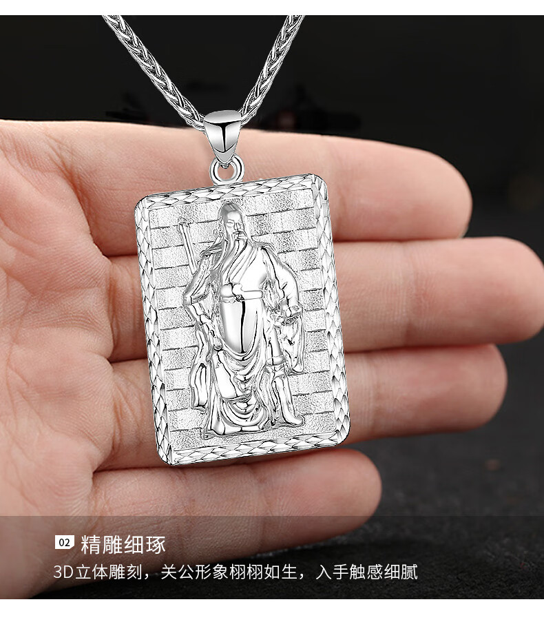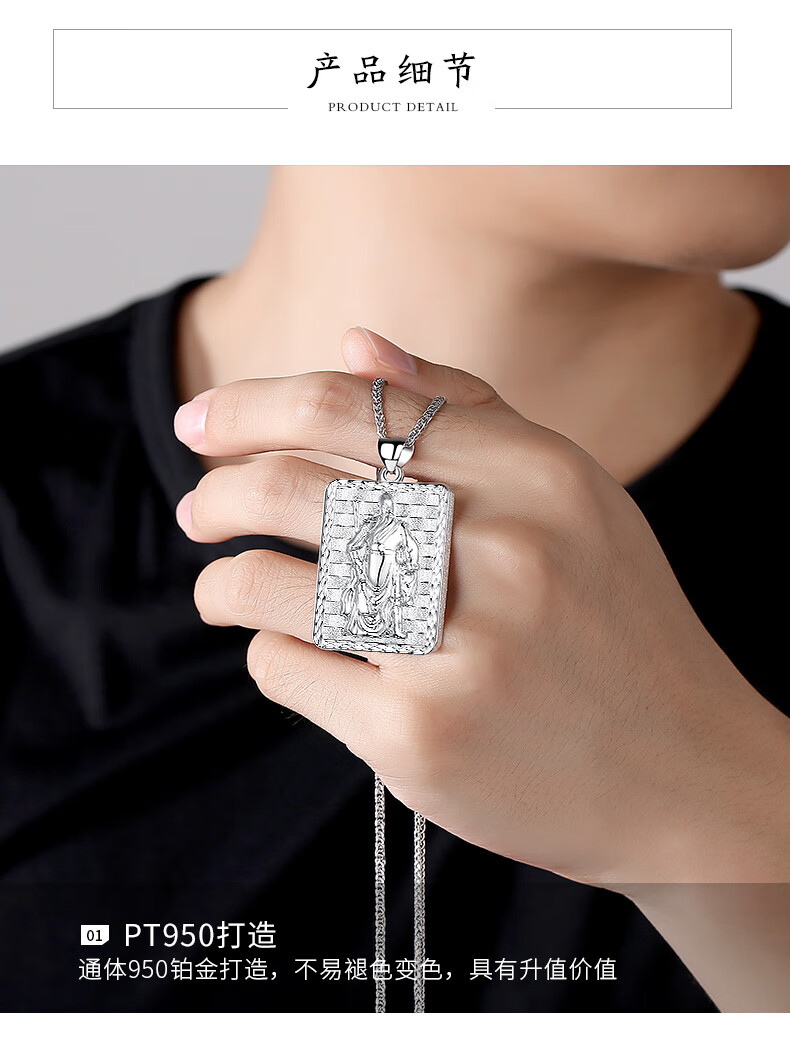 Miss JuJu pt950 platinum pendant platinum necklace pendant boutique 3D relief Guan Gong men's large tag pendant customized 16-18g + delivery black leather rope