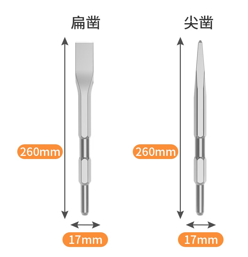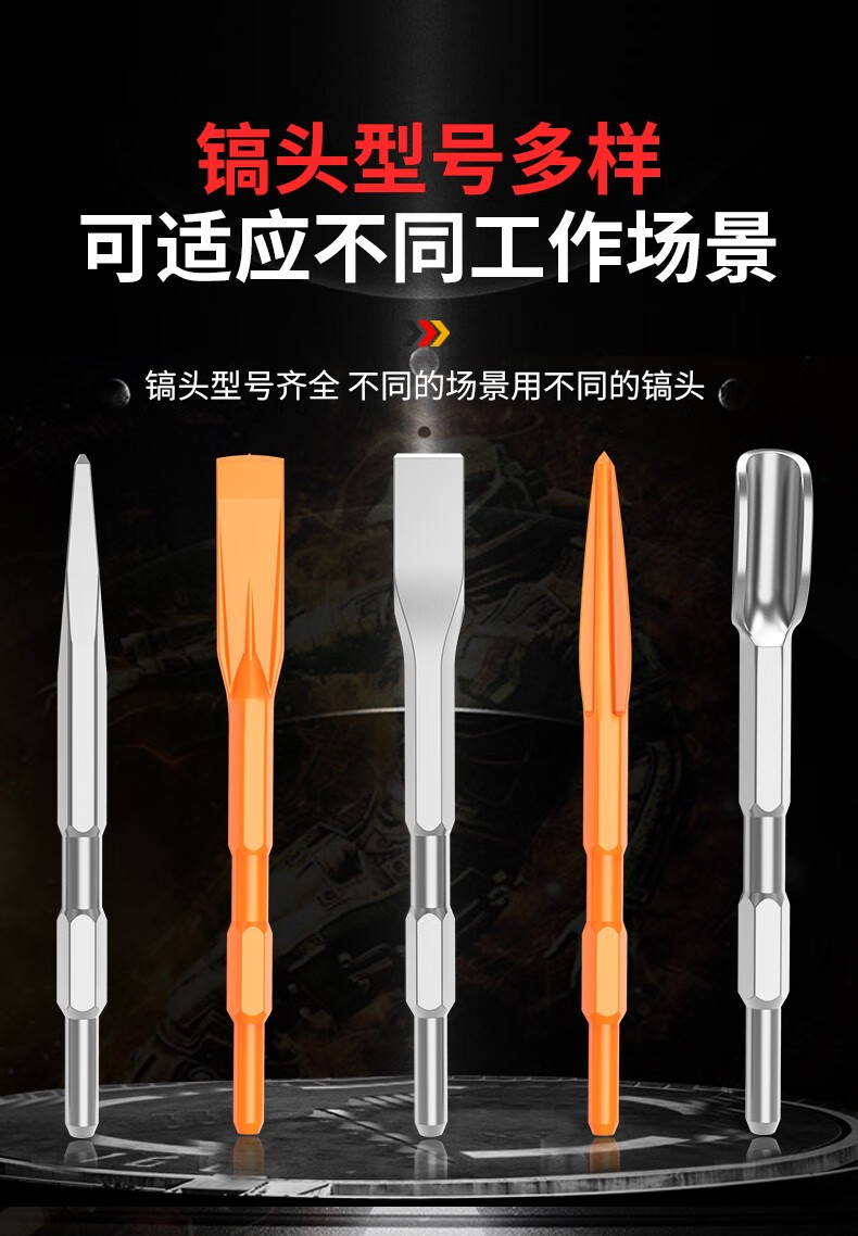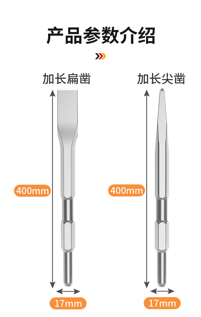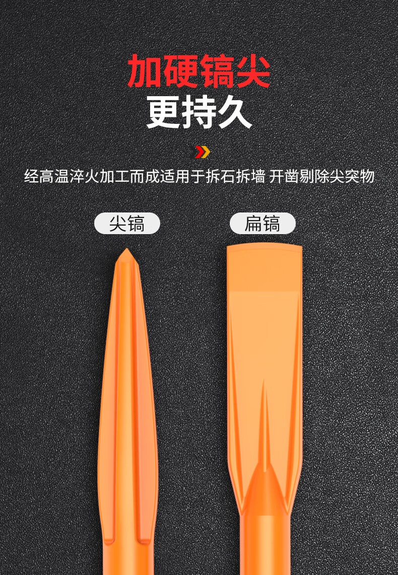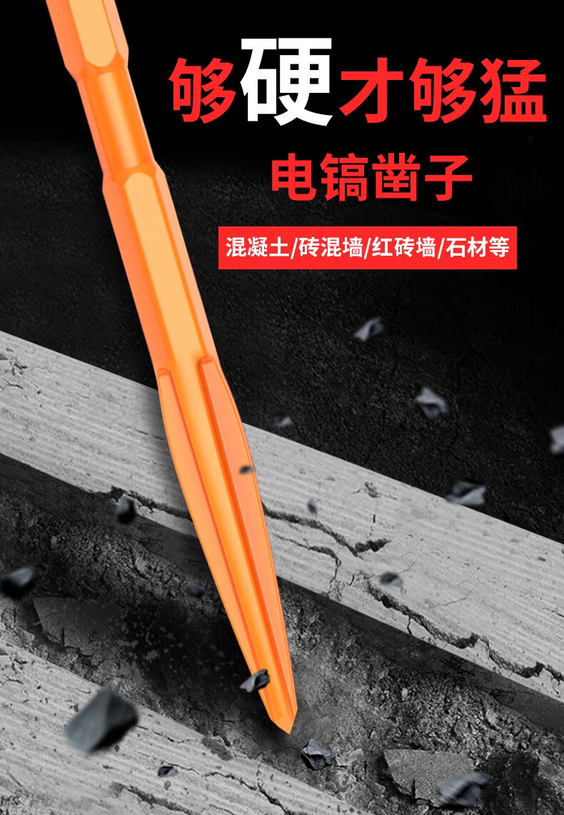 Leiya 6-corner handle electric pick, pick-point chisel, long hexagonal tip chisel, flat chisel, alloy electric hammer, impact drill bit, concrete shovel, pointed chisel (hexagonal) (wear-resistant yellow)