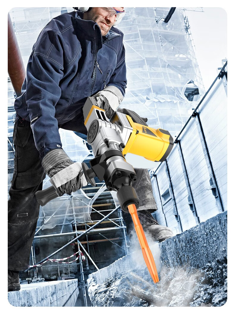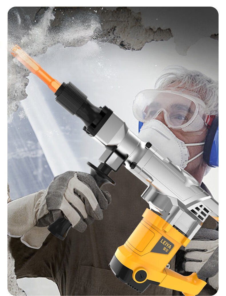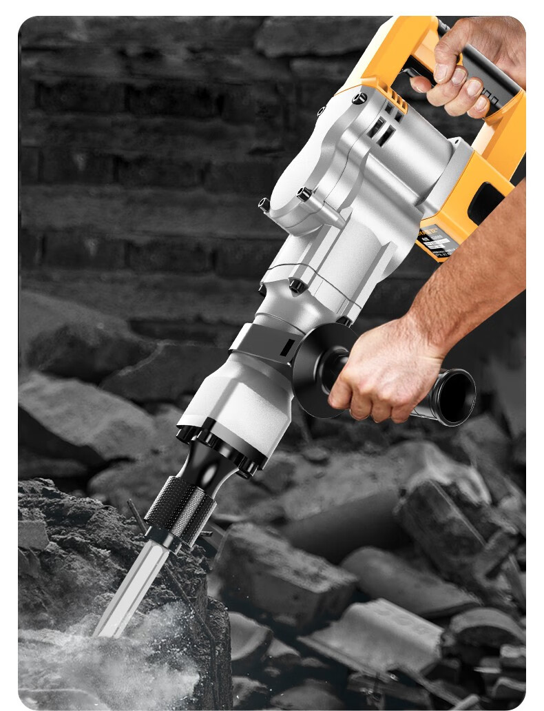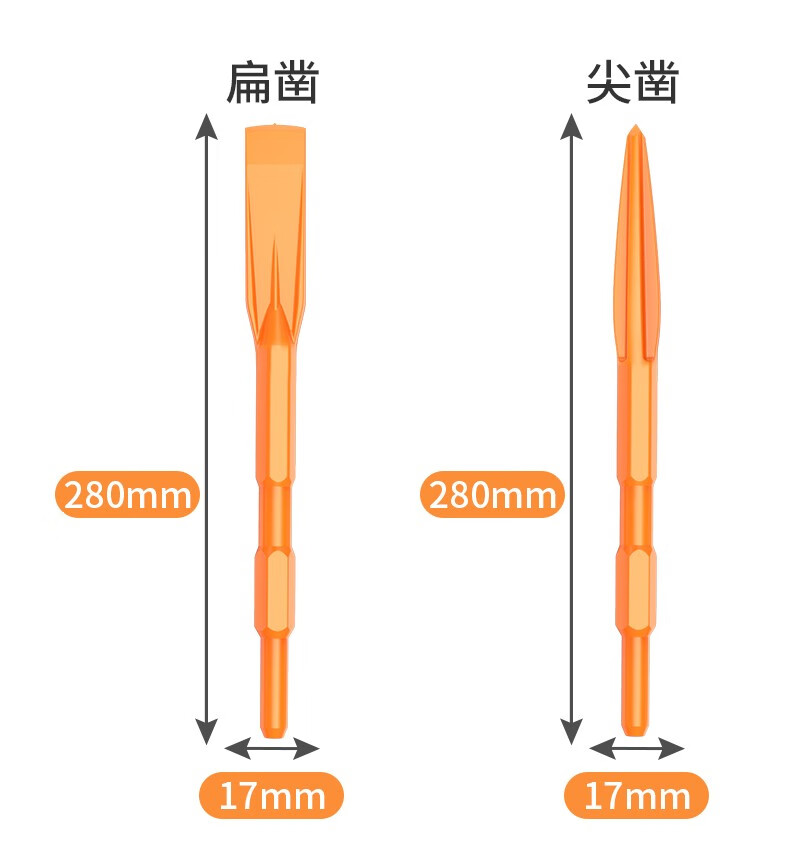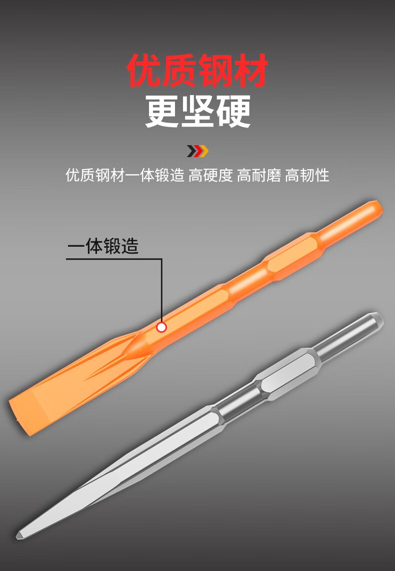 Leiya 6-corner handle electric pick, pick-point chisel, long hexagonal tip chisel, flat chisel, alloy electric hammer, impact drill bit, concrete shovel, pointed chisel (hexagonal) (wear-resistant yellow)