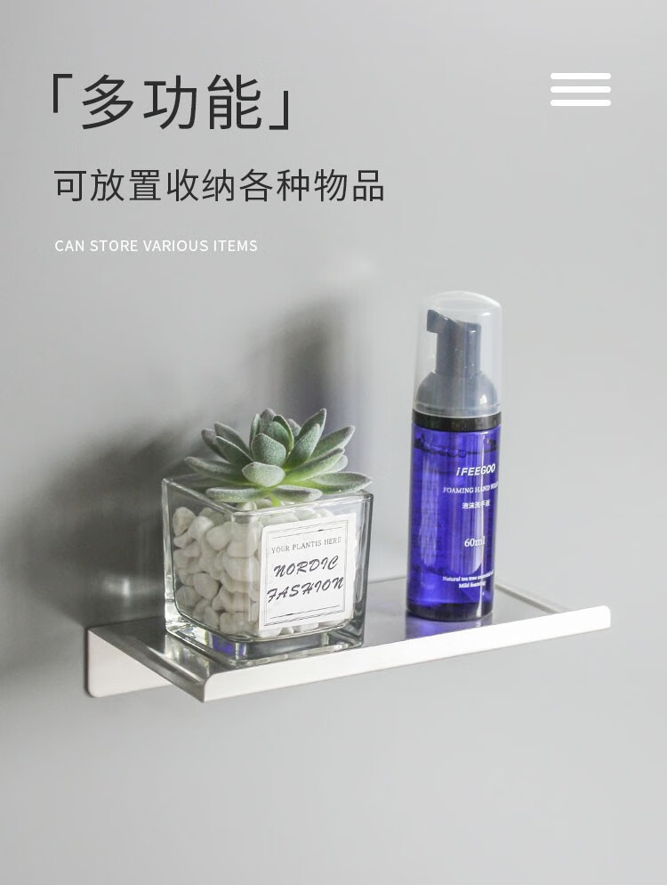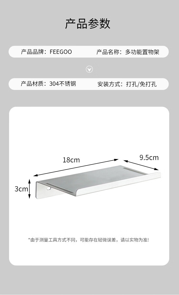 FEEGOO punch-free bathroom mobile phone shelf bathroom storage rack wall-mounted toilet tray rack stainless steel/ABS material brushed storage rack stainless steel