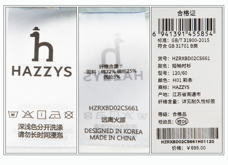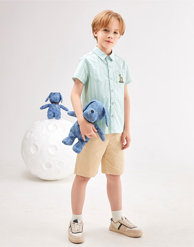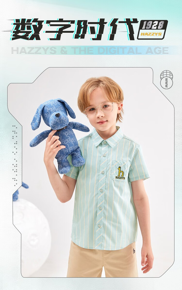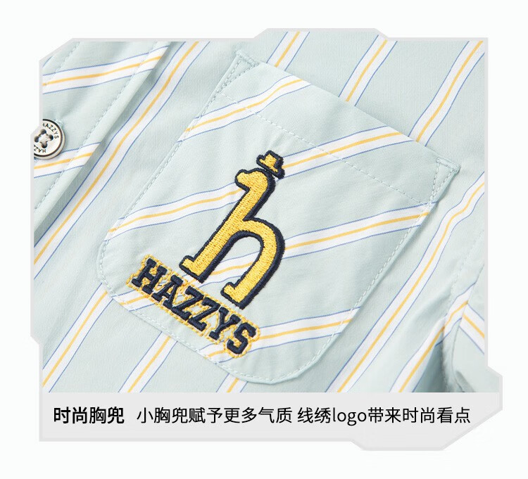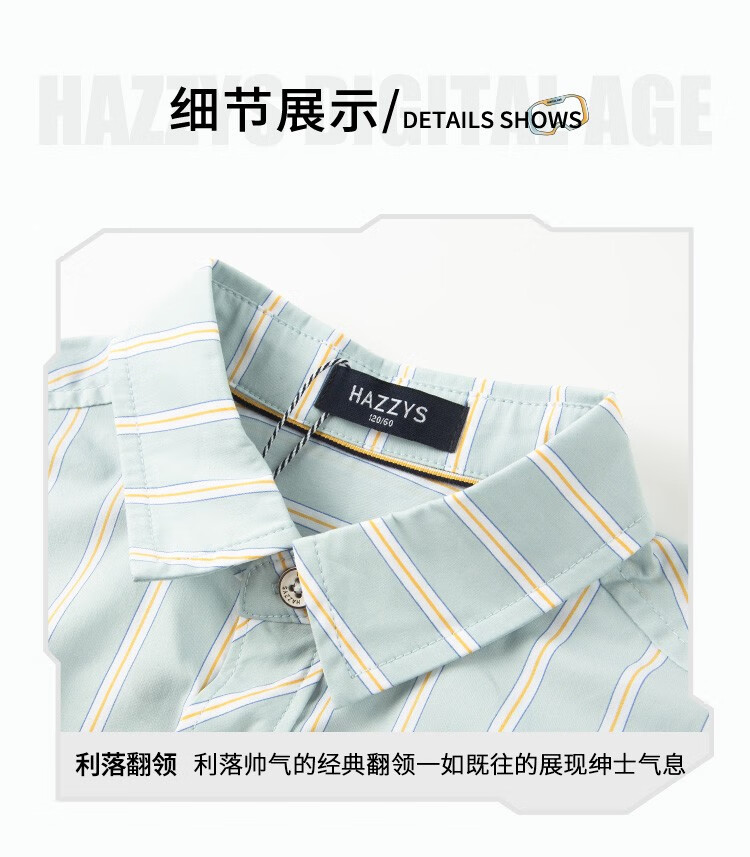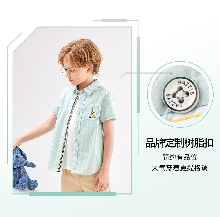HAZZYS brand children's clothing boys summer new style simple thin and breathable classic lapel short-sleeved shirt color bar 110