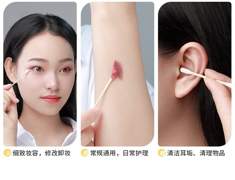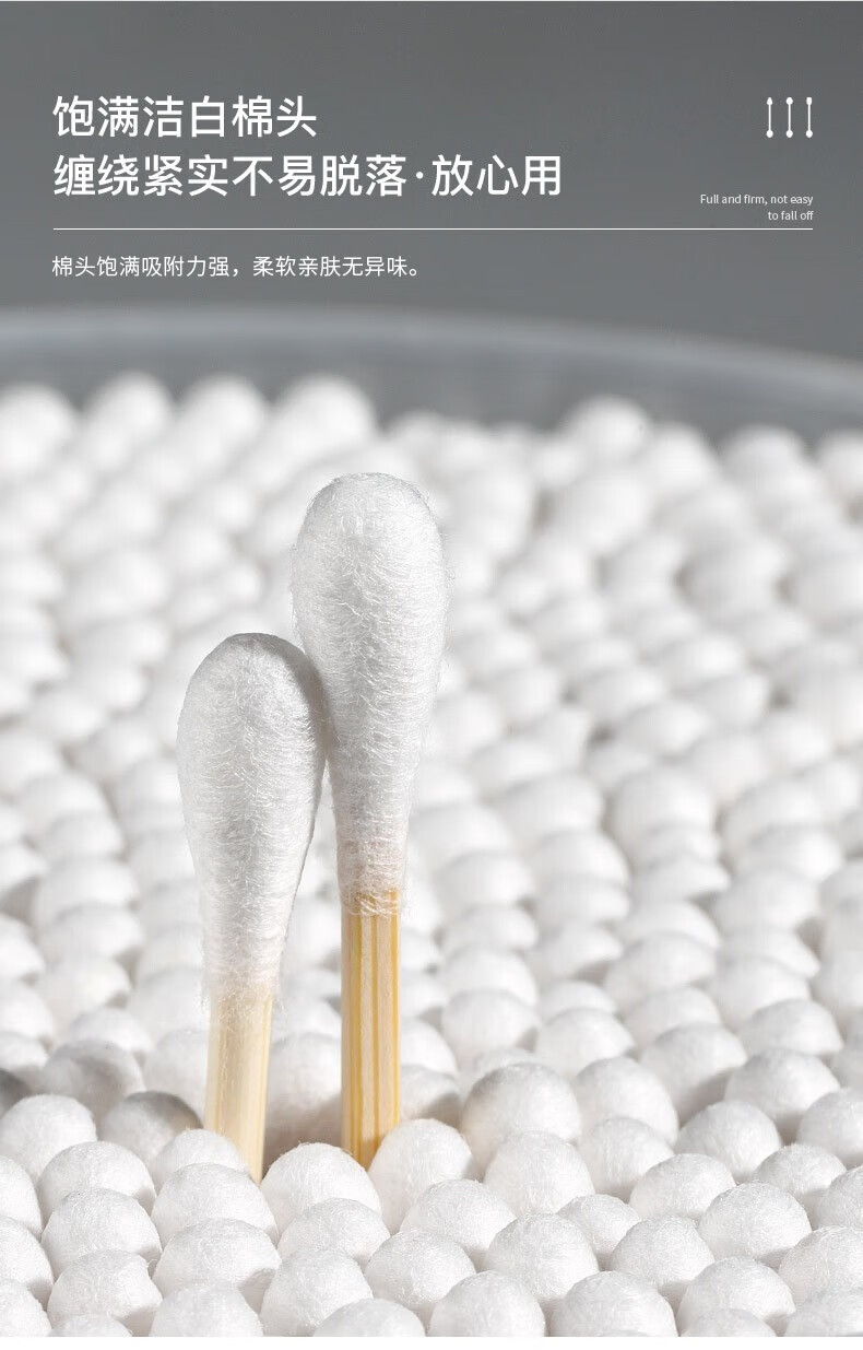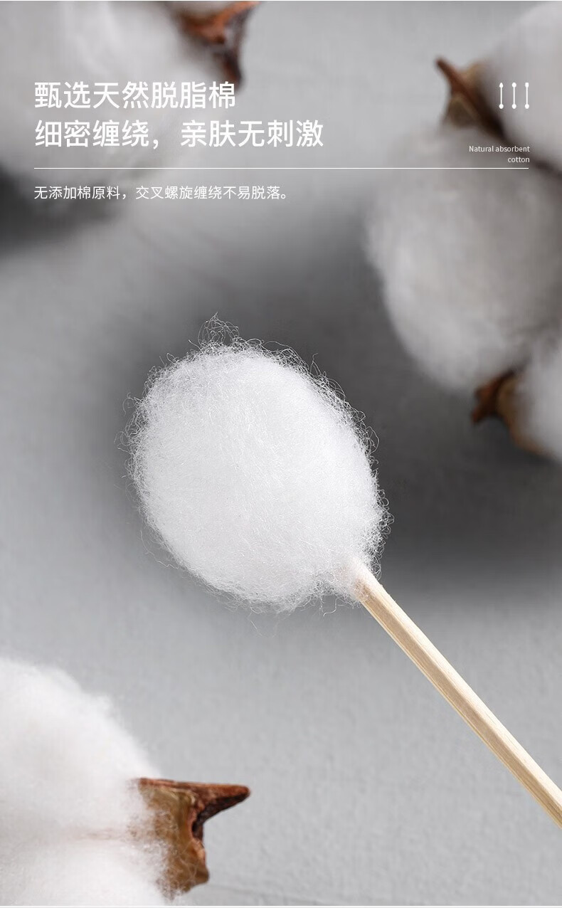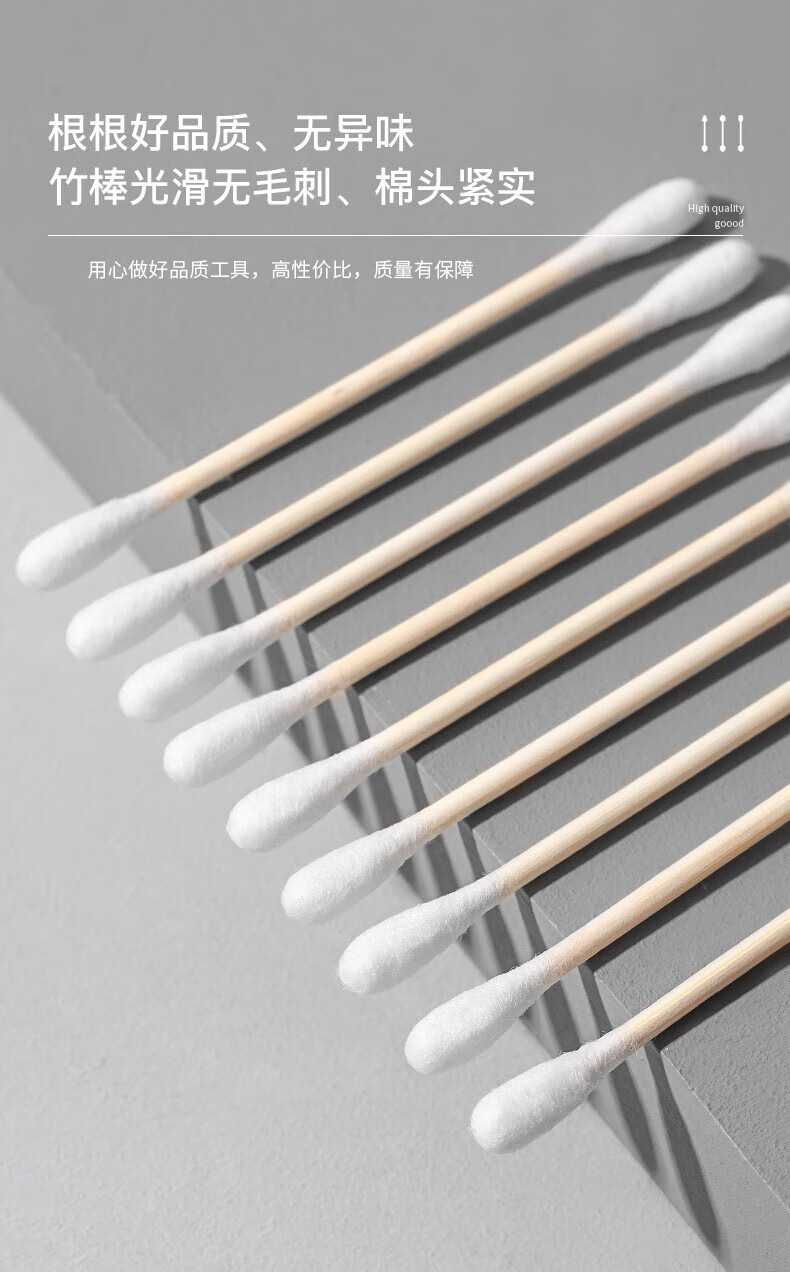 Tixia cotton swabs for ears, double-headed cosmetic box, adult wooden bamboo swabs, non-shedding beauty cotton swabs, cleaning cotton swabs, regular style 500 pieces, 1 box, double round heads