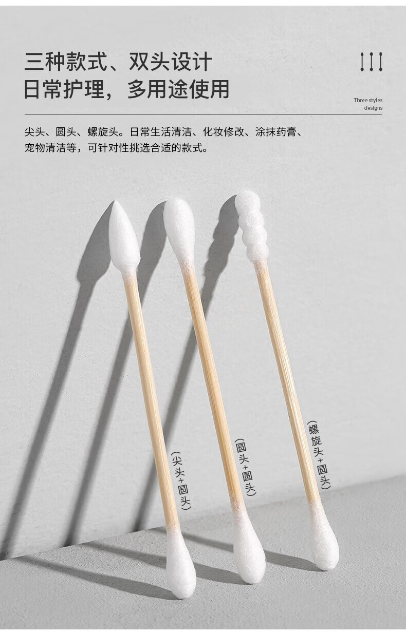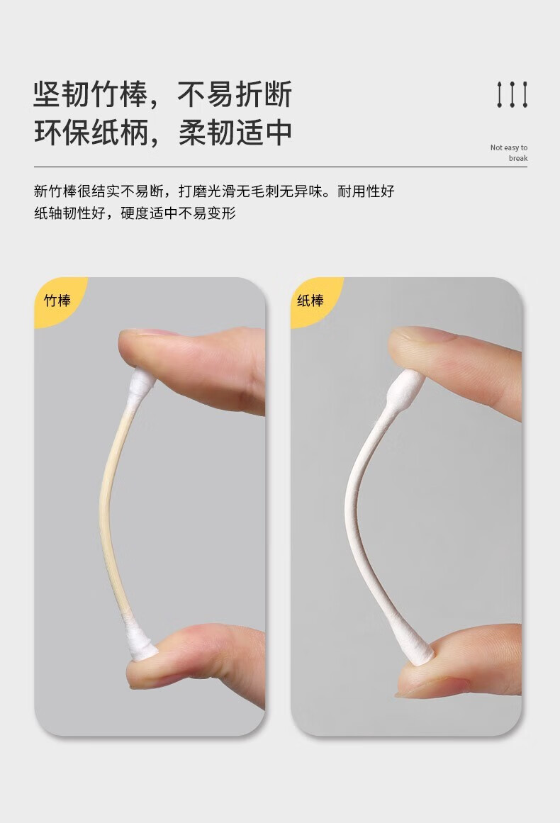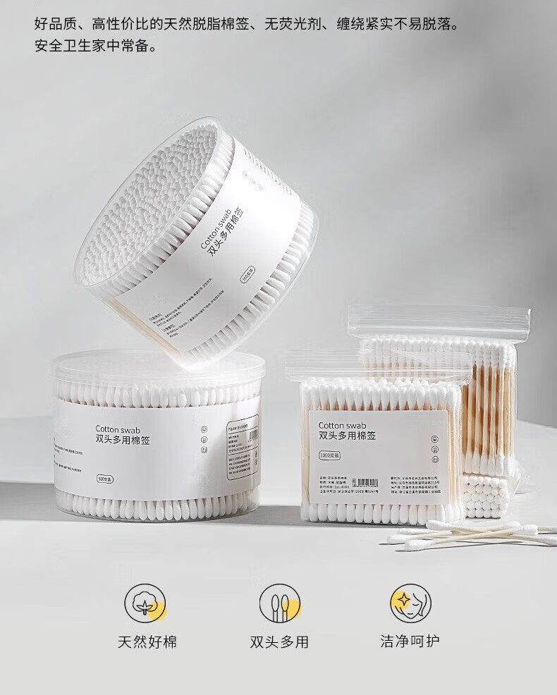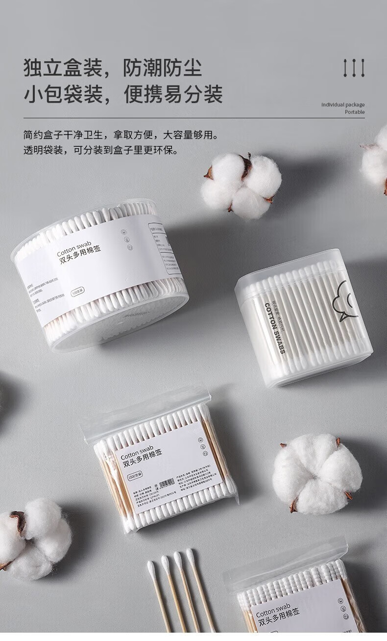 Tixia cotton swabs for ears, double-headed cosmetic box, adult wooden bamboo swabs, non-shedding beauty cotton swabs, cleaning cotton swabs, regular style 500 pieces, 1 box, double round heads
