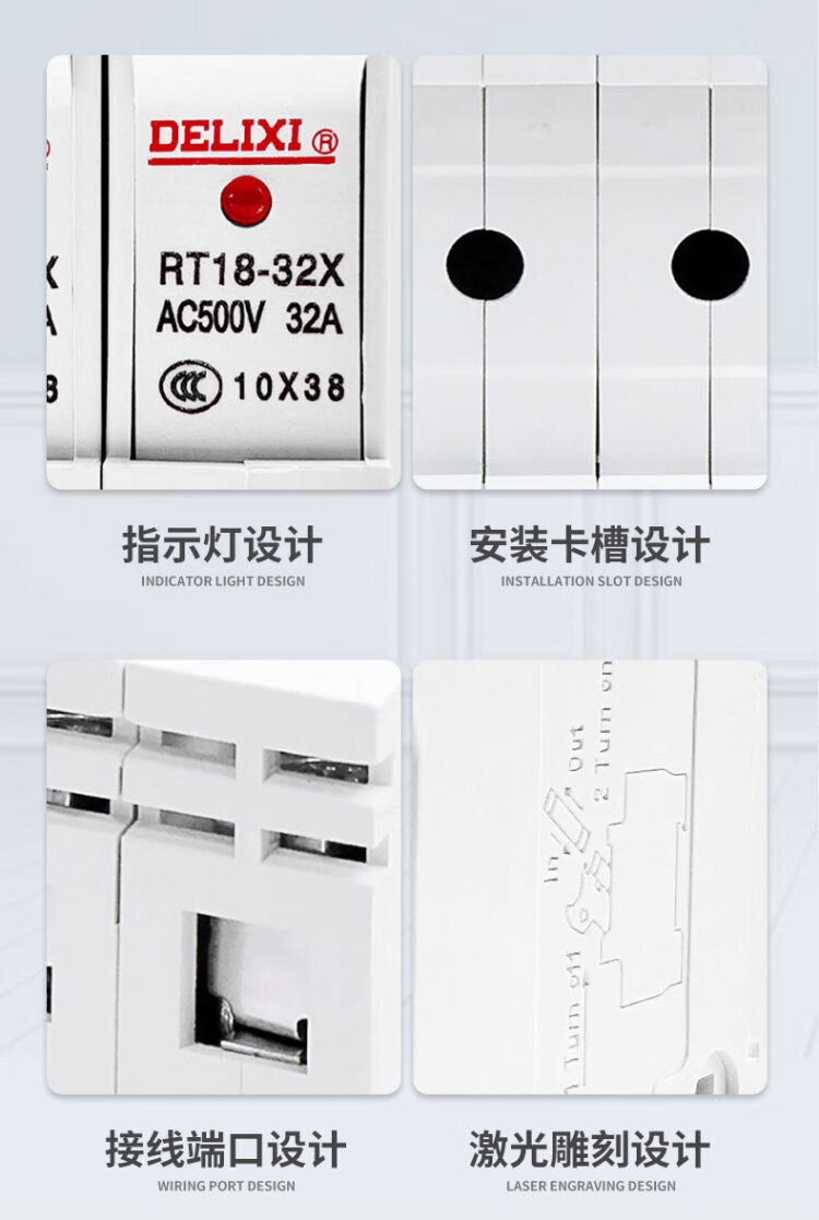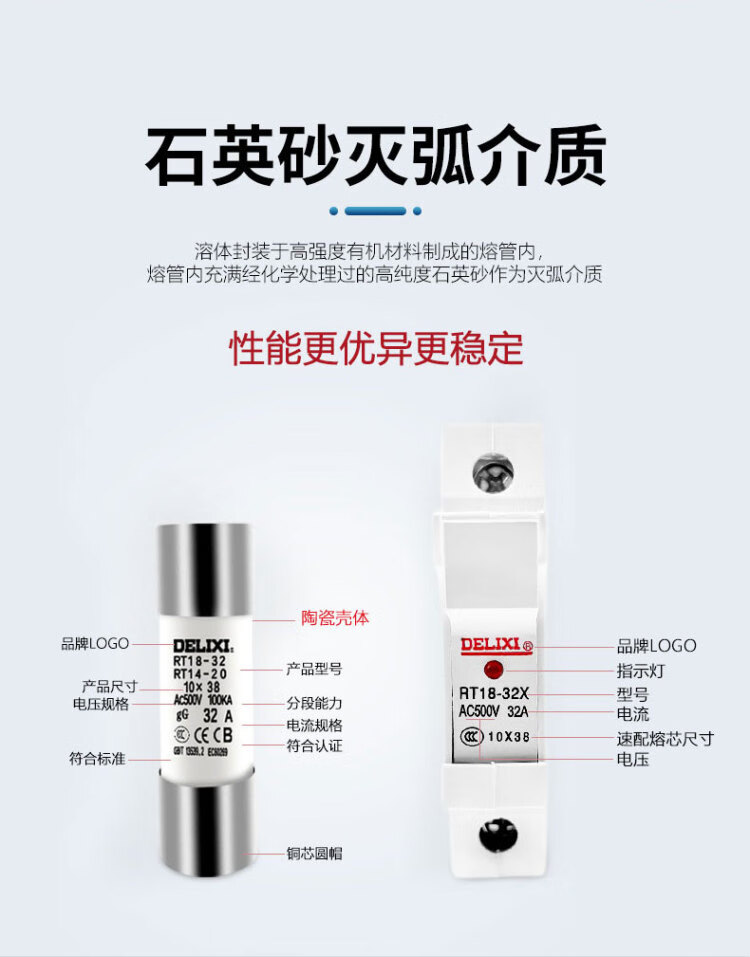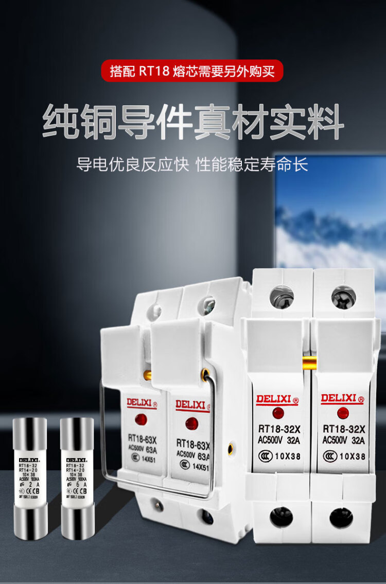 Delixi low voltage fuse fuse base rt18-32x fuse body 10*38rt-14 fuse core 10 pieces 10*38-2A10 pieces