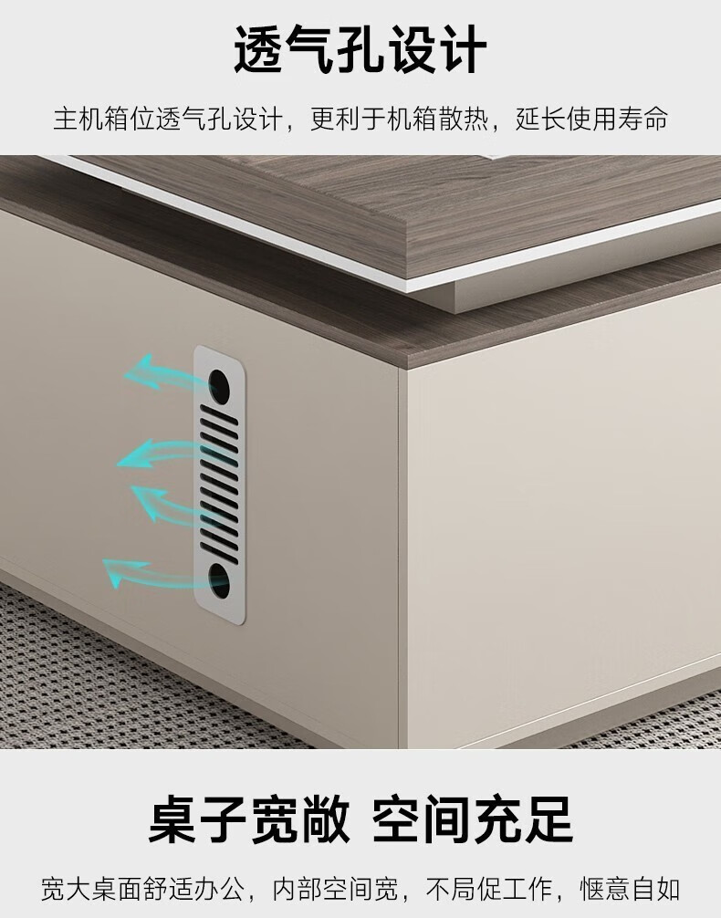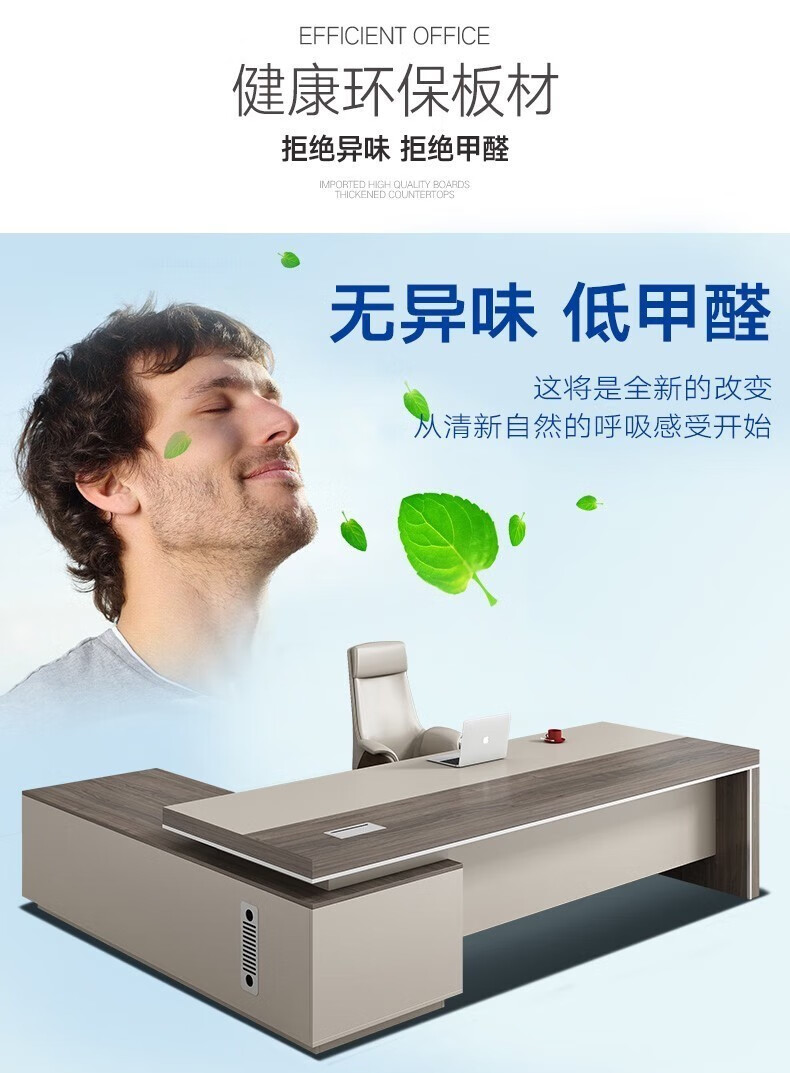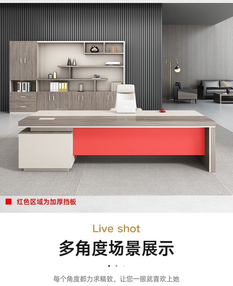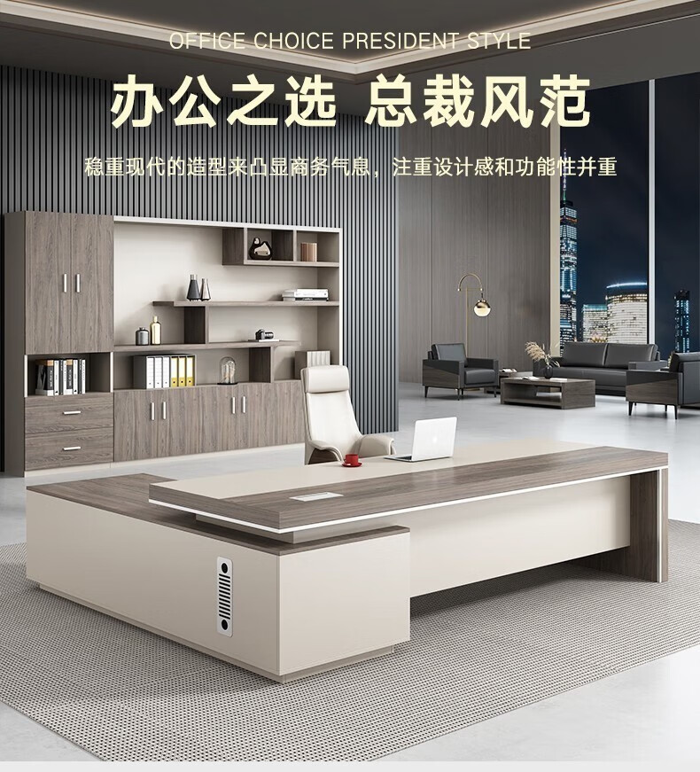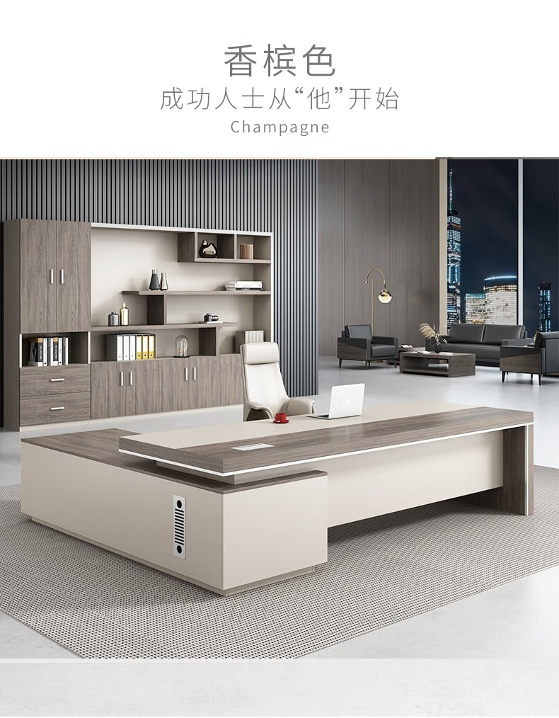 ShiRen boss desk desk executive desk president leader desk business simple modern office furniture table and chair combination champagne color (contact customer service for the sub-cabinet position) 2.8 meters desk + boss chair