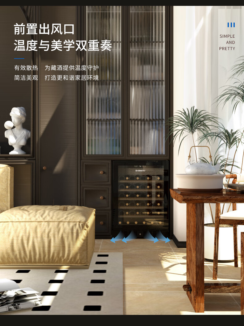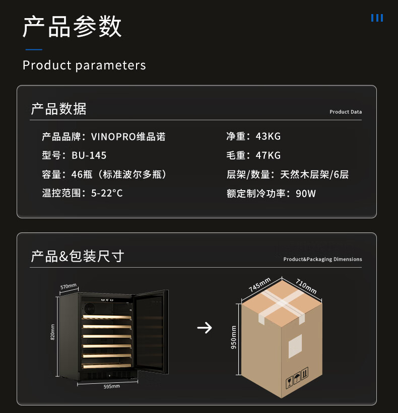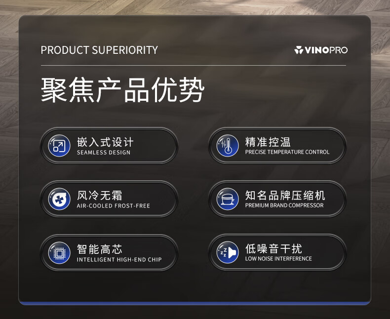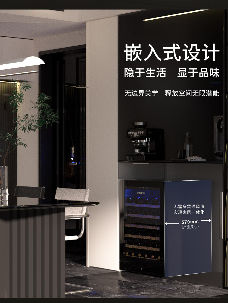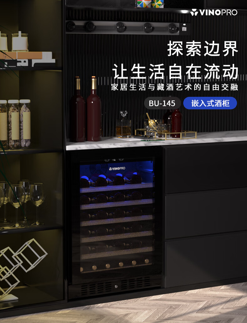 VINOPRO red wine cabinet, constant temperature wine cabinet, compressor air-cooled household embedded solid wood wine refrigerator BU-145 single temperature variable frequency model | first-class energy efficiency + air-cooled frost-free 46 bottles
