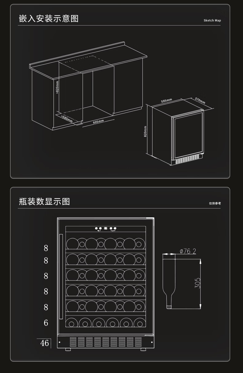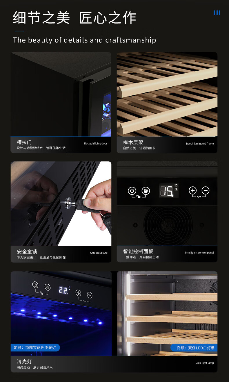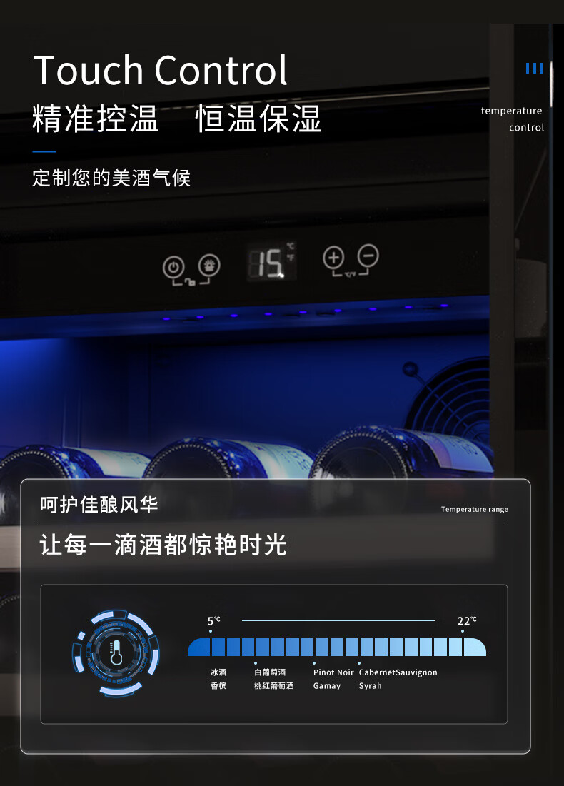 VINOPRO red wine cabinet, constant temperature wine cabinet, compressor air-cooled household embedded solid wood wine refrigerator BU-145 single temperature variable frequency model | first-class energy efficiency + air-cooled frost-free 46 bottles
