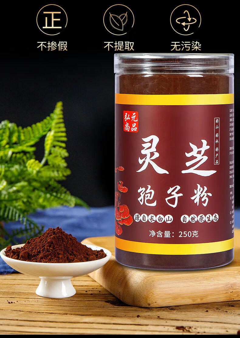 伊梵麦长白山野生灵芝孢子粉东北头道破壳特级椴木林芝孢子粉 破壳长白山灵芝孢子粉【250克】(代客磨粉)