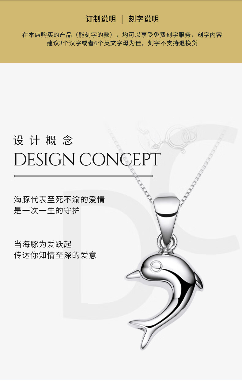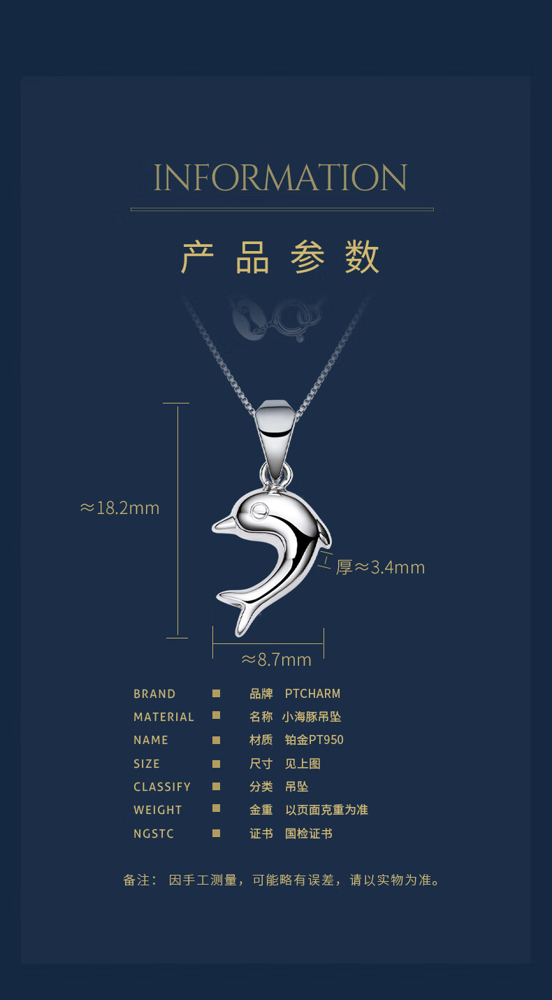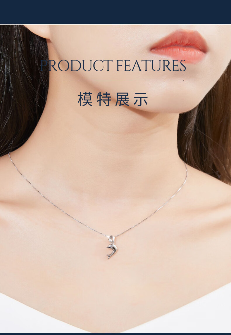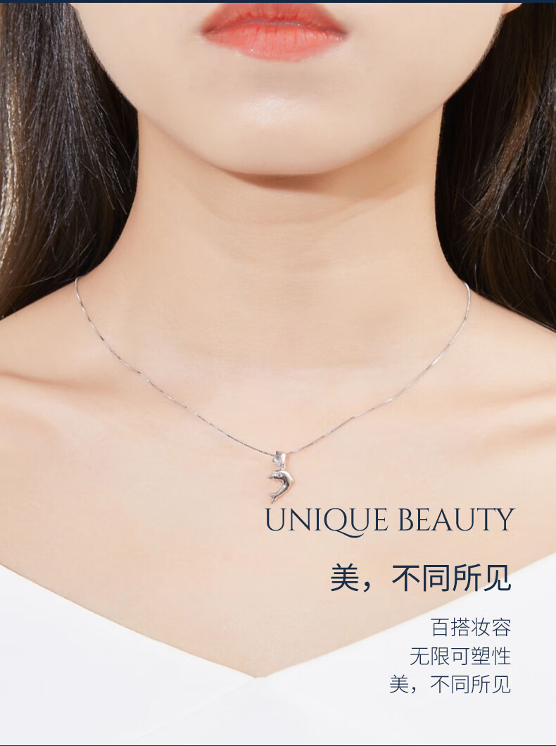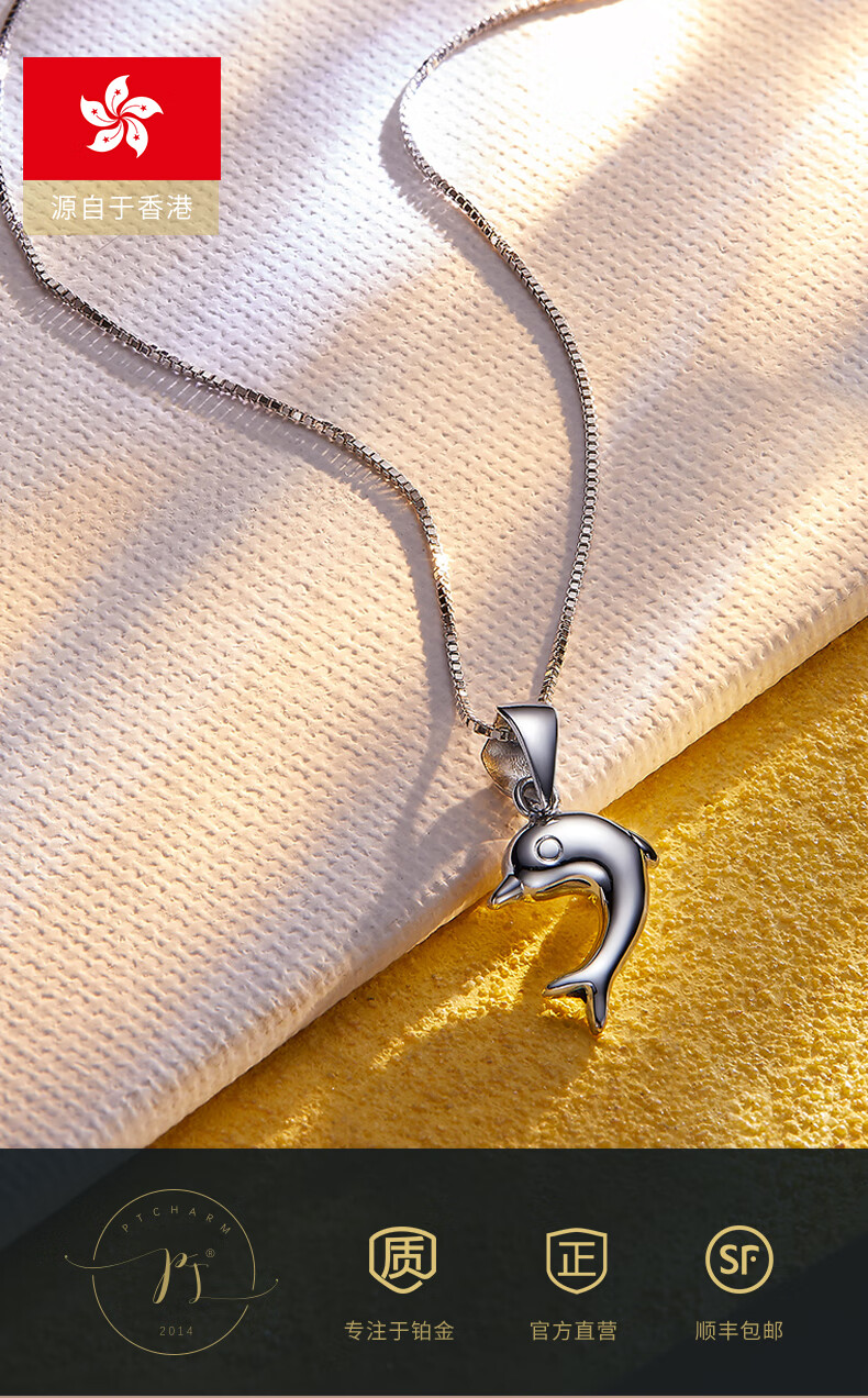 Pt.Charm Platinum Pt950 Little Dolphin Pendant Platinum Women's Clavicle Chain Pendant Chinese Valentine's Day Gift Platinum Pendant for Girlfriend Ready Stock National Inspection Certificate 1.0-1.1g