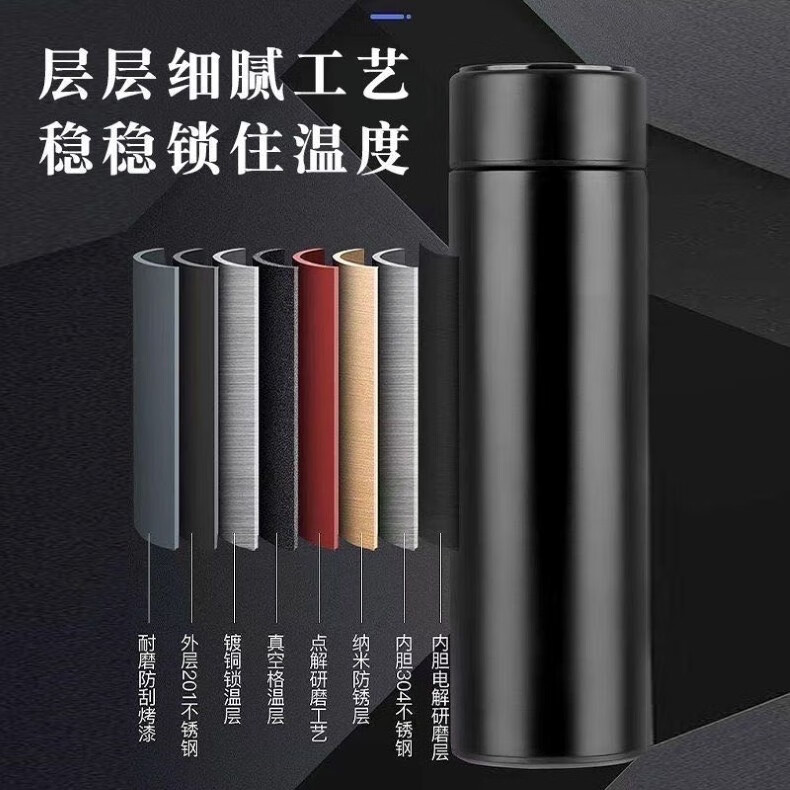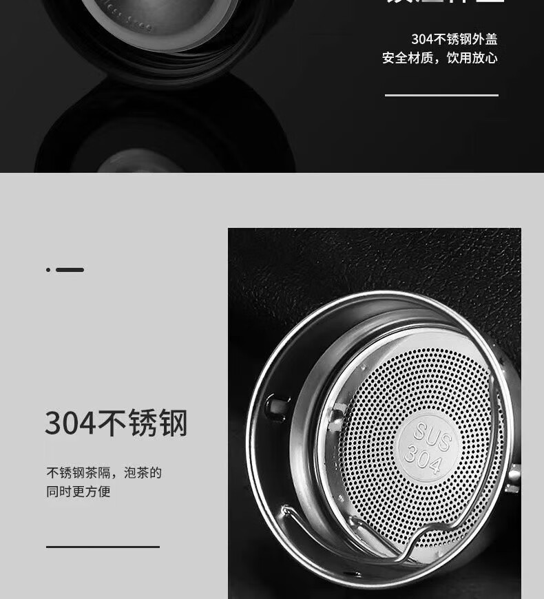 Chumi smart thermos cup for men and women large capacity 304 stainless steel tea cup portable car office cup 304 stainless steel + tea drain business black 500ml