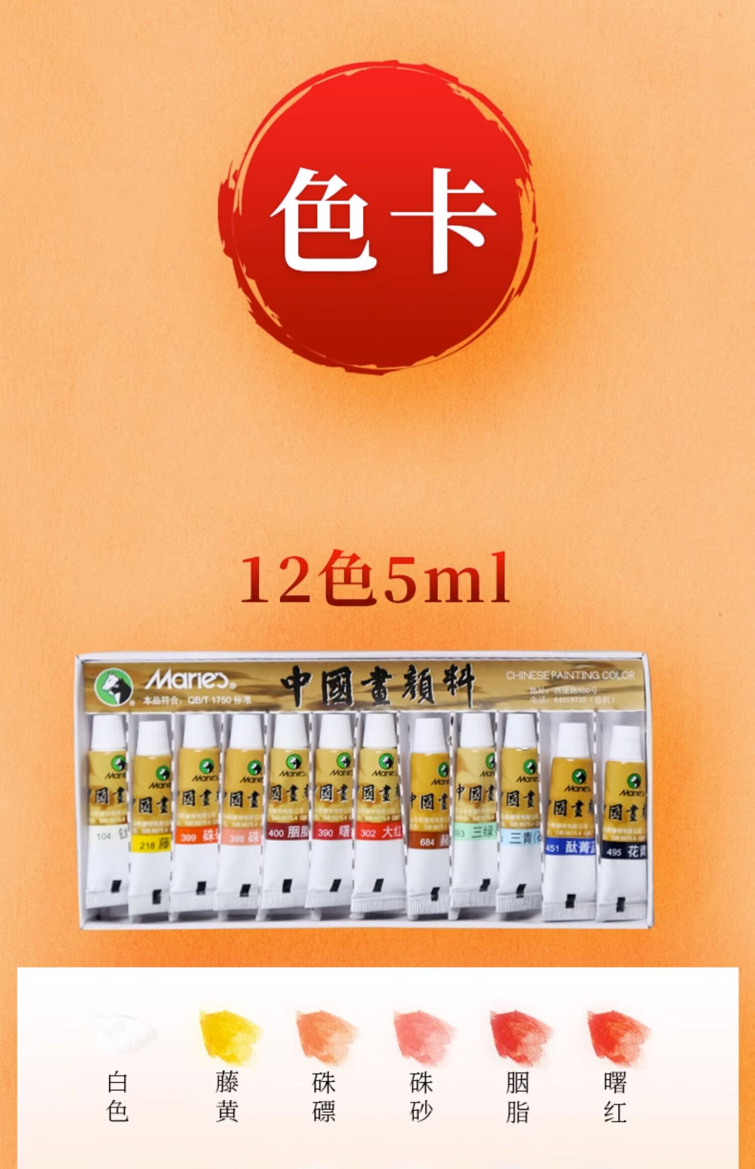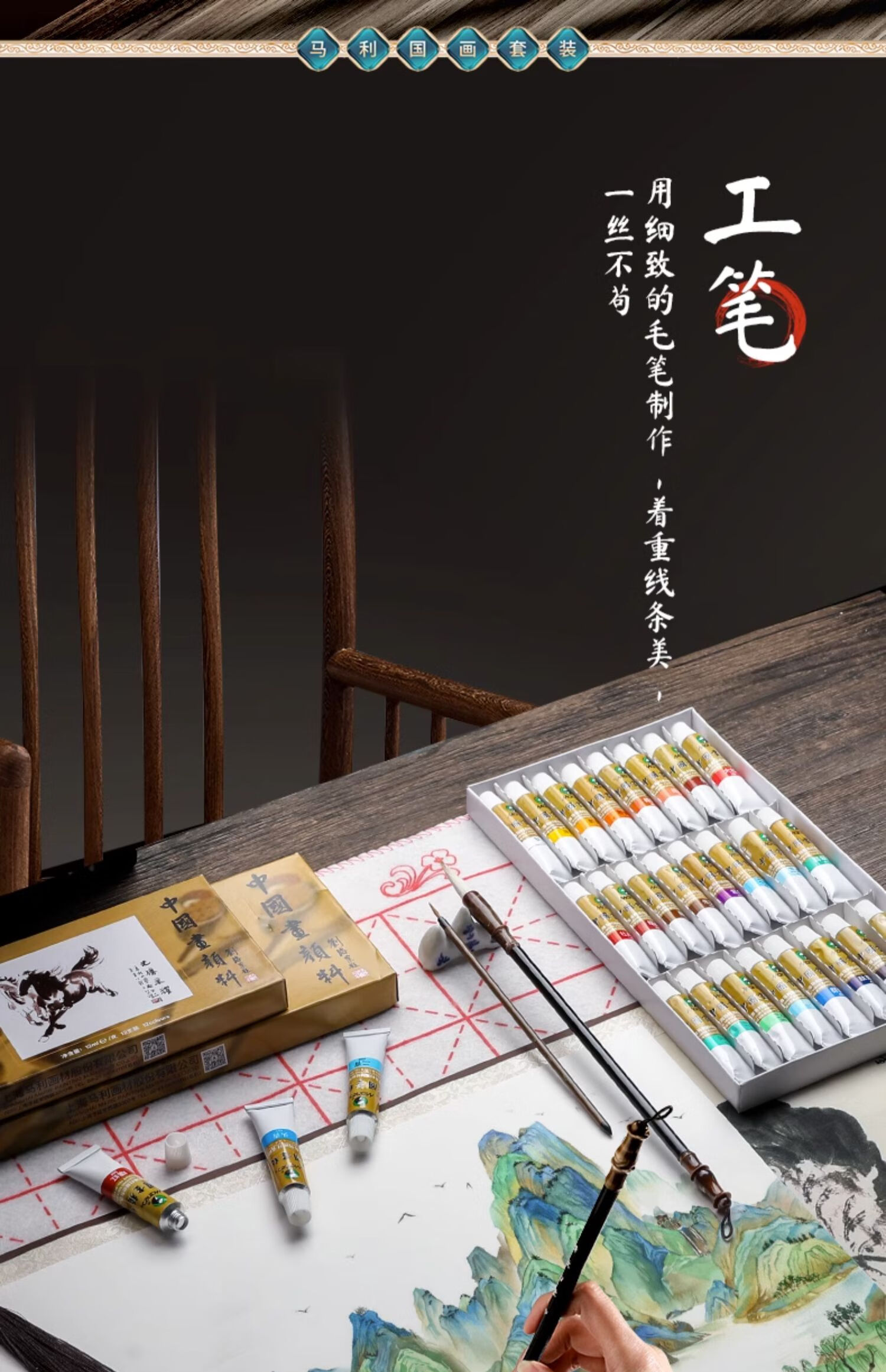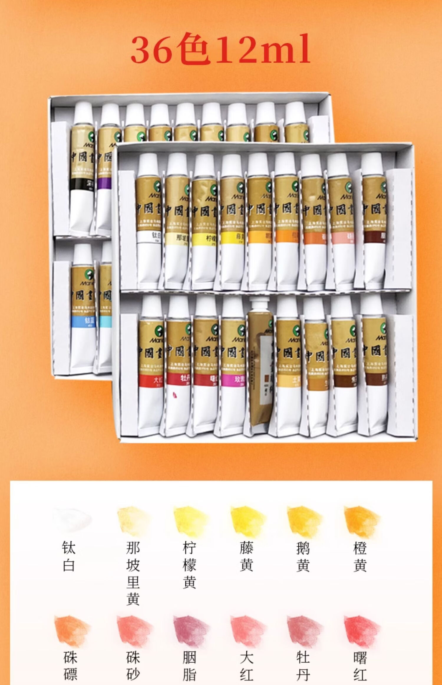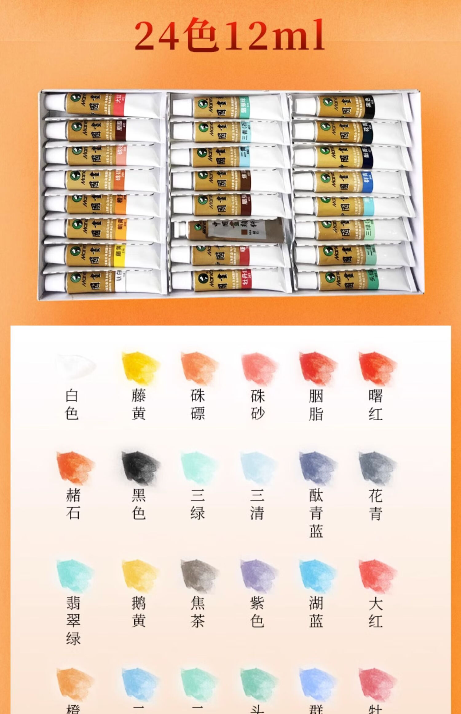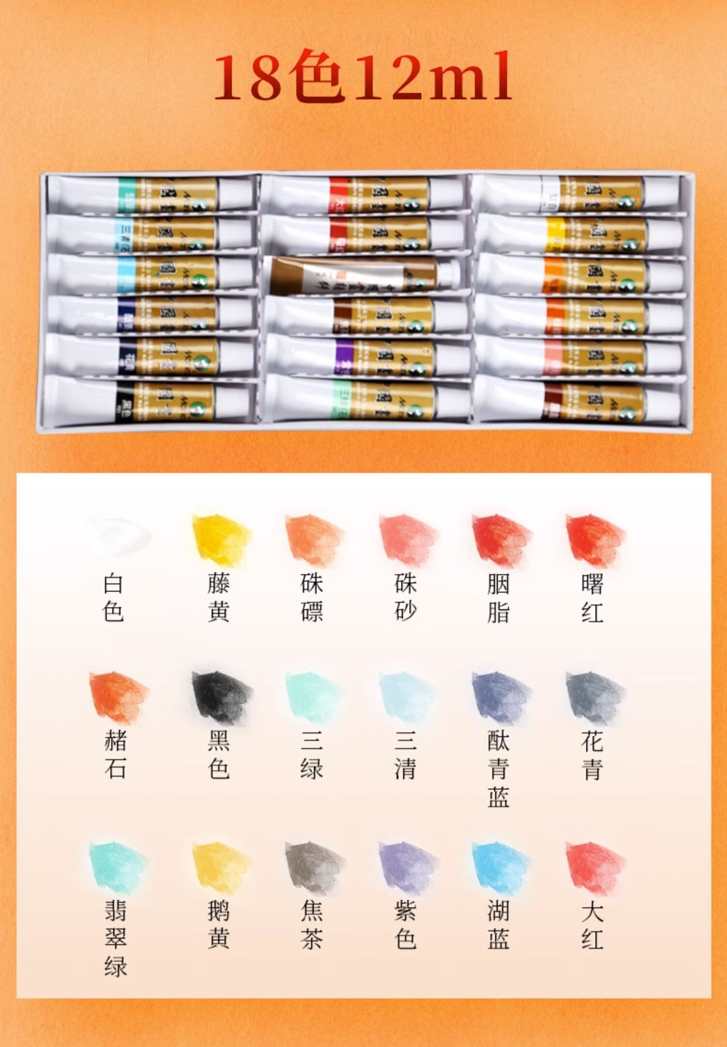 Marley Chinese painting pigments Chinese painting entry-level tool set for primary school students Chinese painting set ink painting complete set for beginners complete set of Chinese painting pigments Recommended for beginners - freehand entry version 12-piece set 18 colors 12ml