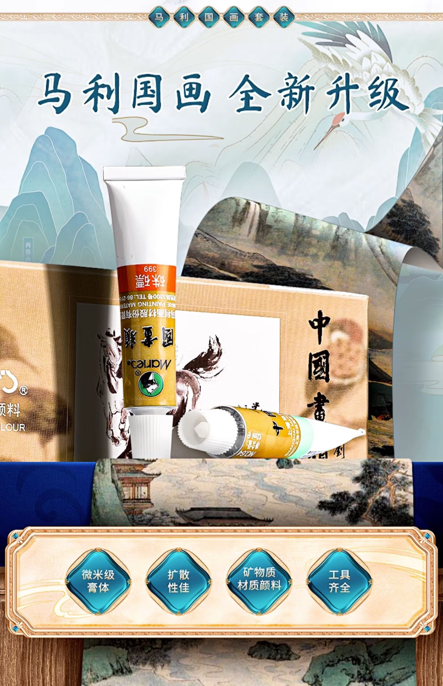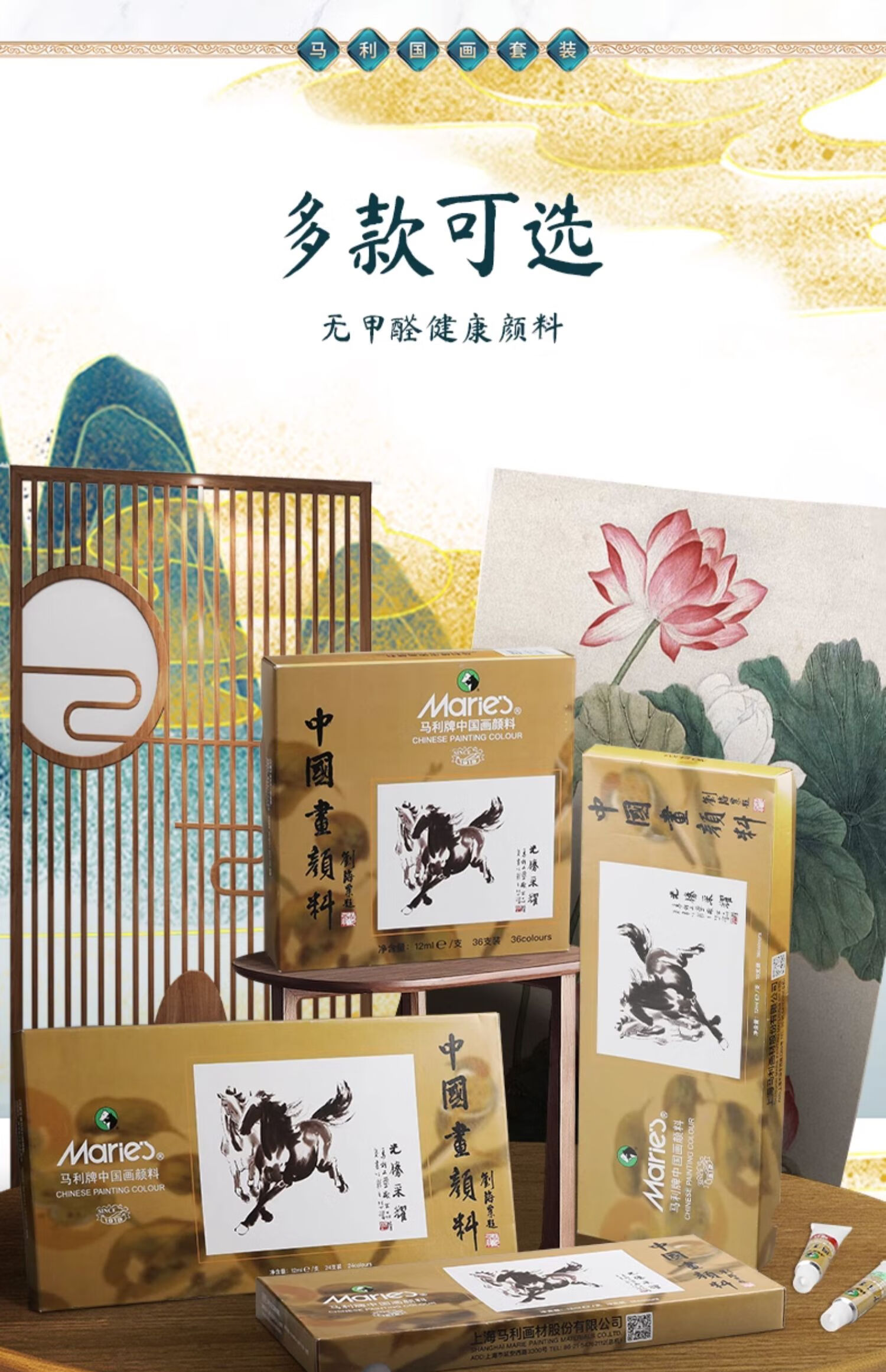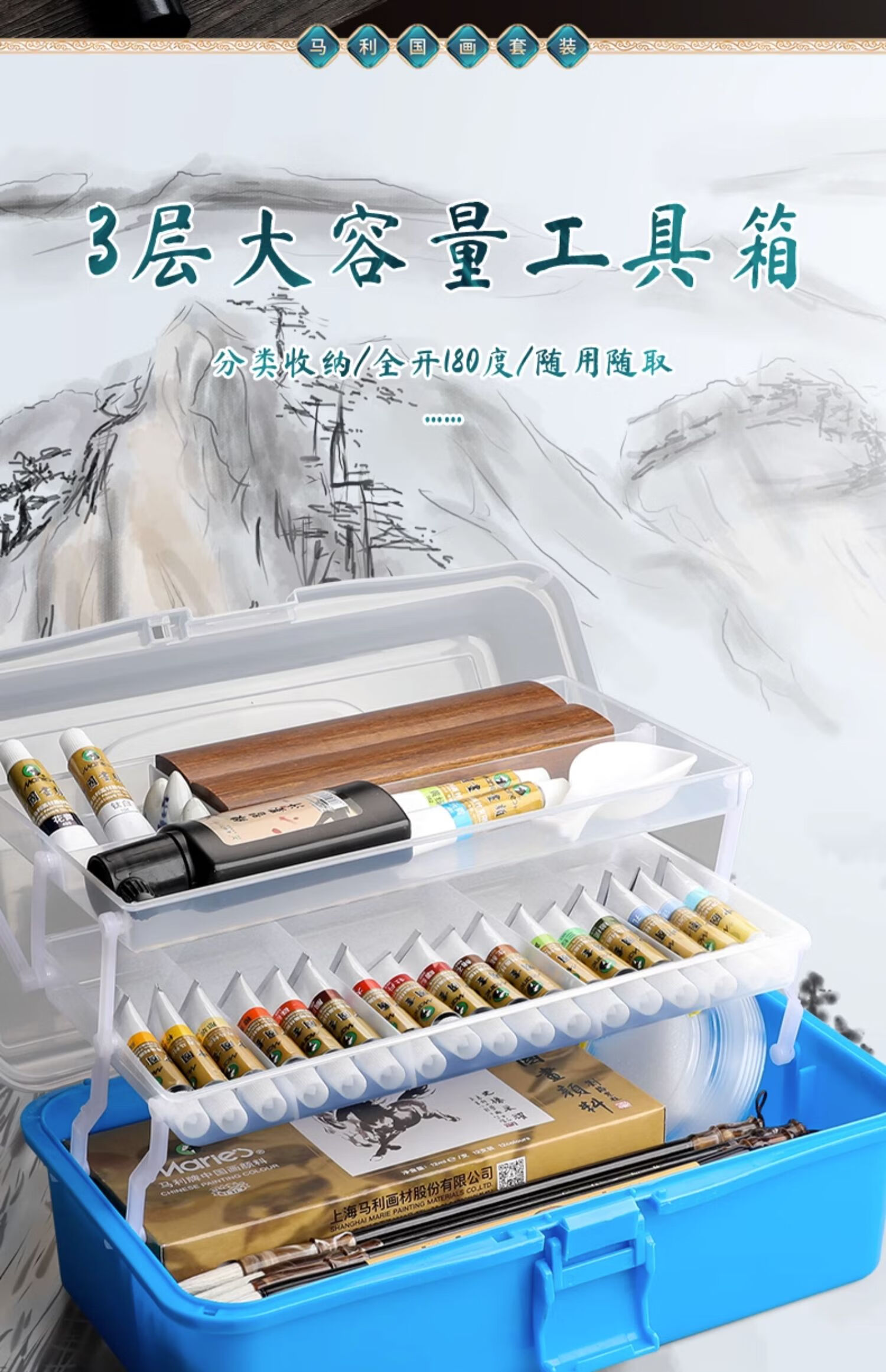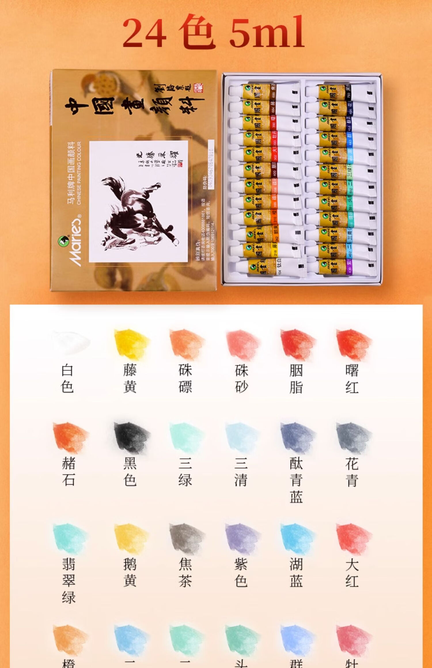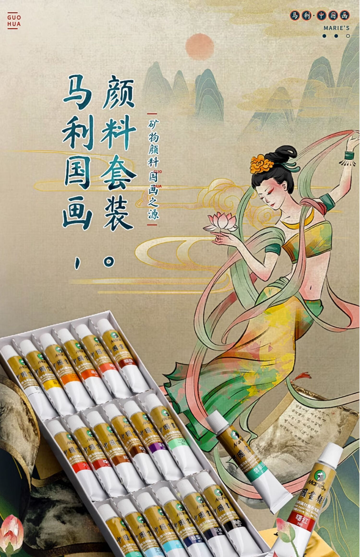 Marley Chinese painting pigments Chinese painting entry-level tool set for primary school students Chinese painting set ink painting complete set for beginners complete set of Chinese painting pigments Recommended for beginners - freehand entry version 12-piece set 18 colors 12ml