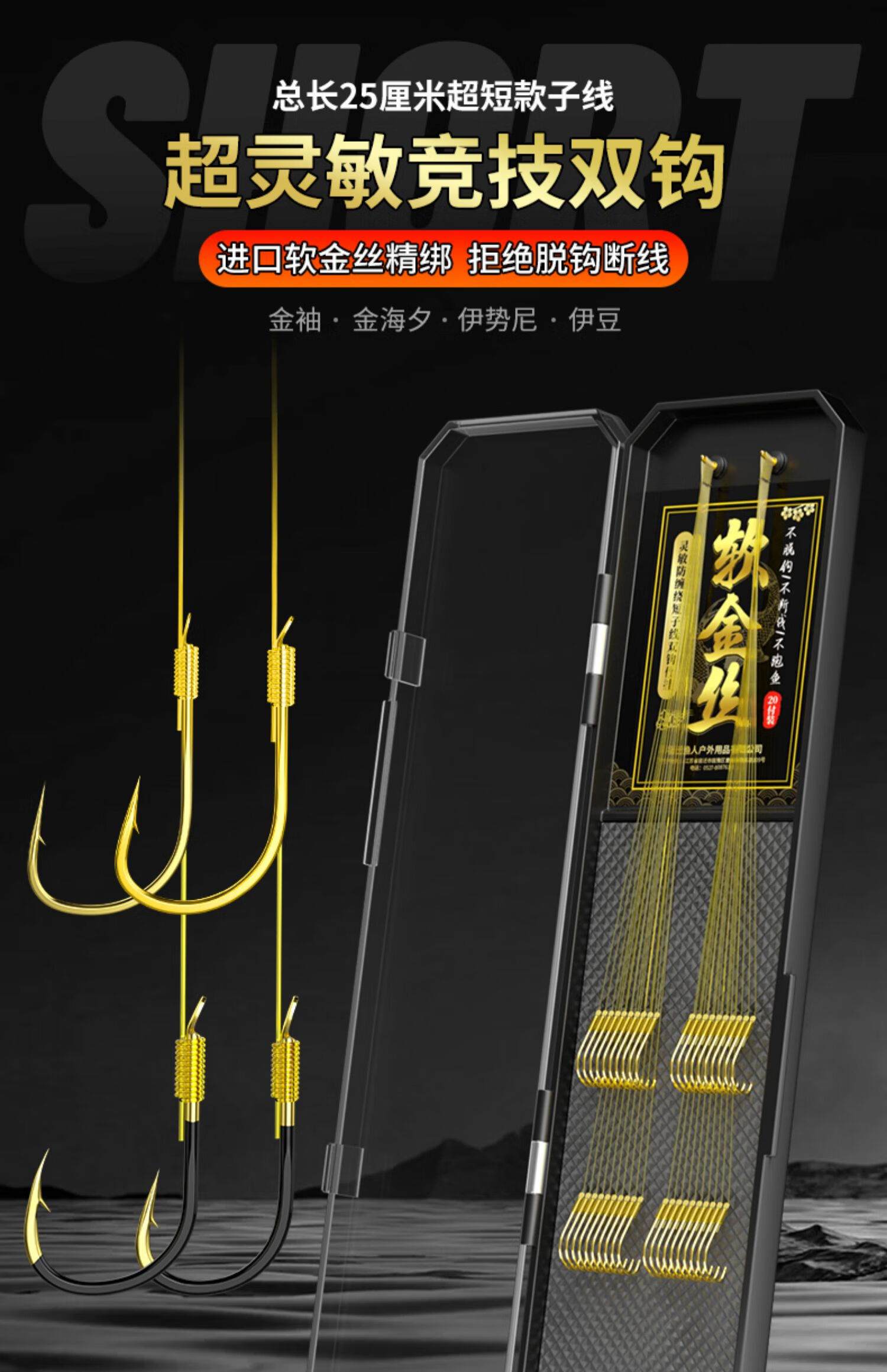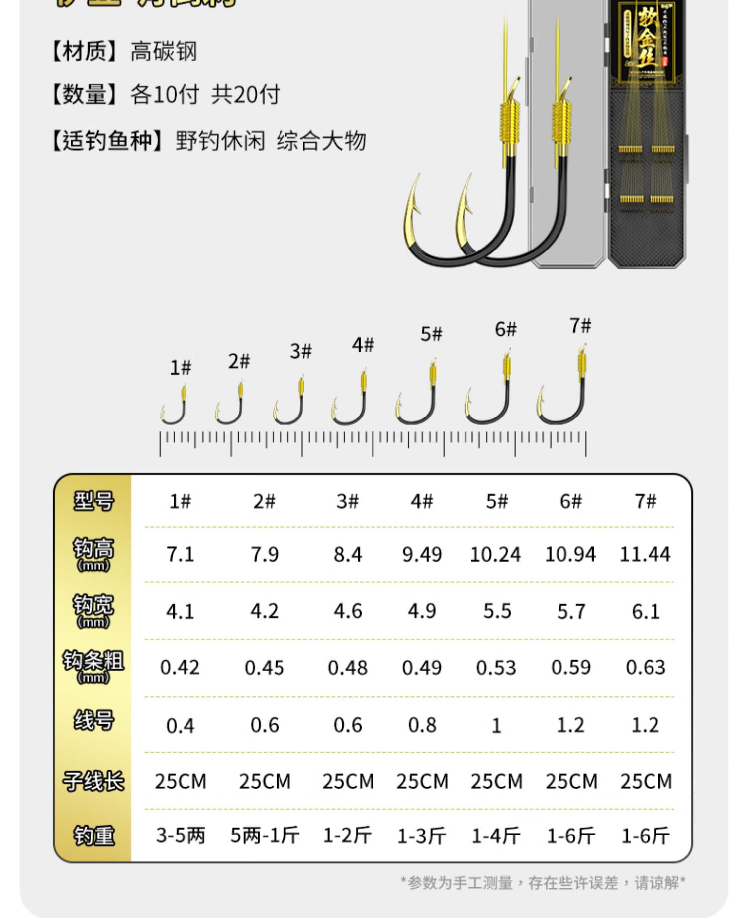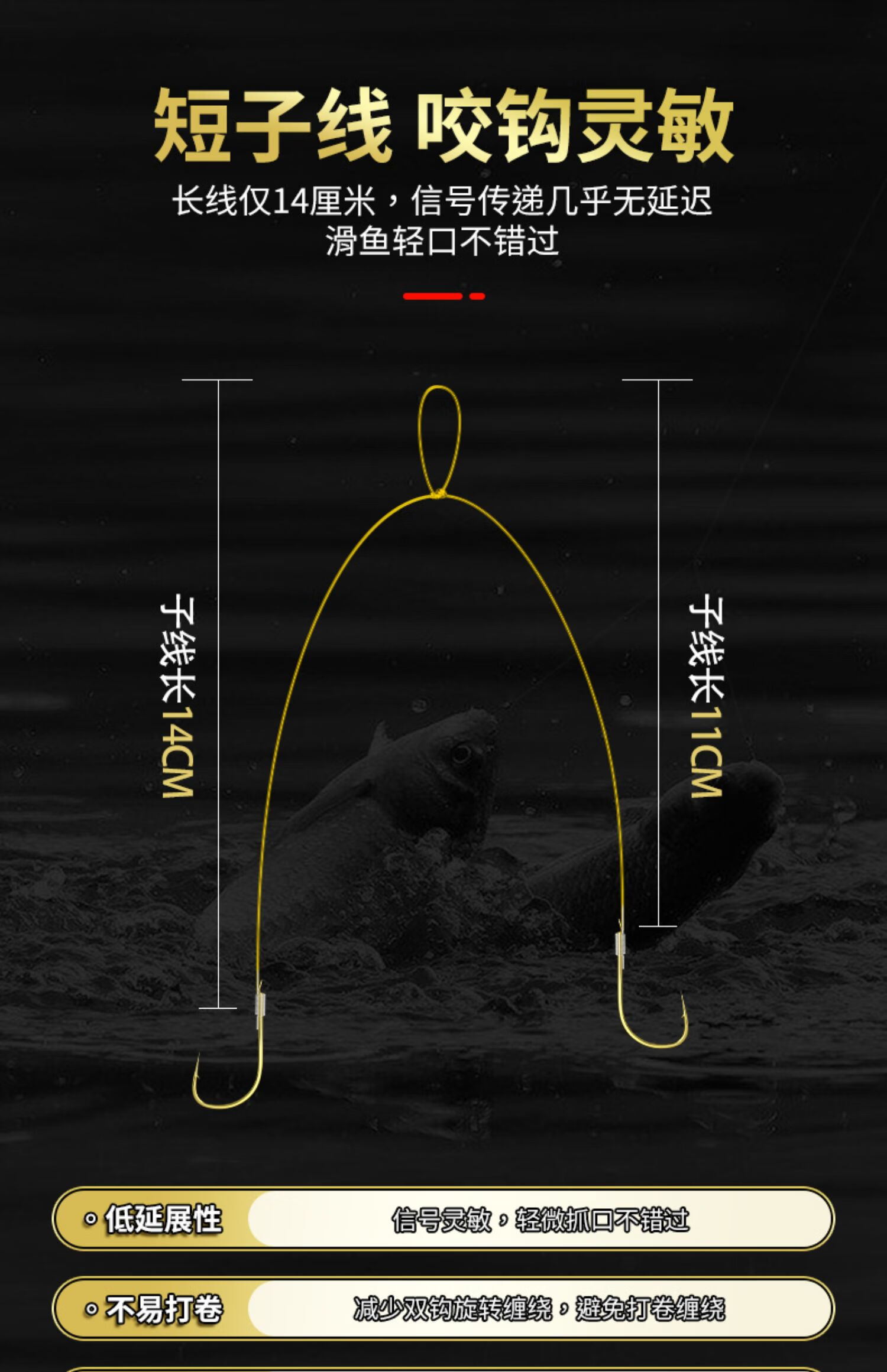 YNKOO imported short sub-thread fishhook tied sub-thread double hook finished product set complete set Iseni Jinhaixi Golden Sleeve Crucian Carp Jinhaixi Thorny No. 4 1.0 + No. 5 1.2 Others