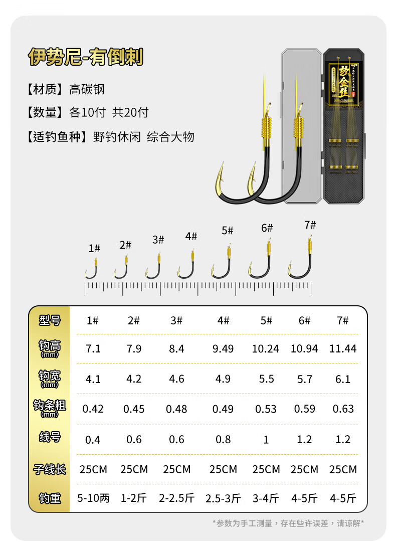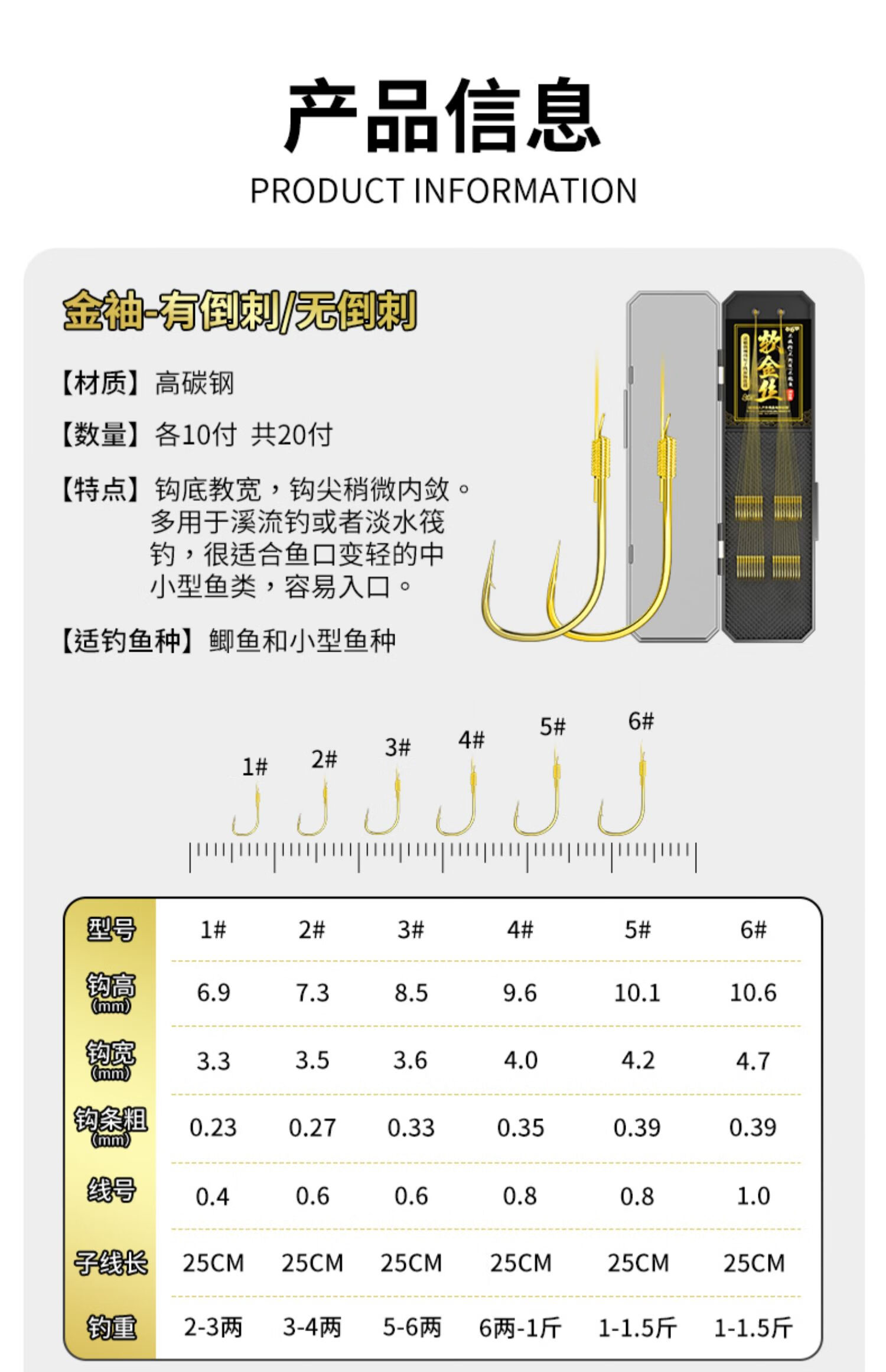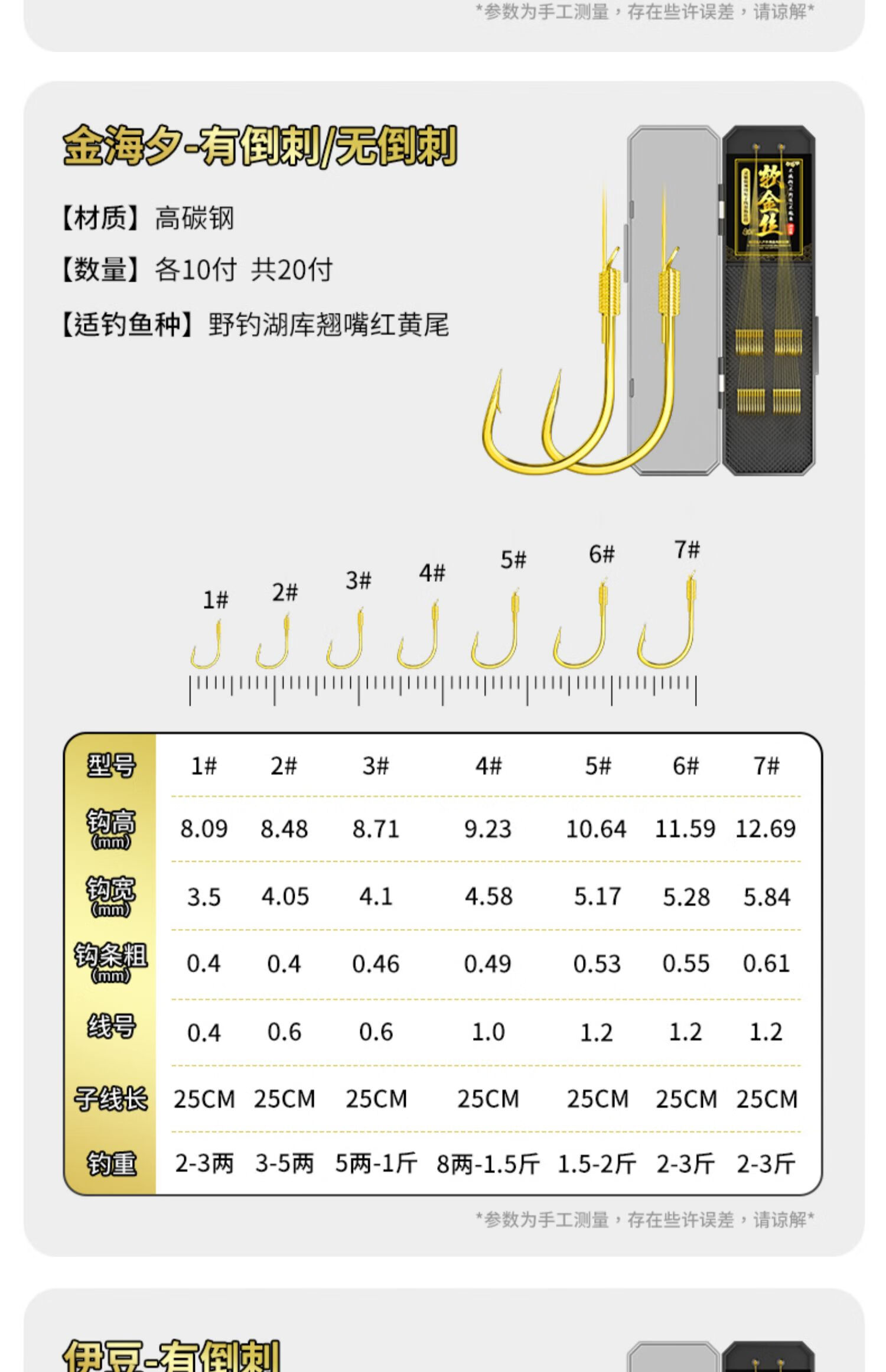 YNKOO imported short sub-thread fishhook tied sub-thread double hook finished product set complete set Iseni Jinhaixi Golden Sleeve Crucian Carp Jinhaixi Thorny No. 4 1.0 + No. 5 1.2 Others