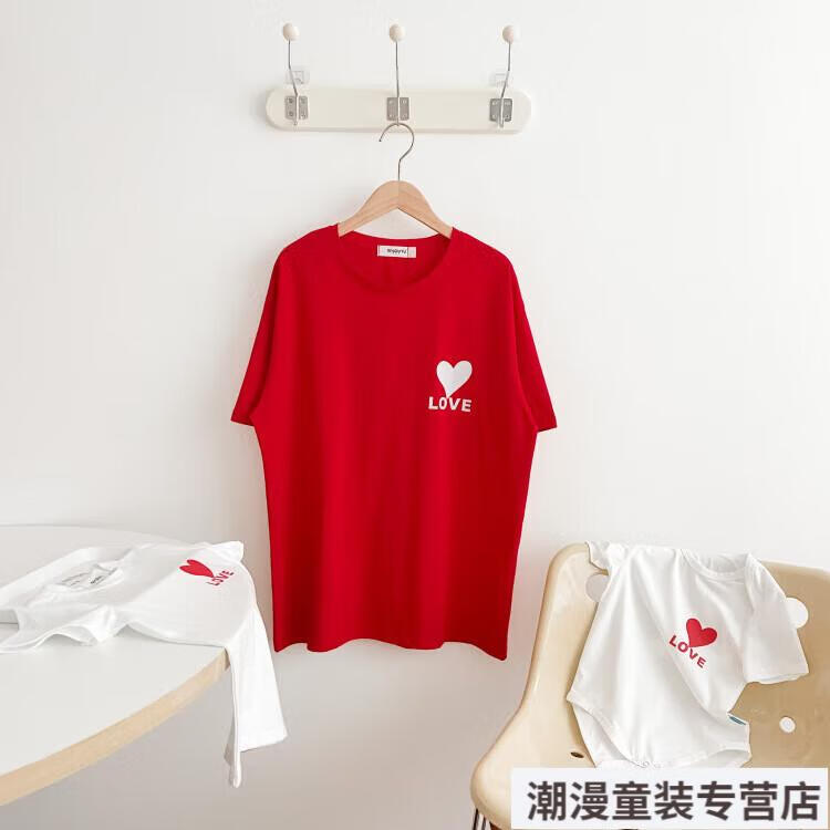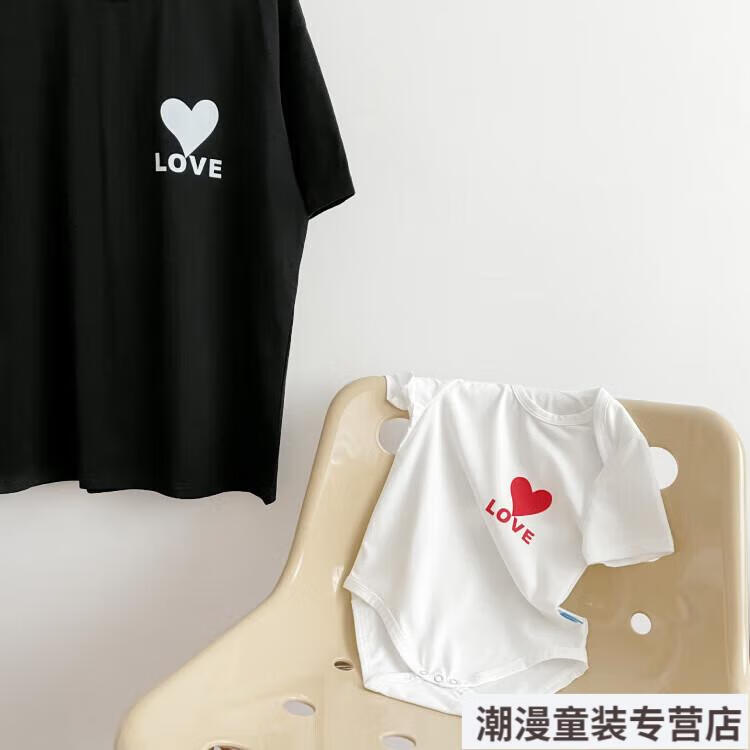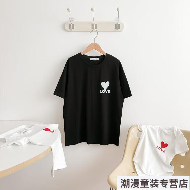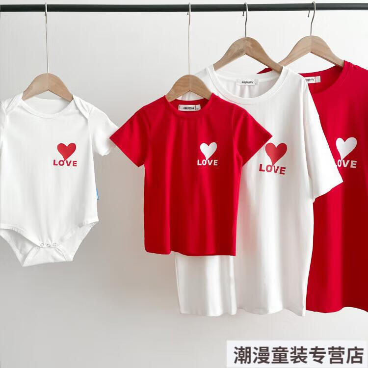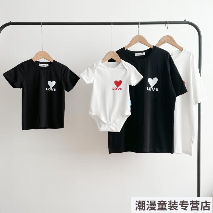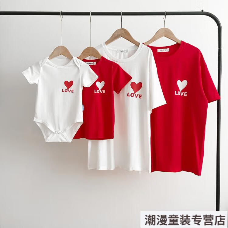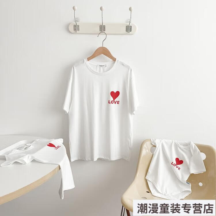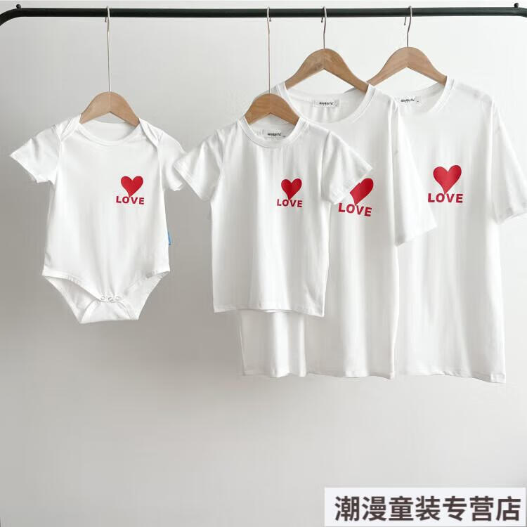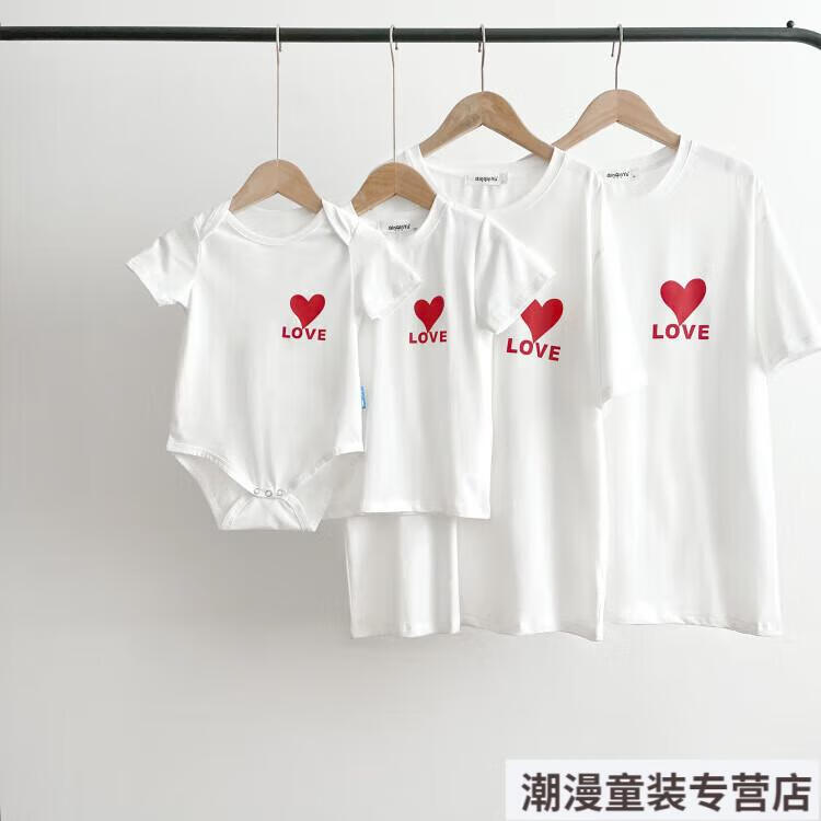 G.duck2026 Korean style loving parent-child outfit for a family of three or four baby cotton short-sleeved T-shirt family outfit photo shoot white 66 rompers 10-14Jin Jin is equal to 0.5kg