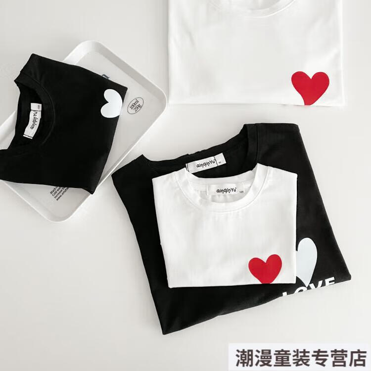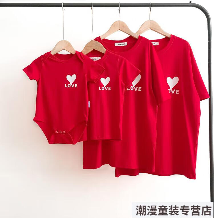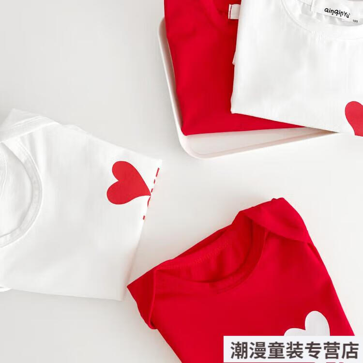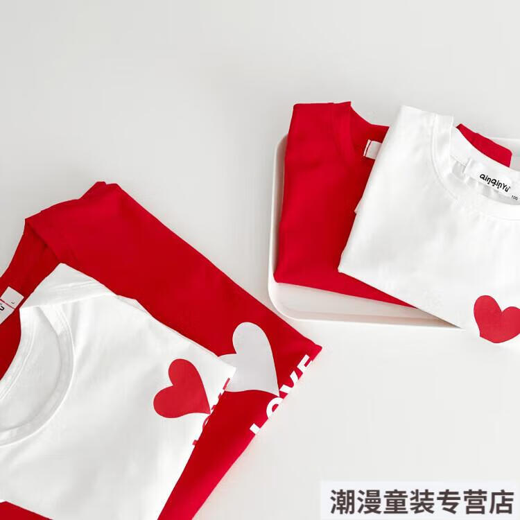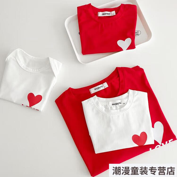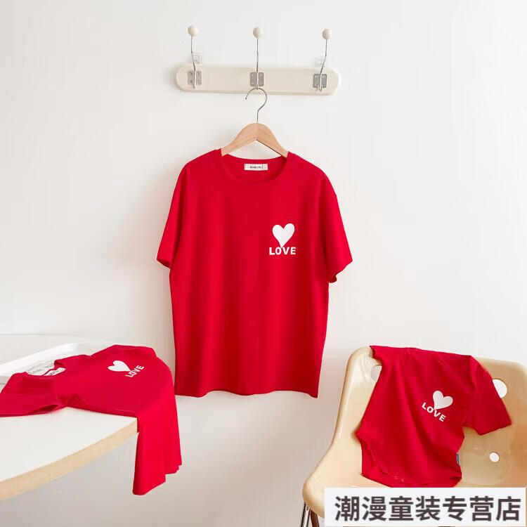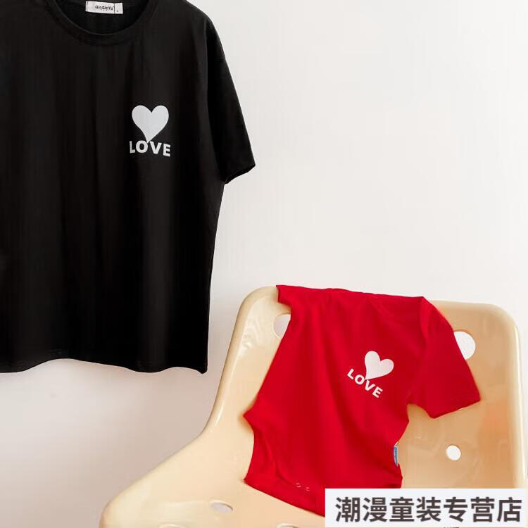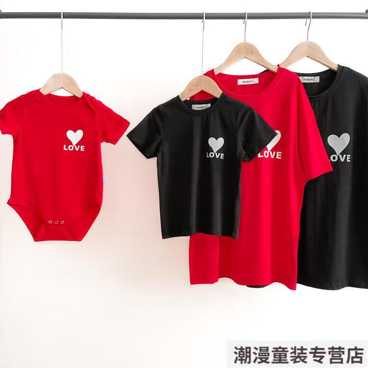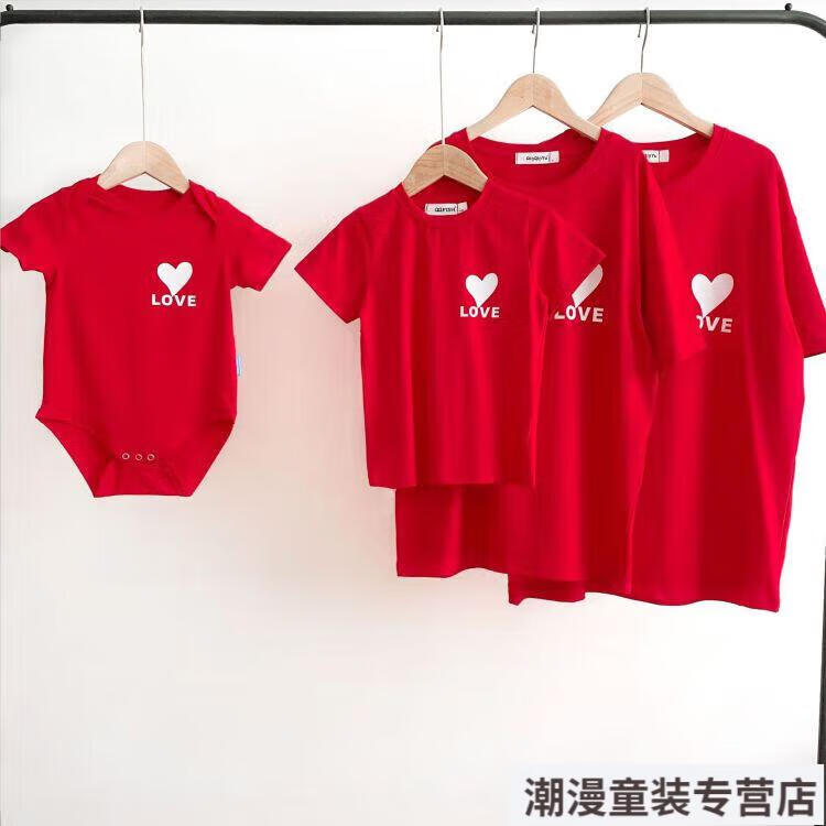G.duck2026 Korean style loving parent-child outfit for a family of three or four baby cotton short-sleeved T-shirt family outfit photo shoot white 66 rompers 10-14Jin Jin is equal to 0.5kg