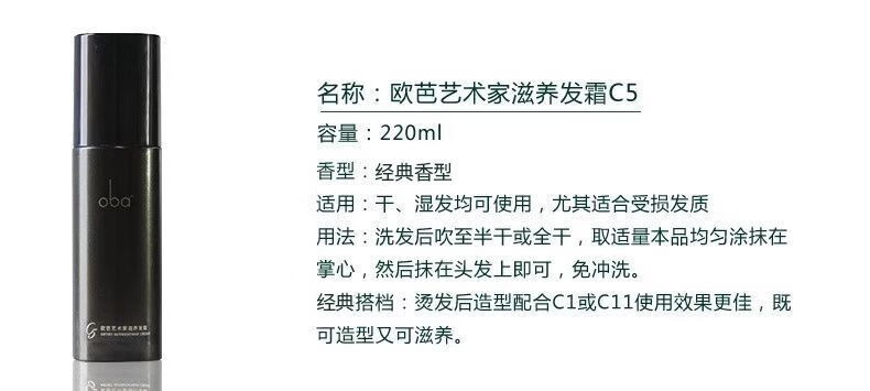 Opa elastin oba artist nourishing hair cream C5 opa moisturizing and styling curly hair styling paste 220ml bottle