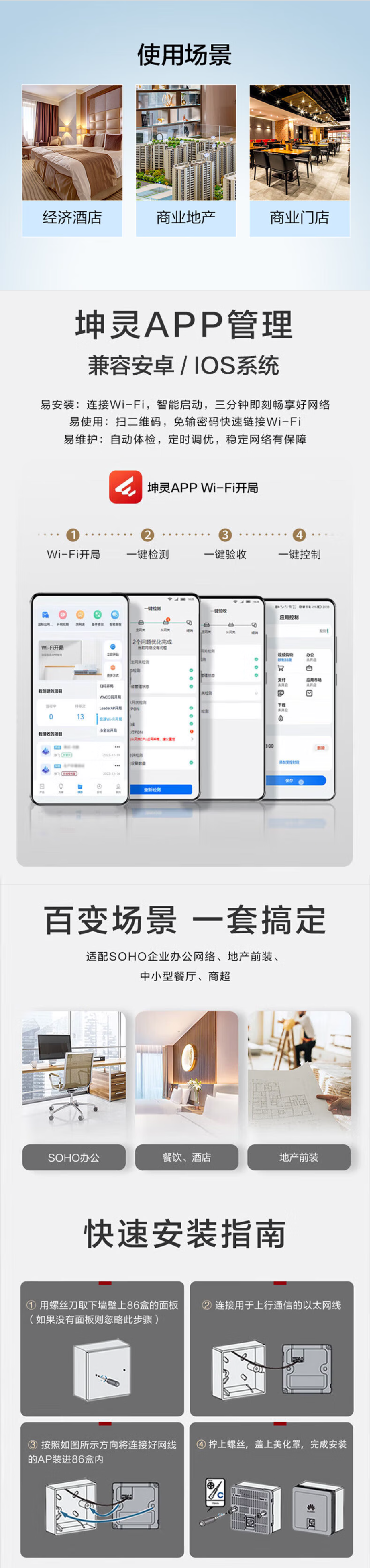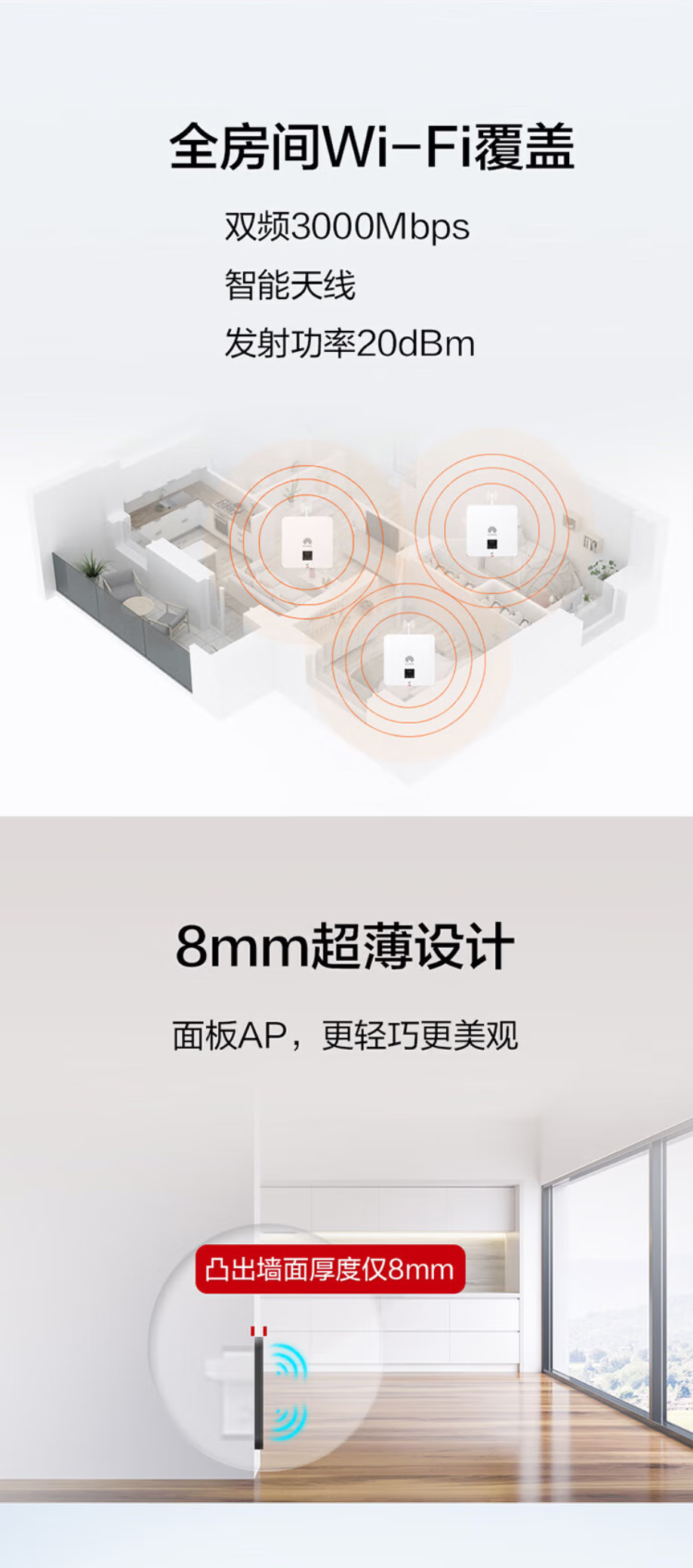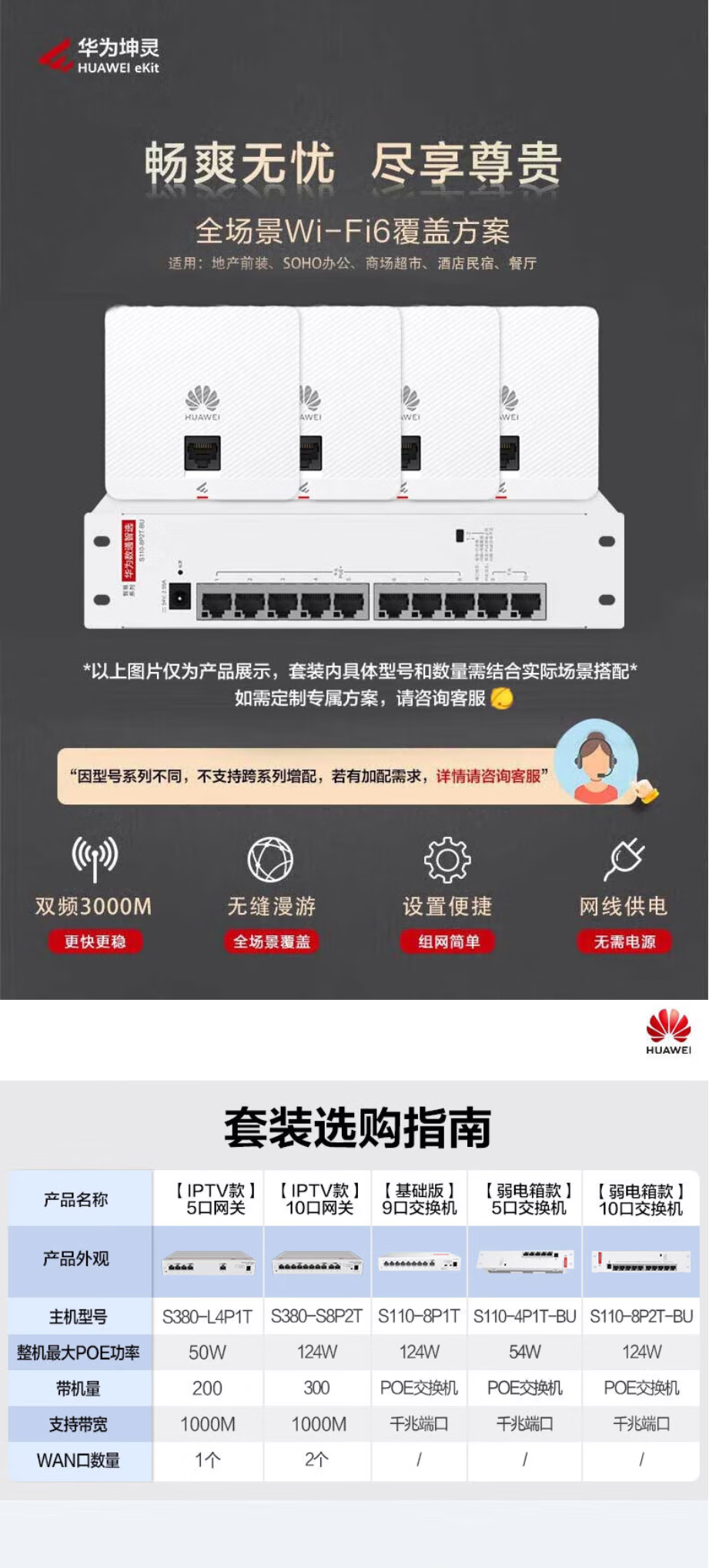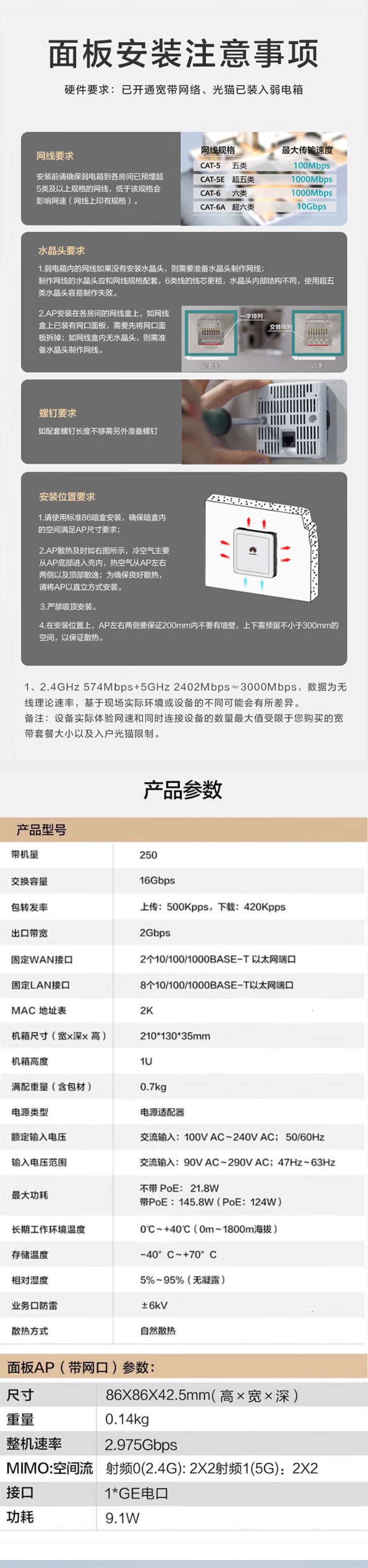 Huawei (HUAWEI) Kunling thin enterprise-grade whole-house WiFi6 set wireless AP panel 5G dual-band AX3000M Gigabit ac+ap smart home in-wall distributed Mesh networking 8 dual network port AP panels + 10-port POE switch duplex villa commercial home large-scale seamless roaming POE router