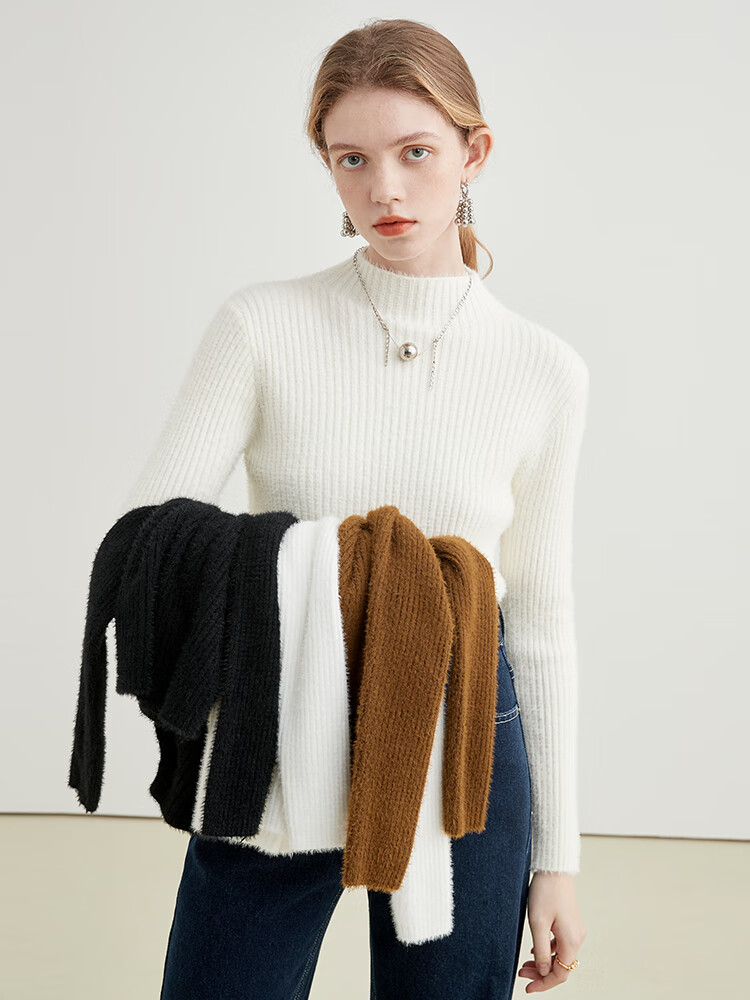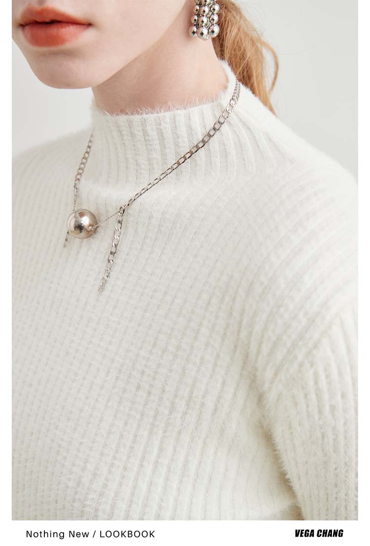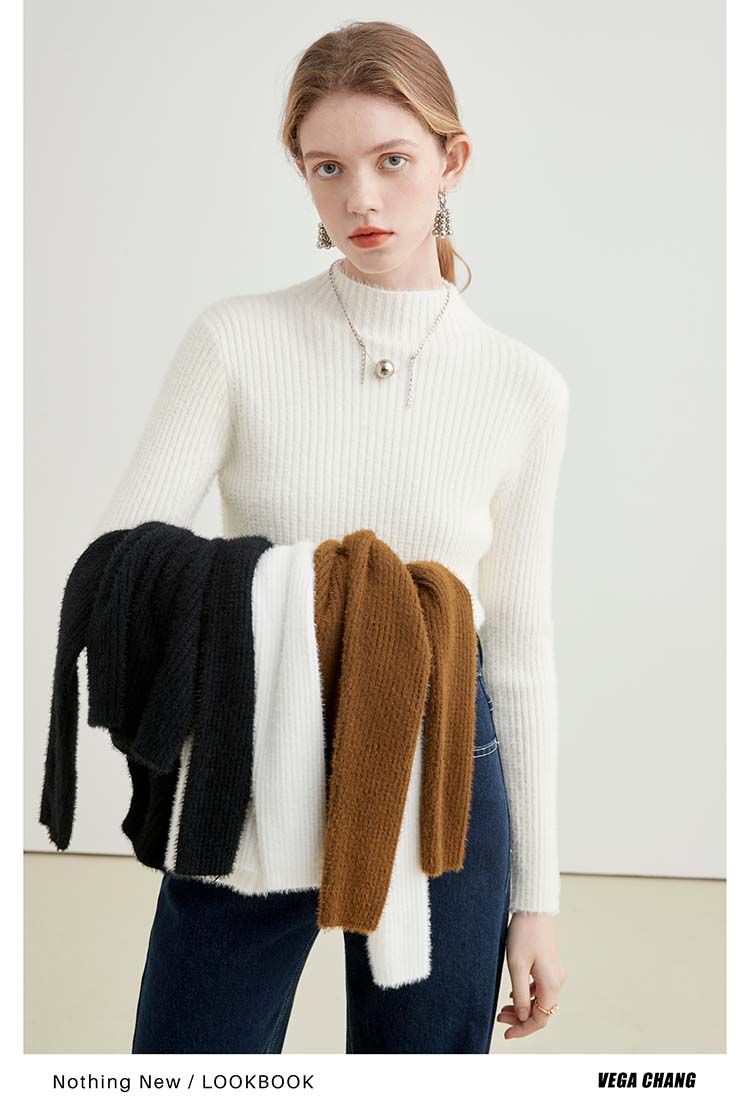 VEGA CHANG imitation mink knitted sweater for women 2025 autumn and winter new style petite slimming temperament bottoming top, versatile black, one size fits all