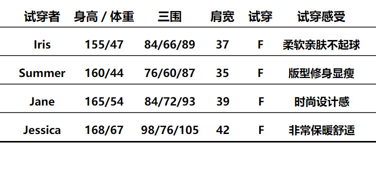 China (cm) 160-165/84-86 165-170 / 88-90 167-172 / 92-96 168-173 / 98-102 170-176 / 106-110
