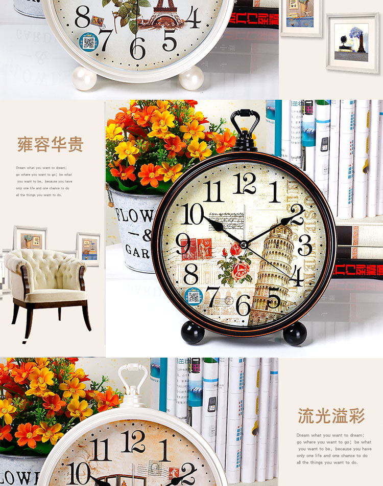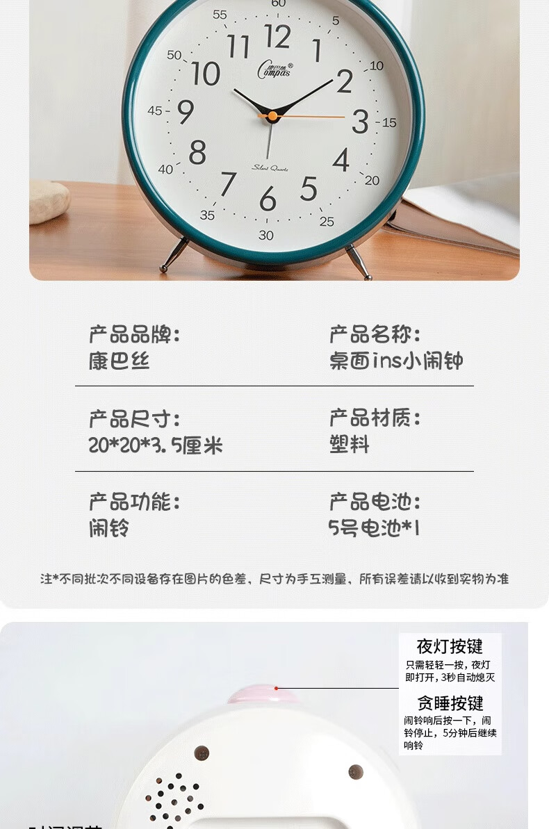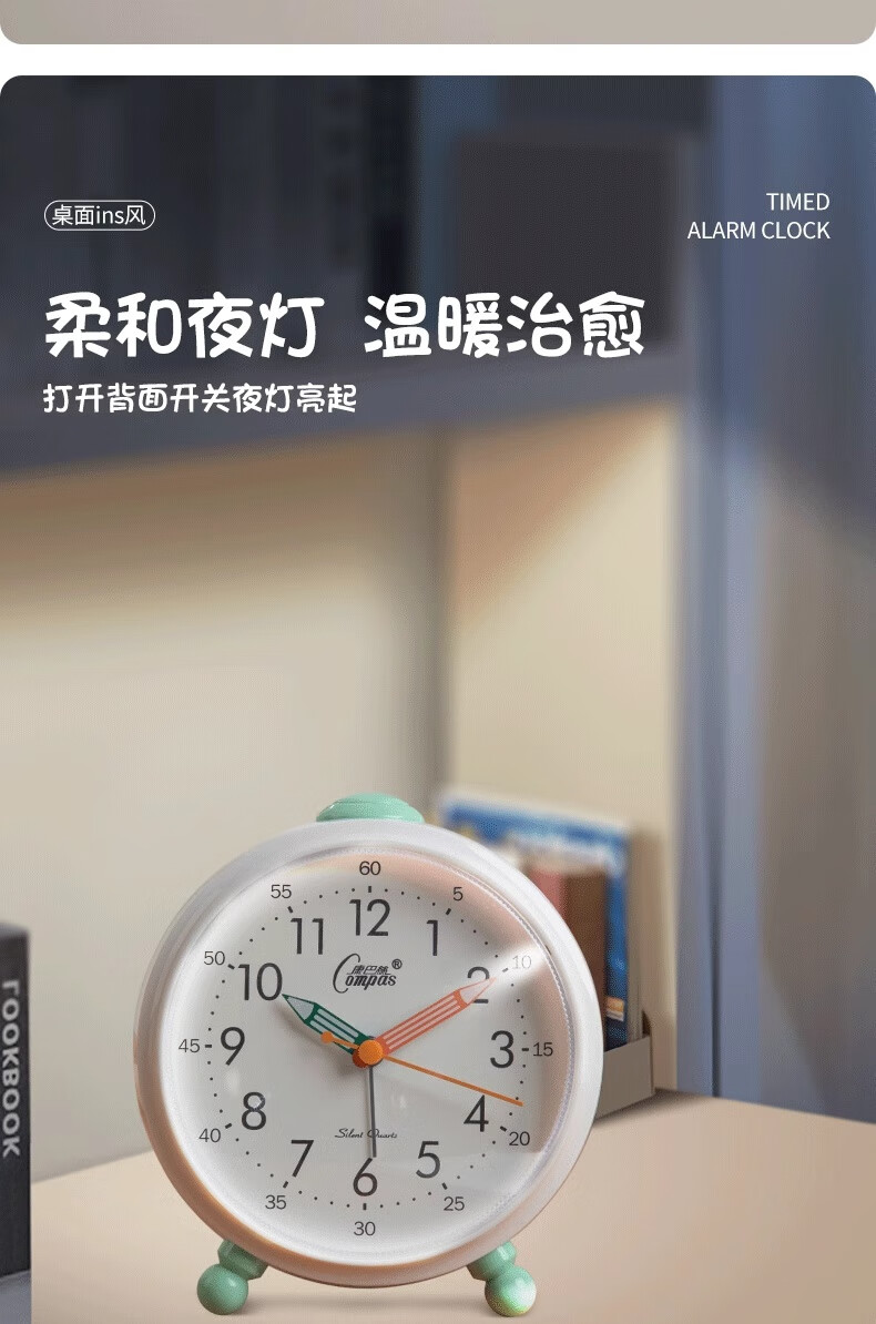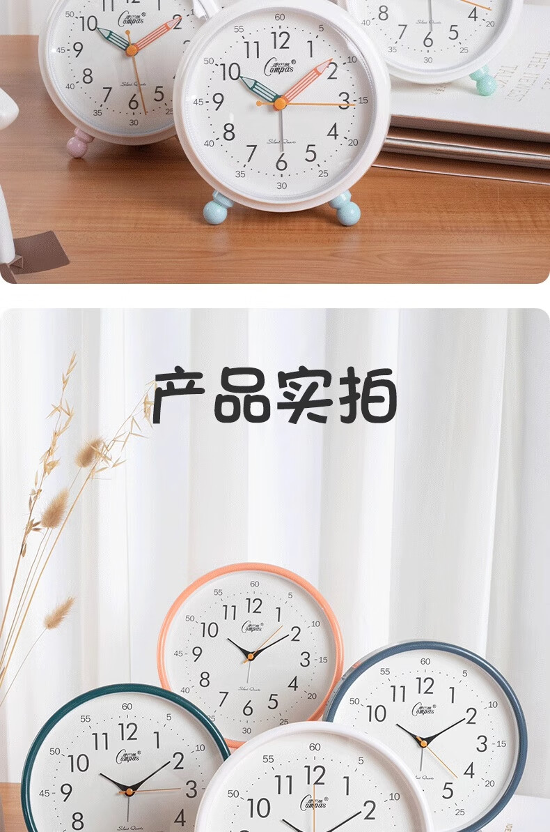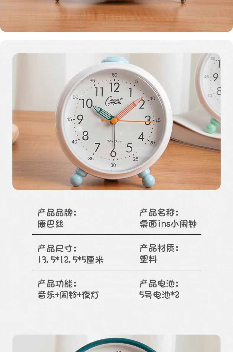 Compas desk clock for living room and bedroom, home desk clock with alarm clock, creative Nordic fashion style large characters 2346 mahogany grain others