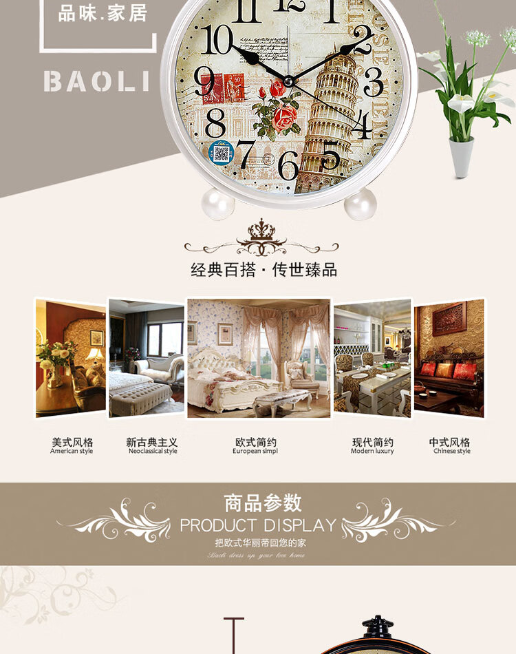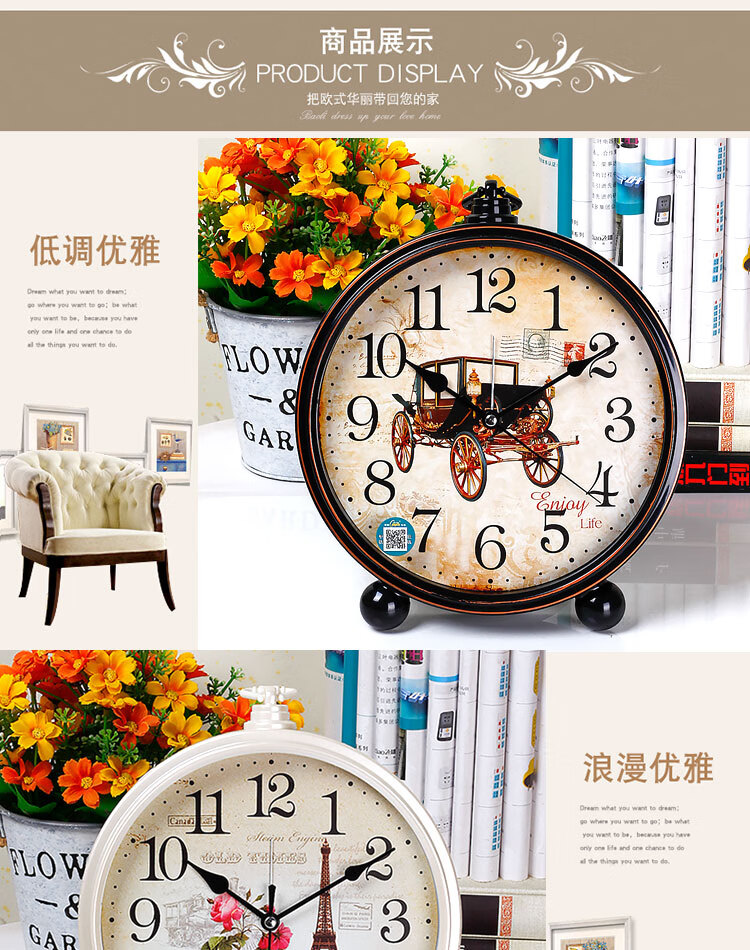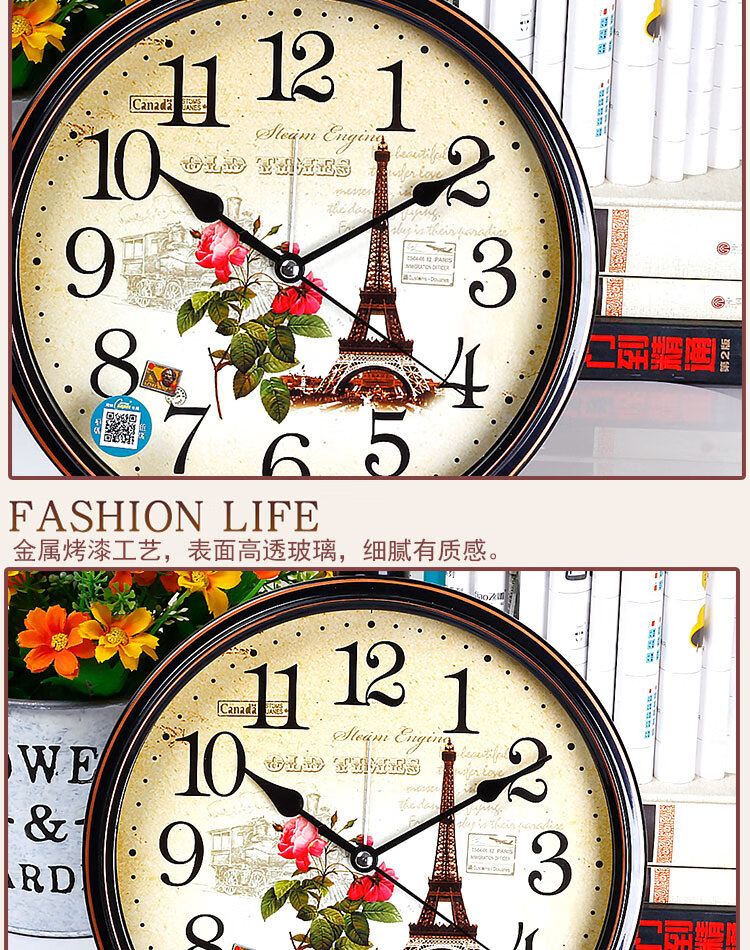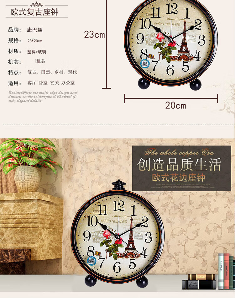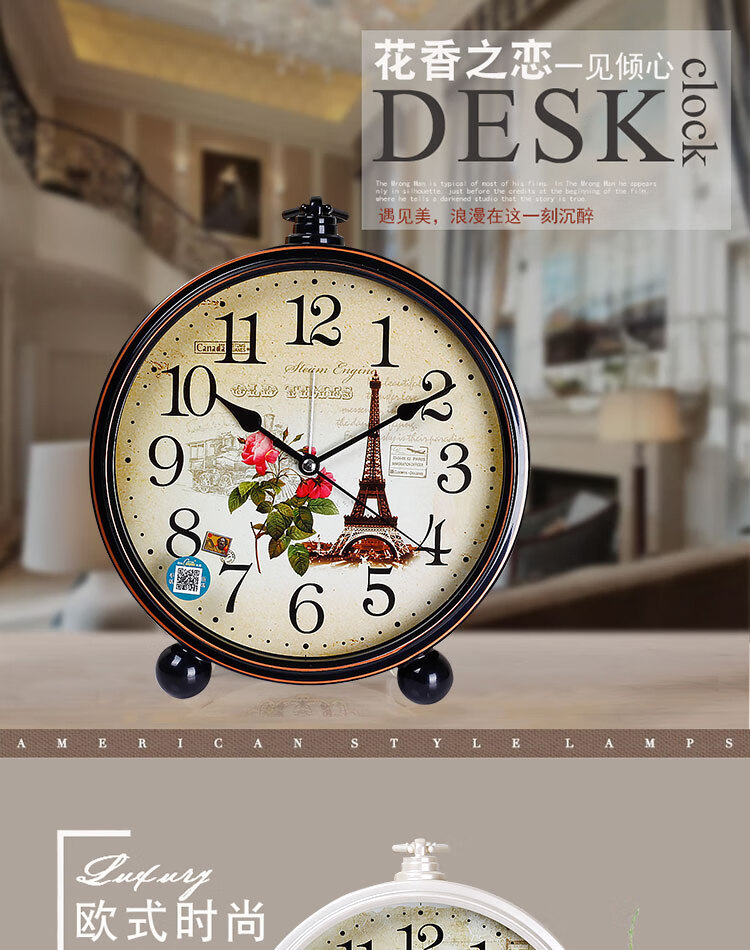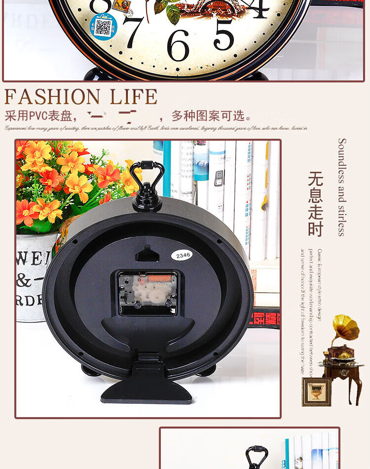 Compas desk clock for living room and bedroom, home desk clock with alarm clock, creative Nordic fashion style large characters 2346 mahogany grain others