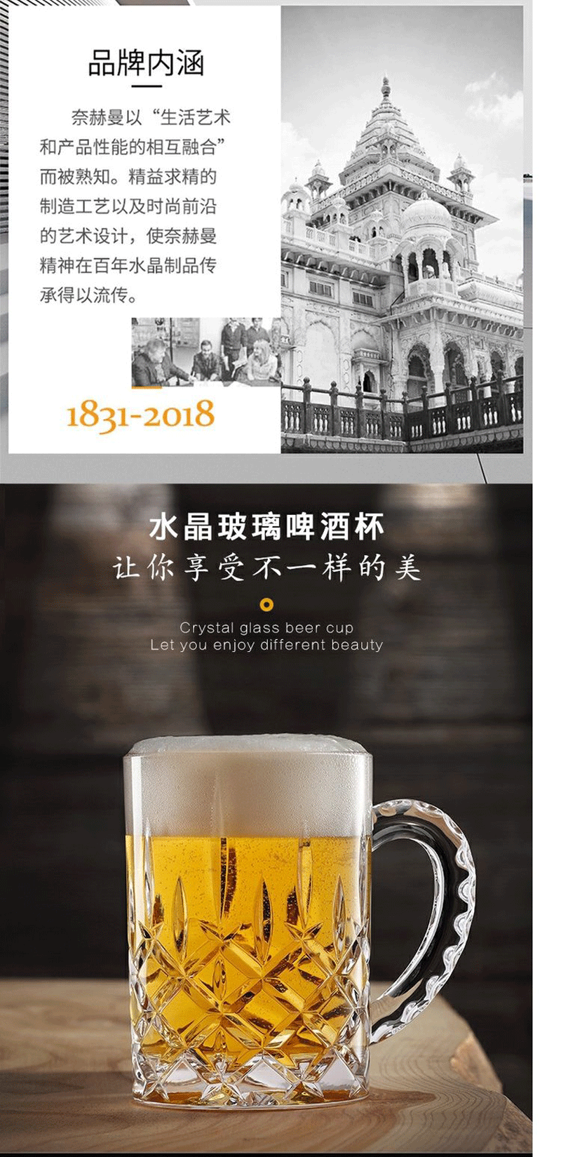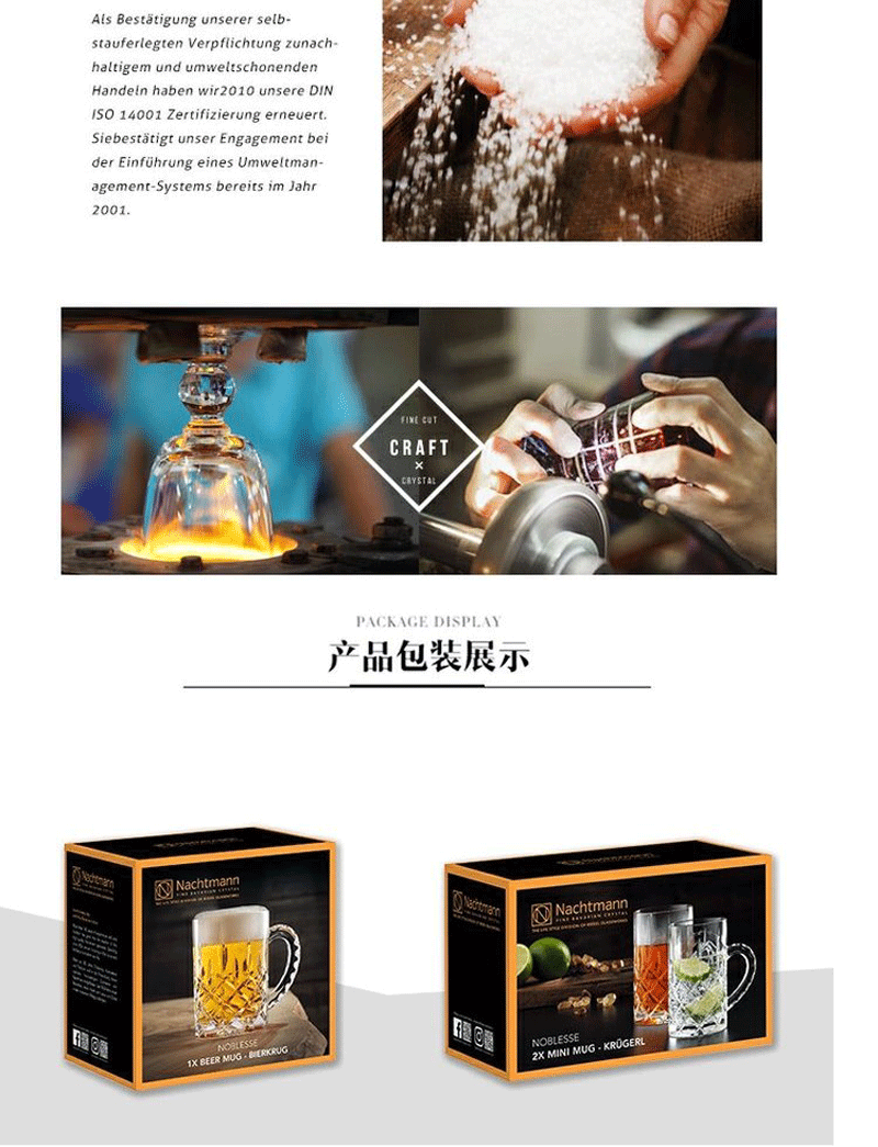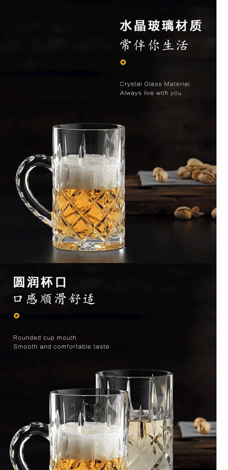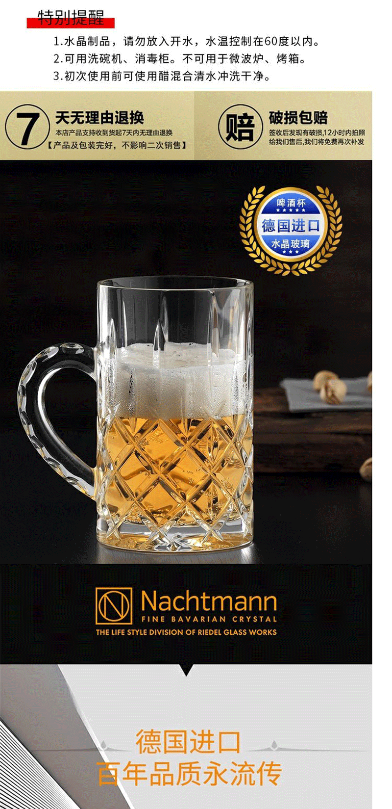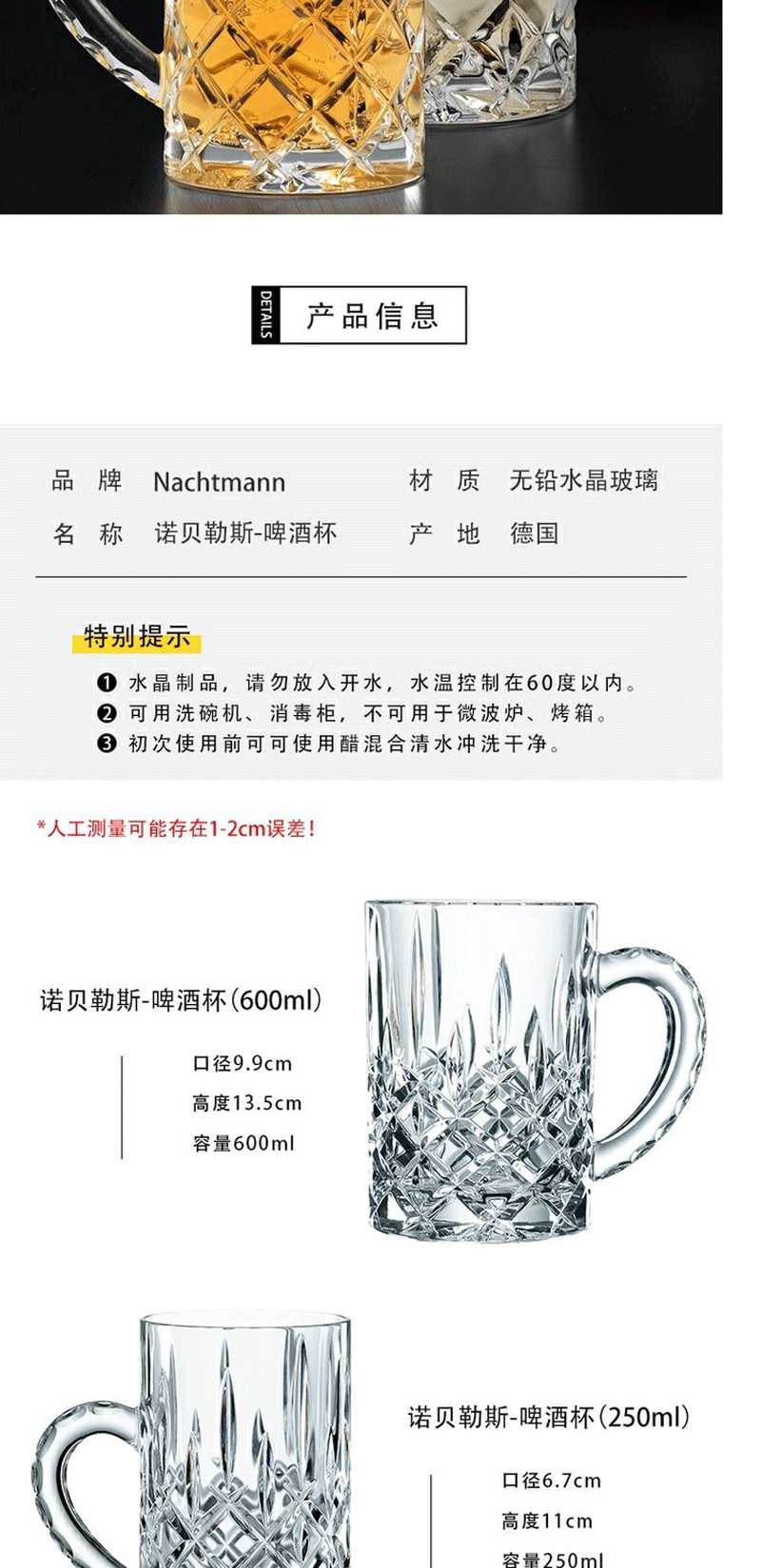 NACHTMANN German imported crystal cup, glass, wineware, whiskey glass, household large-capacity beer glass with handle, Nobelis beer glass 600ml 1 piece