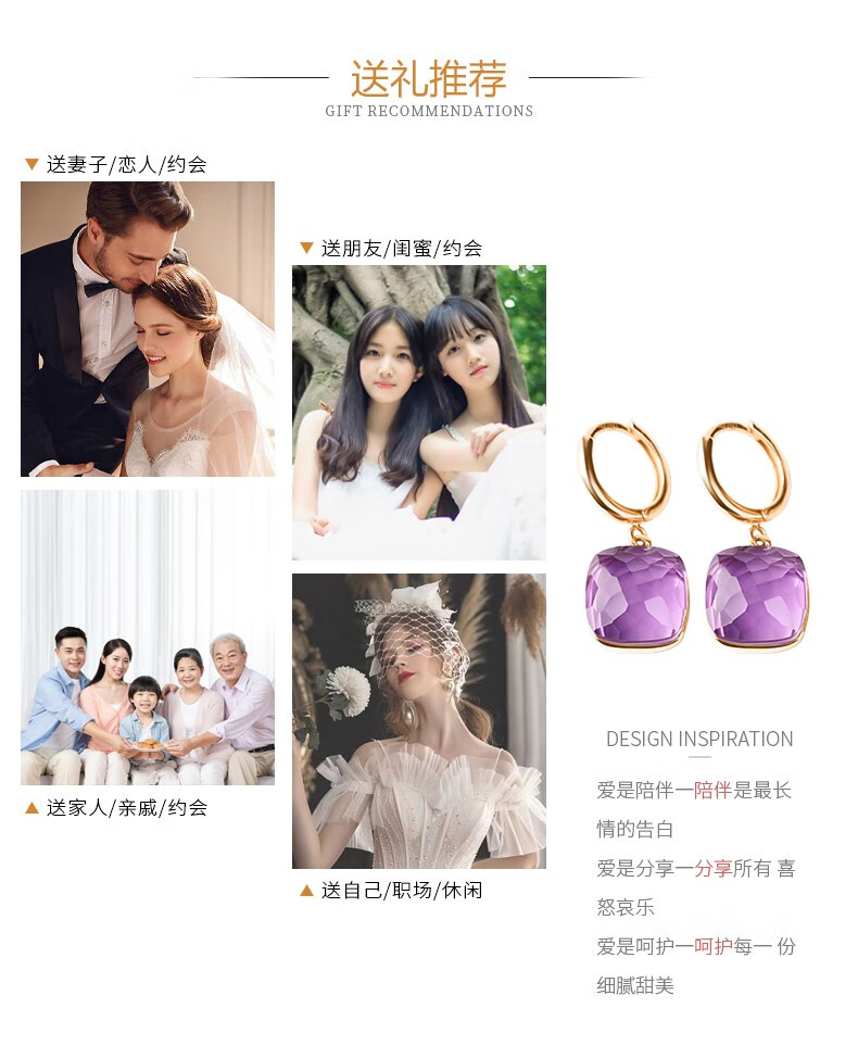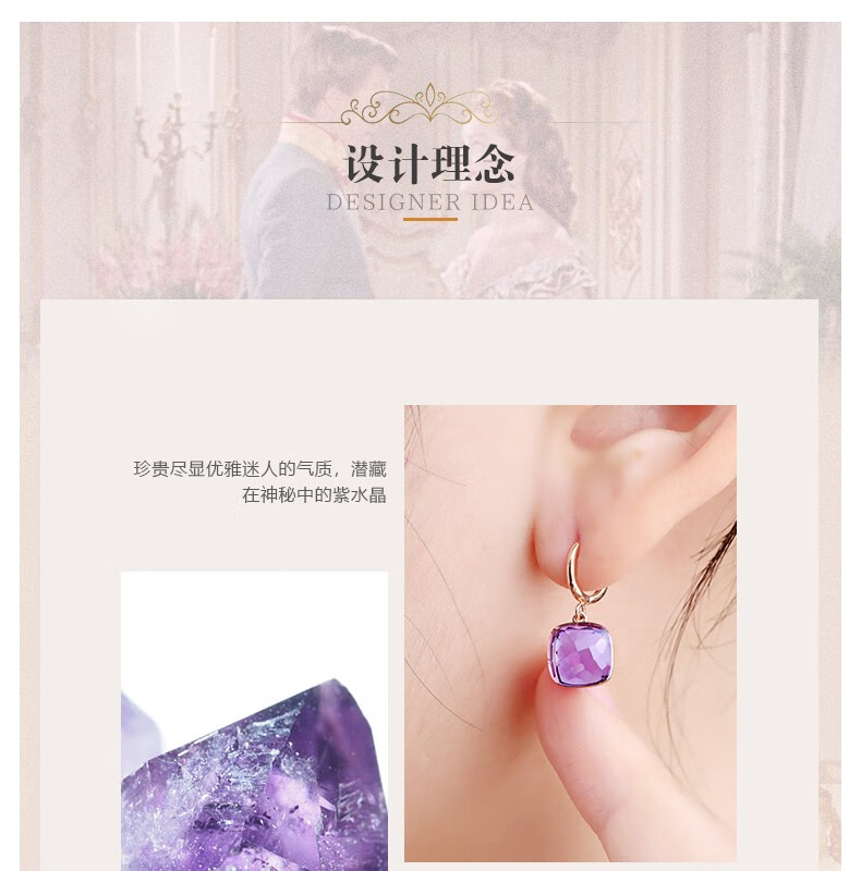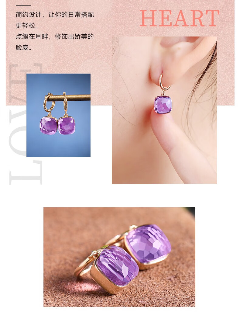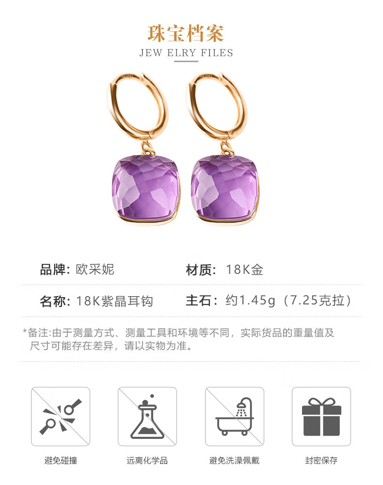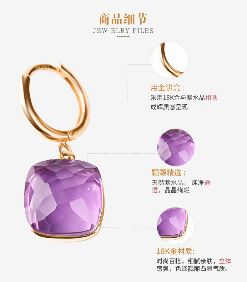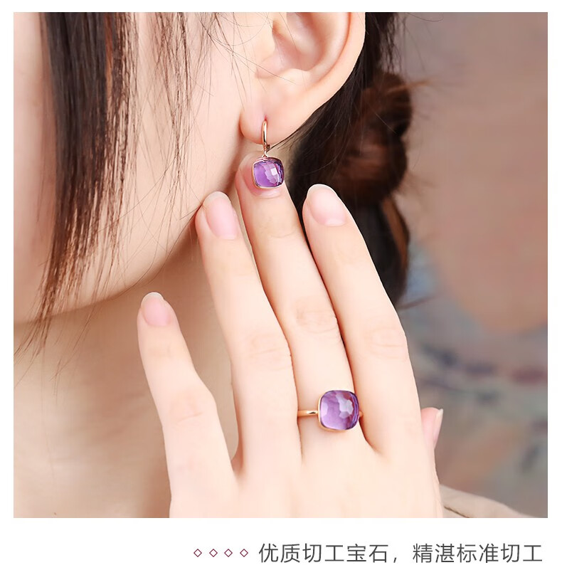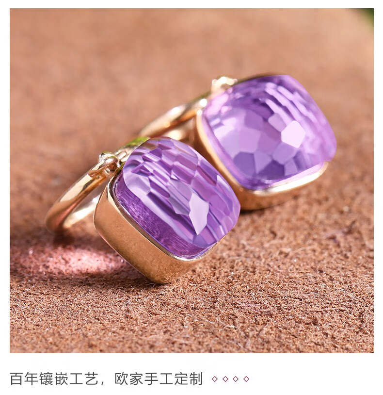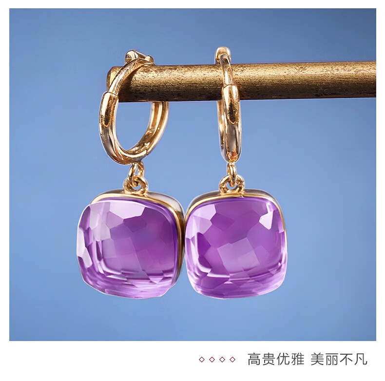 OUCERNY amethyst earrings for women, 18k gold inlaid gemstone earrings, exquisitely cut natural amethyst colored treasure gifts, ready for delivery, one item, one certificate