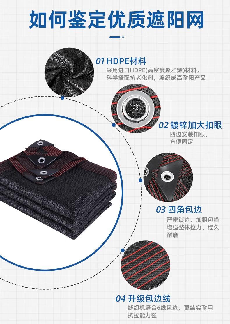Perforated edge-wrapped sunshade net, thickened encrypted sunscreen net, black car courtyard balcony insulation black net sun net, encrypted and thickened 18 pins, 95% shading rate, 2 meters wide and 3 meters long, edged and perforated, 95% shading