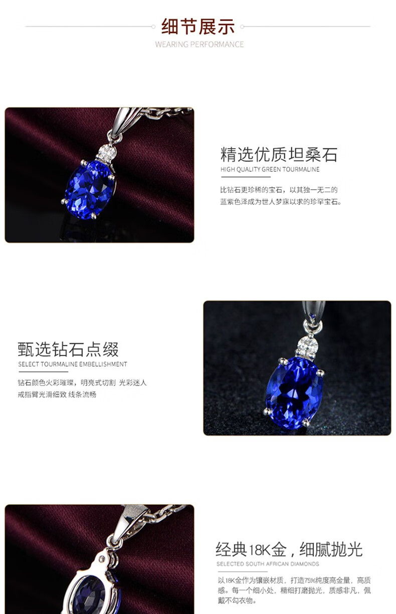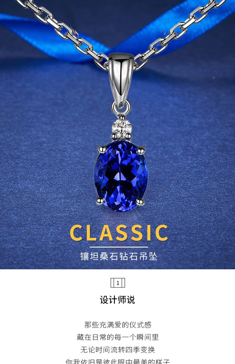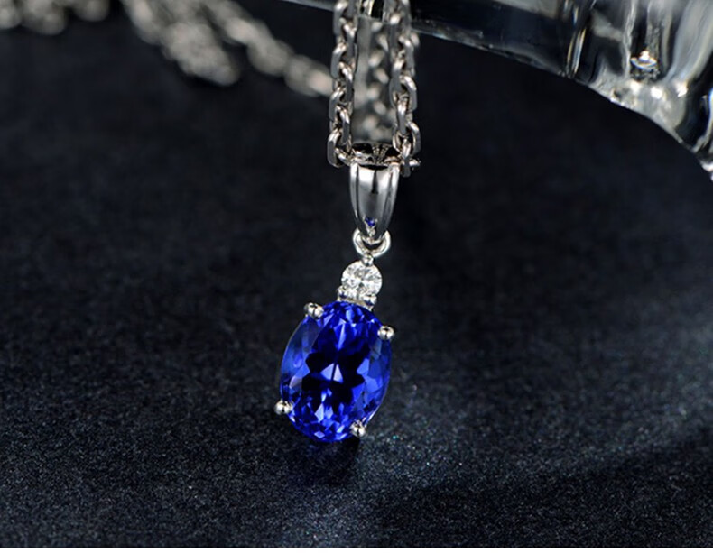 O'Meara Light Luxury White Gold Diamond Necklace Natural Tanzanite Blue Gemstone Pendant Fashionable K Color Gold Clavicle Chain 2.2 Carat Tanzanite Necklace (Including Chain)