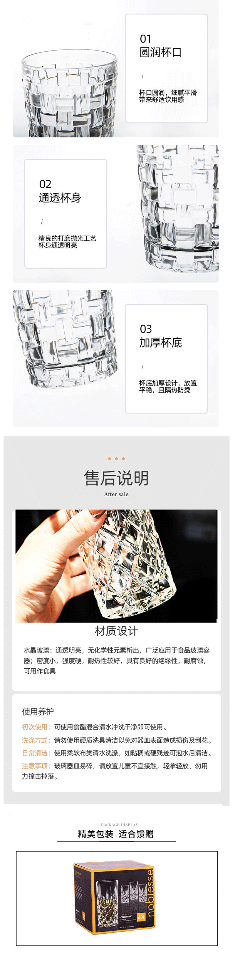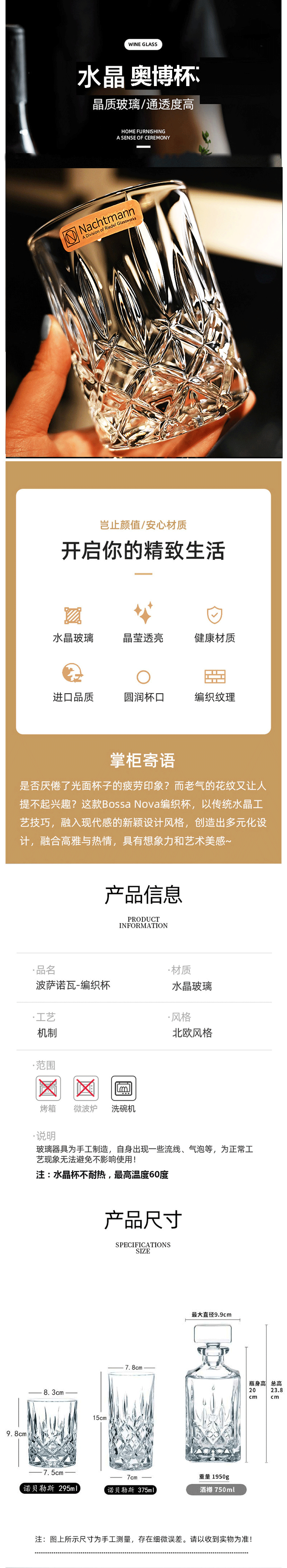 NACHTMANN German imported crystal glass water glass, juice glass, whiskey glass, wine glass, liquor glass, tea cup, beer glass, Nobeles short glass 245ml 1 piece