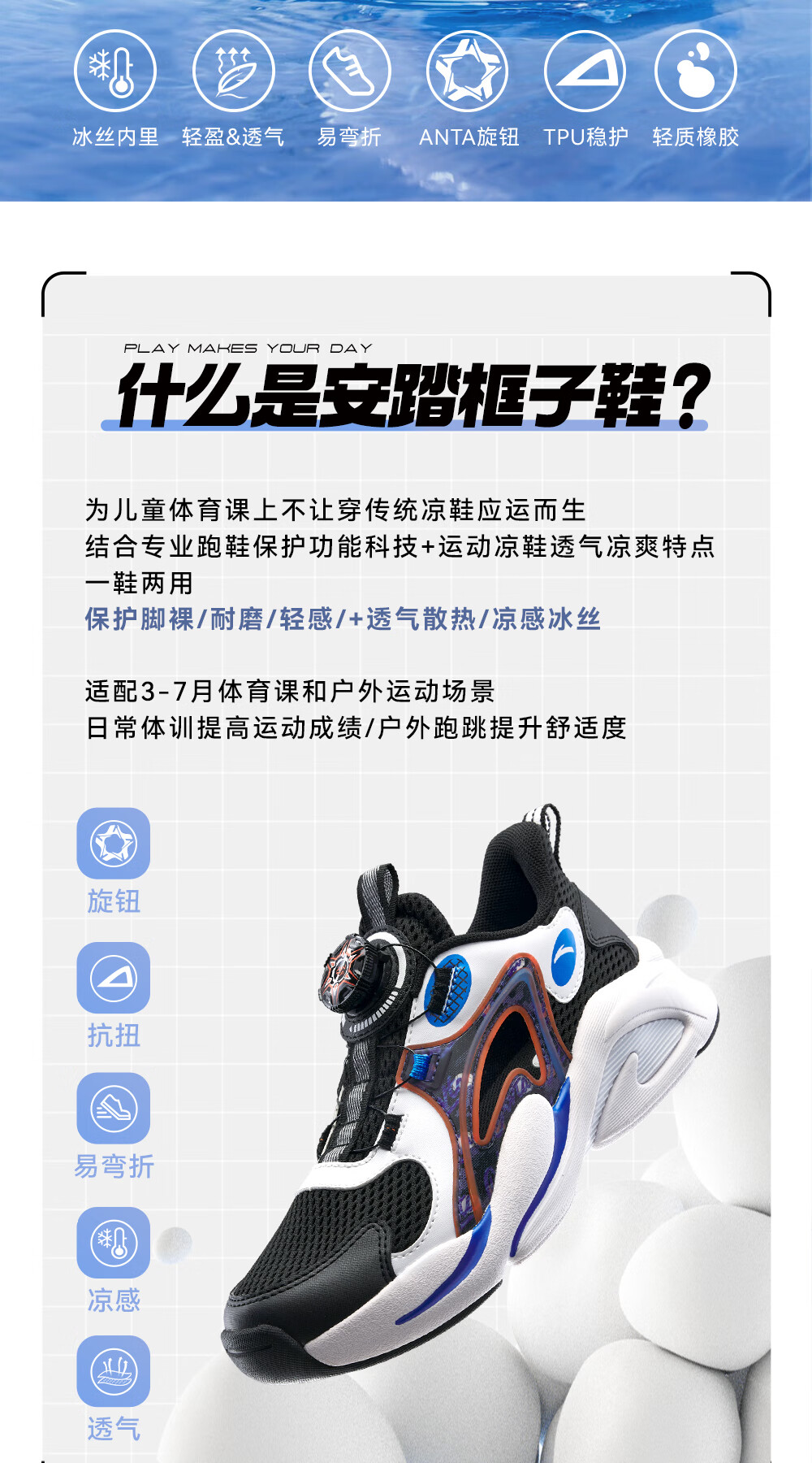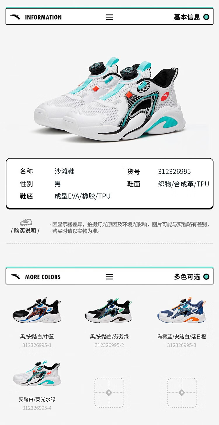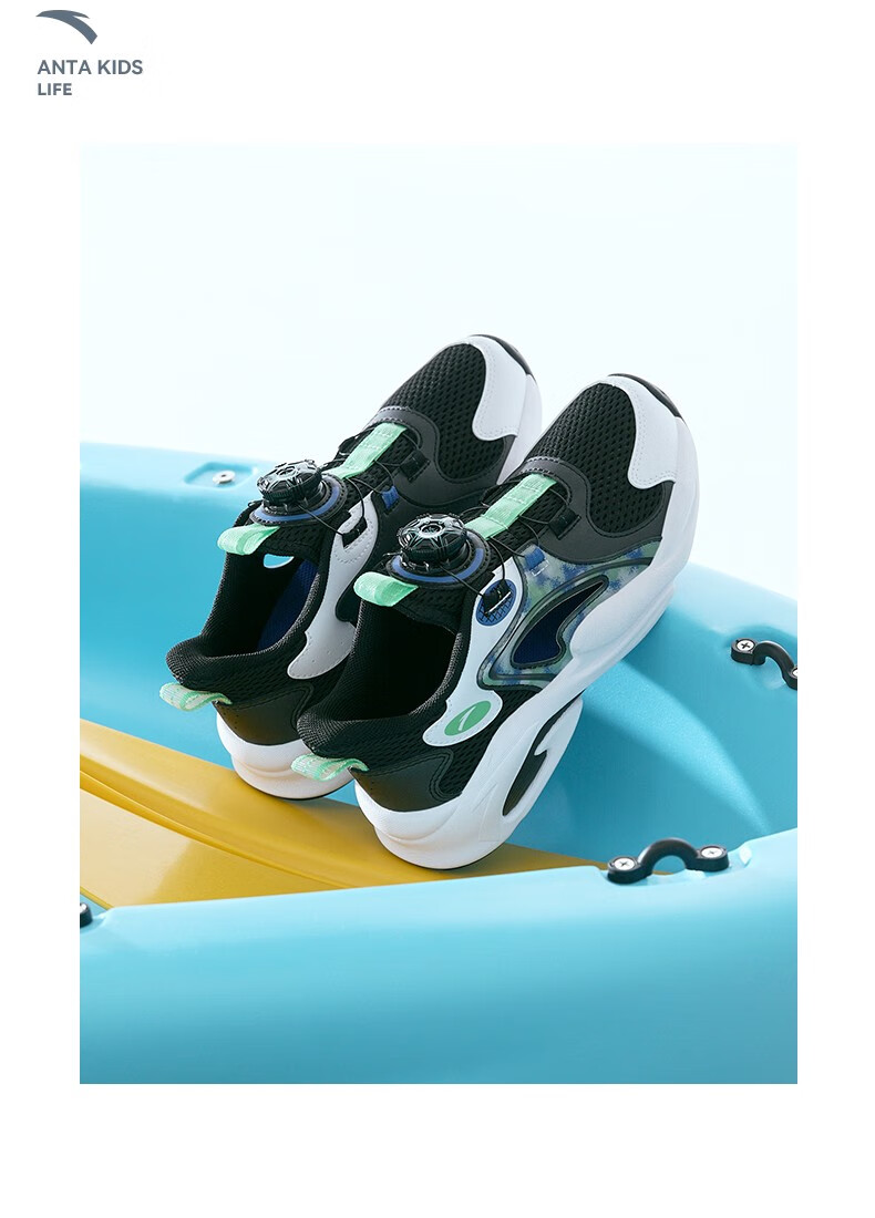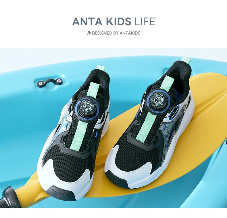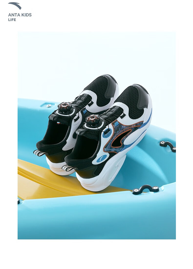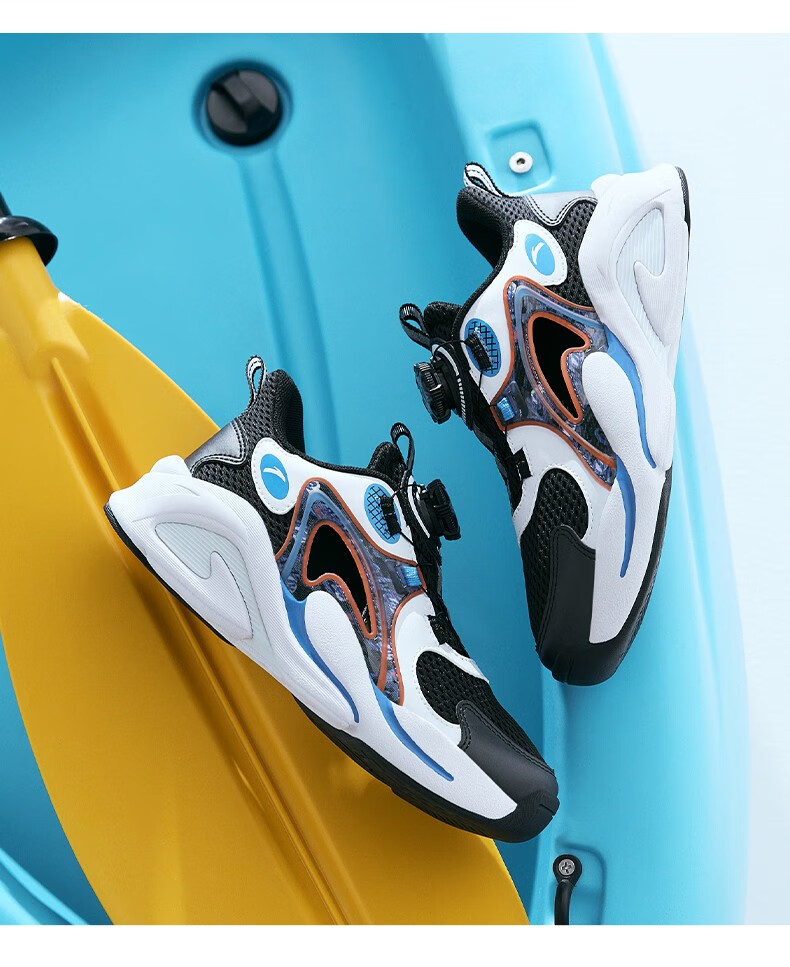 ANTA children's sandals, men's and women's beach shoes, summer Baotou physical education class student sports overbearing frame shoes, black/Anta white/medium blue-1 36, shoe inner length 23cm