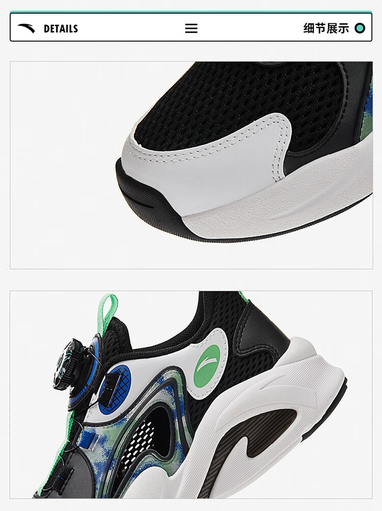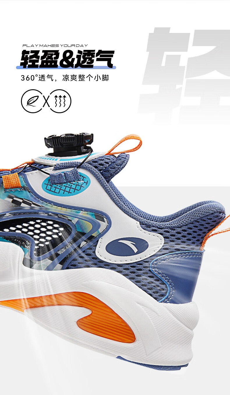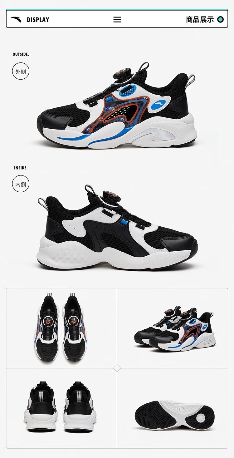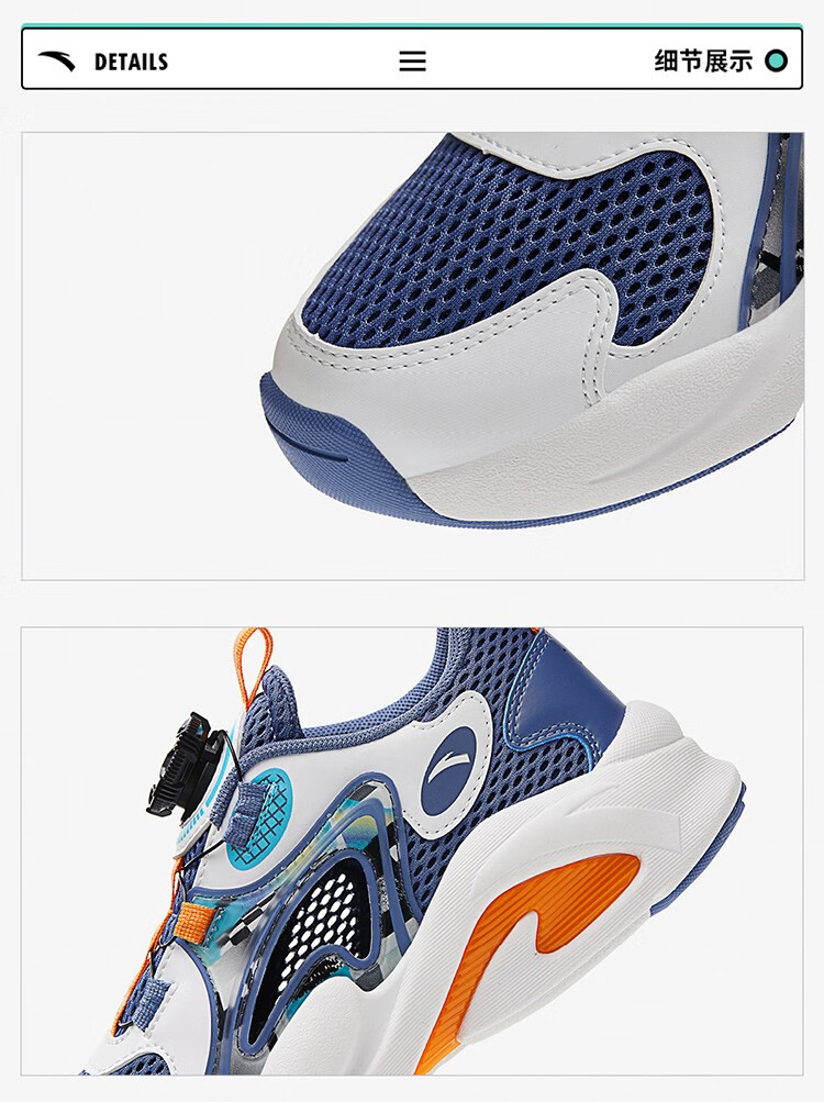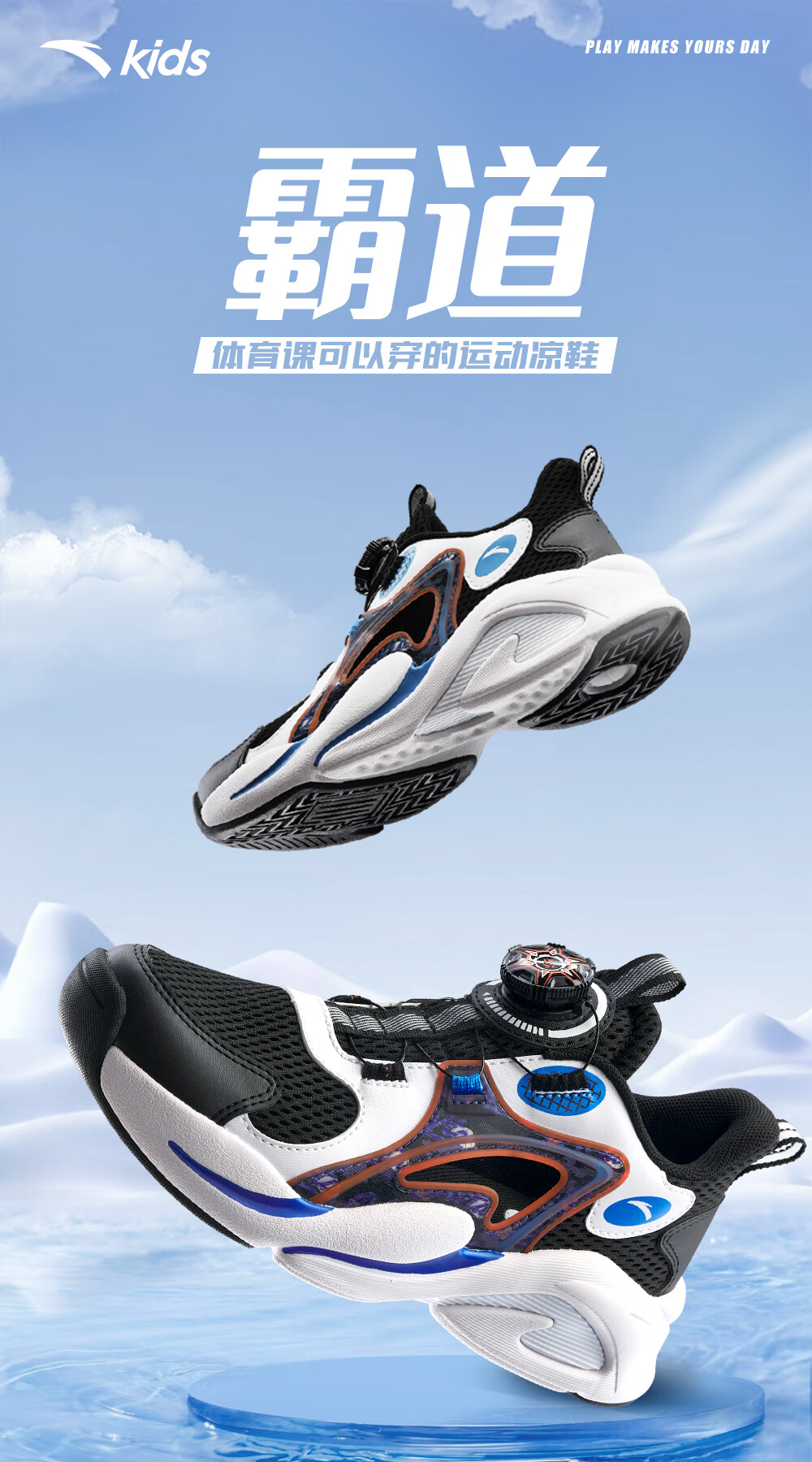 ANTA children's sandals, men's and women's beach shoes, summer Baotou physical education class student sports overbearing frame shoes, black/Anta white/medium blue-1 36, shoe inner length 23cm
