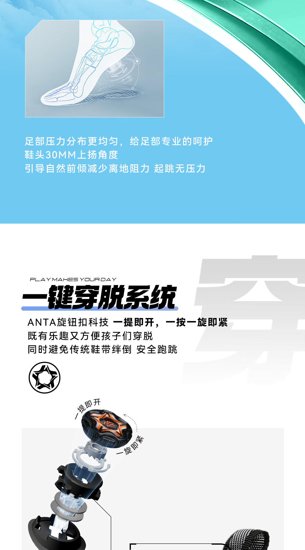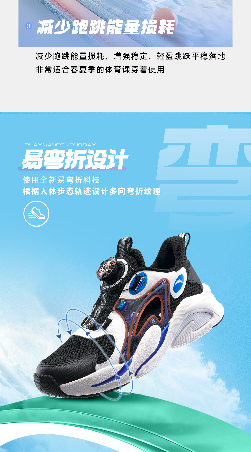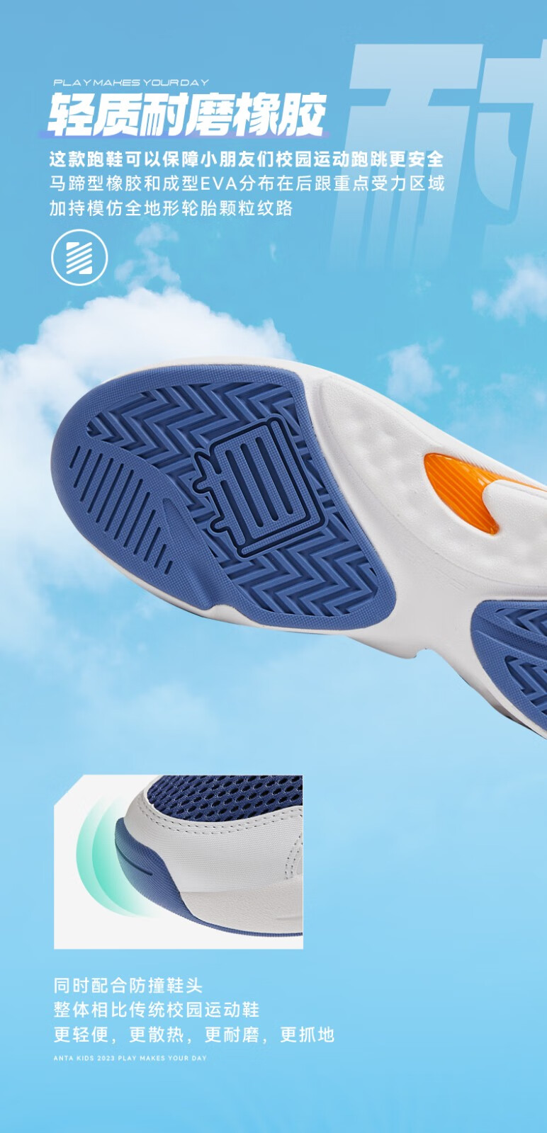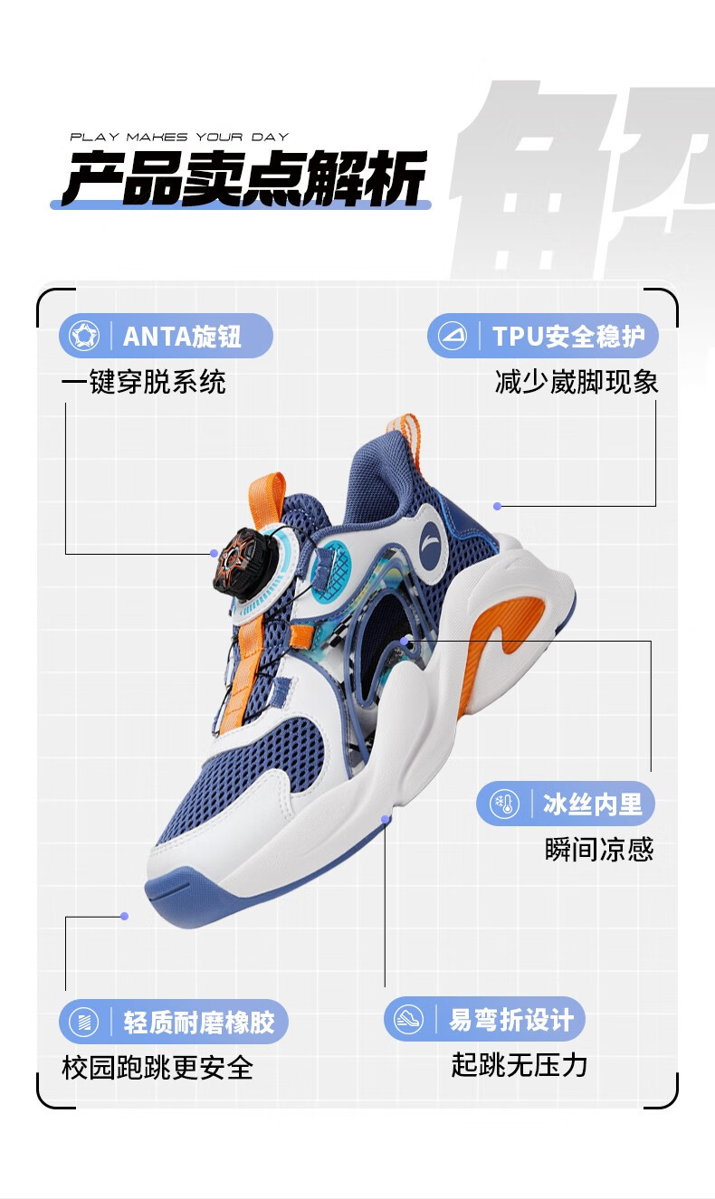 ANTA children's sandals, men's and women's beach shoes, summer Baotou physical education class student sports overbearing frame shoes, black/Anta white/medium blue-1 36, shoe inner length 23cm