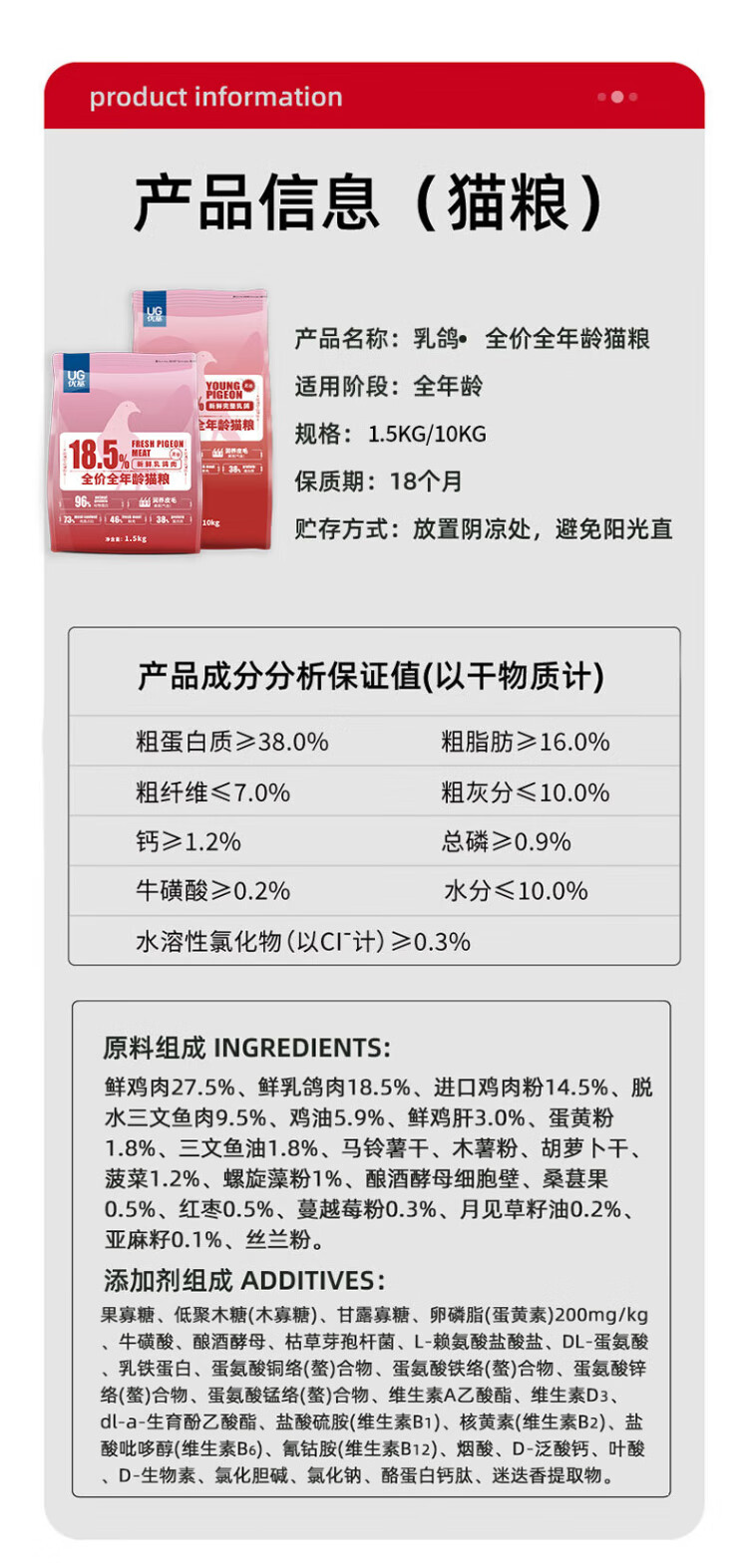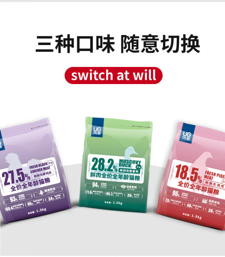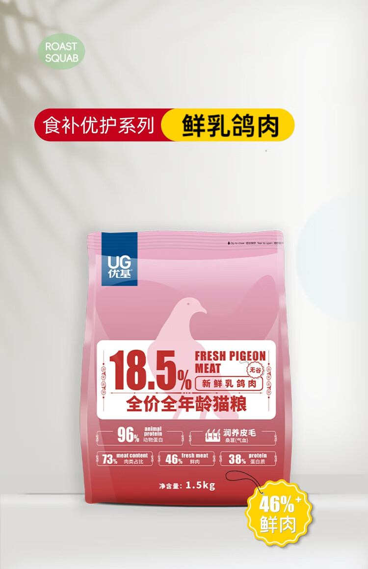 YJ (YJ) squab cat food for adult cats and kittens, general grain-free fresh meat, salmon oil food supplement, British short blue cat full price cat food nutrition 1.5kg squab full price all-age cat food