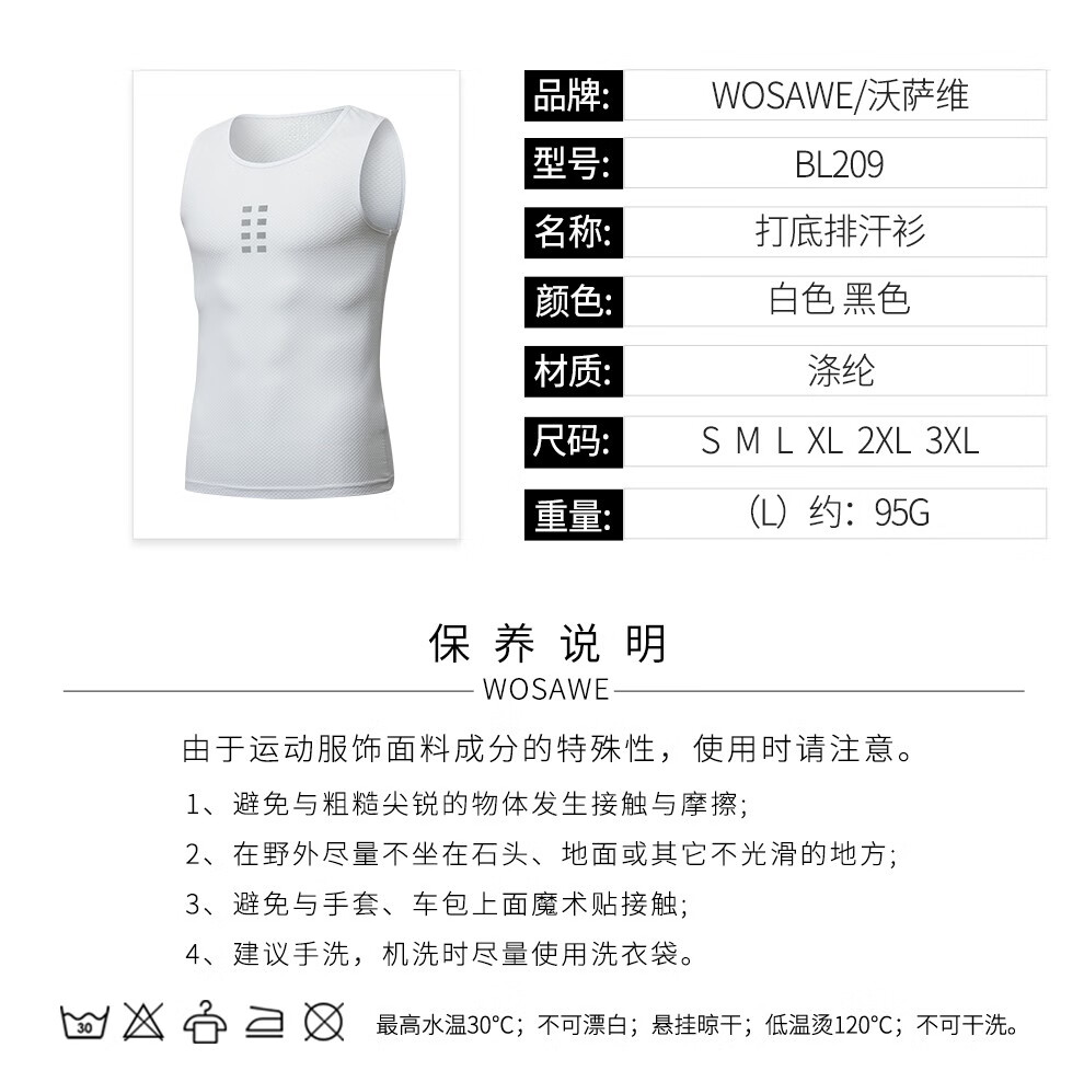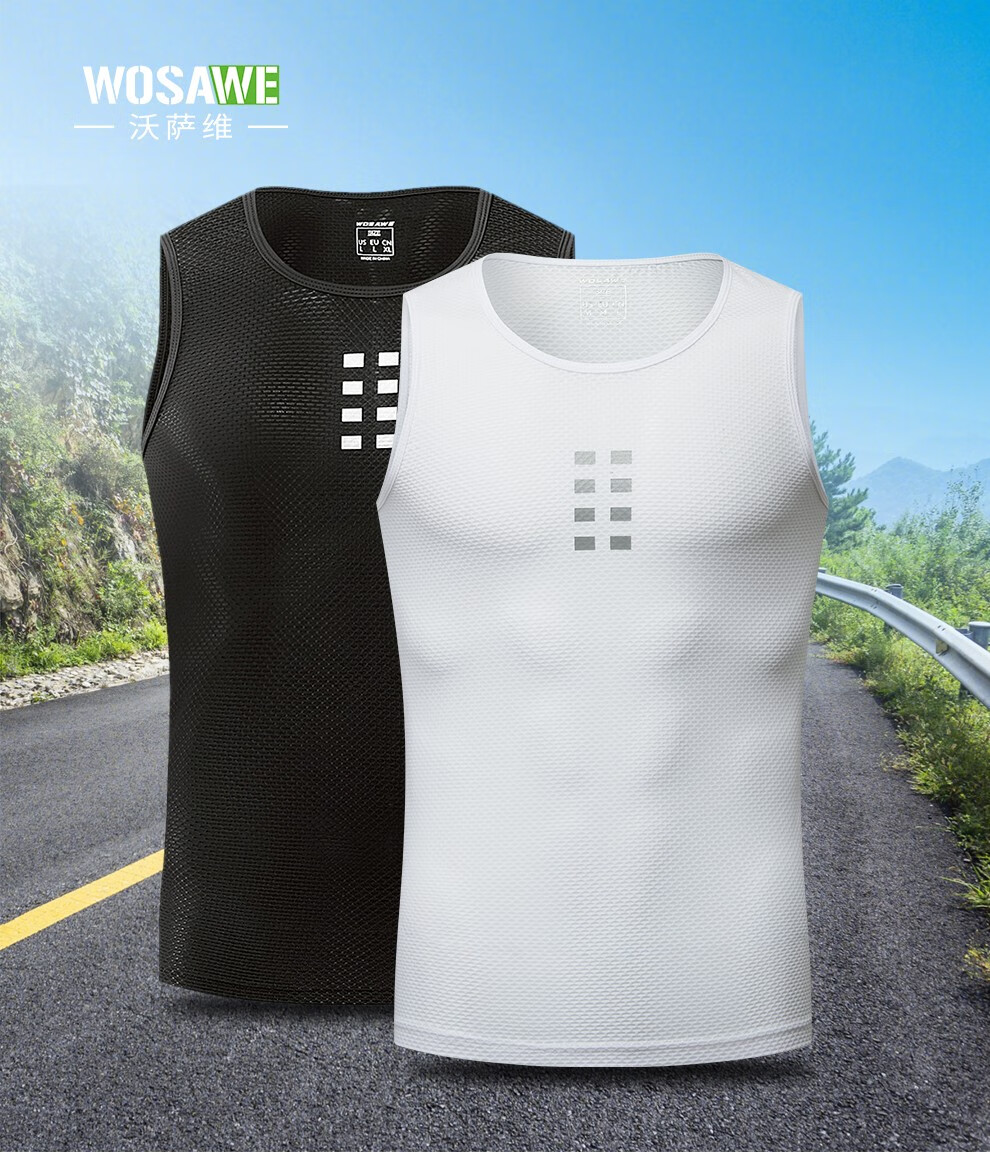 WOSAWE Cycling Basement Sweatshirt Road Bike Mountain Bike Sleeveless Quick-Drying Sweat-Absorbent Vest Men's Sports Underwear Wing Transparent - White Sleeveless Sweatshirt/High-Gloss Reflective L (Suitable for 65-75kg)