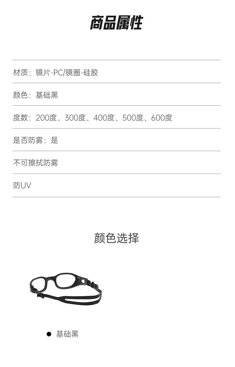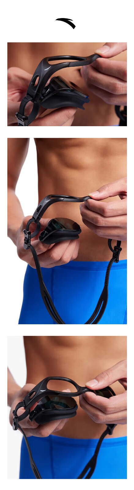 ANTA (ANTA) Men's and Women's Myopia Swimming Goggles Frame Highly Elastic Anti-Slip Silicone Black Swimming Goggles Ring Basic Black-1 One Size