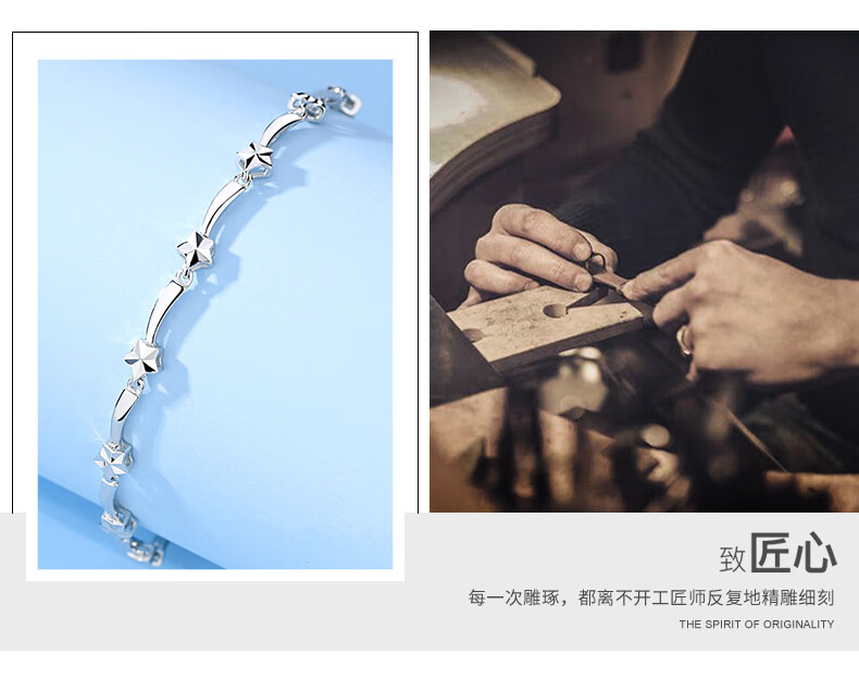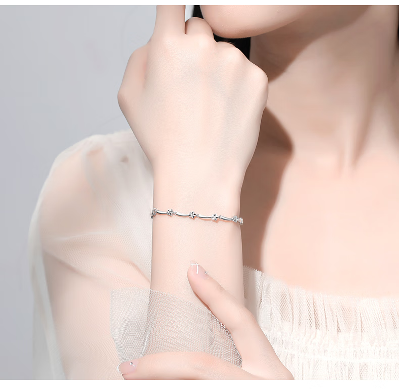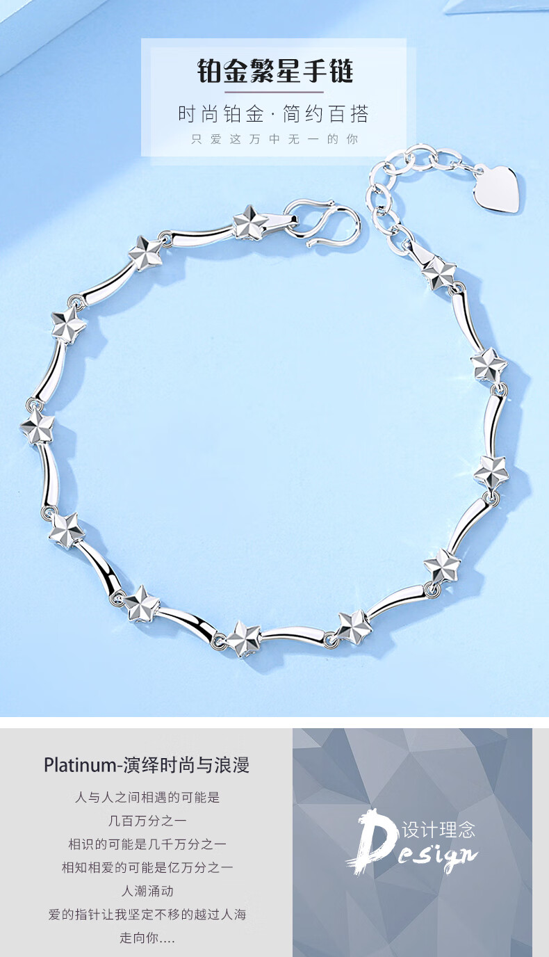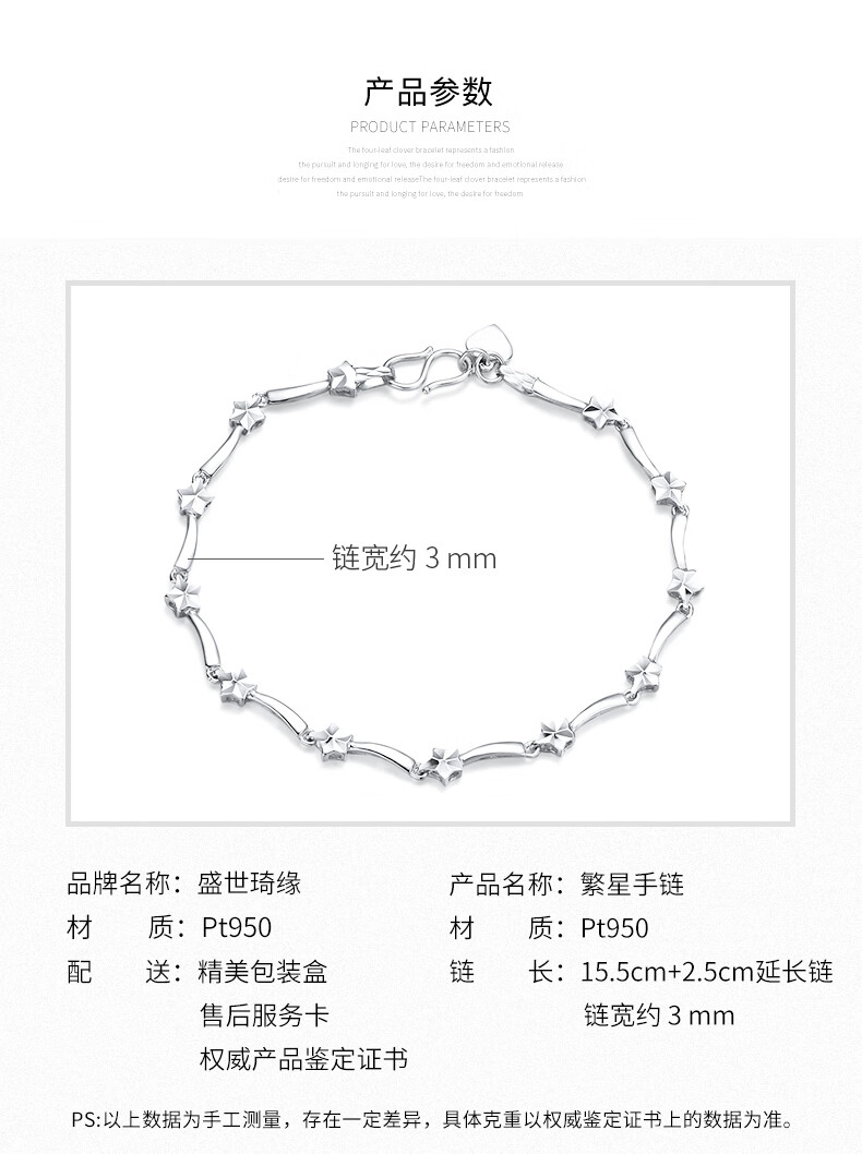 Shengshi Qiyuan (SHENGSHIQIYUAN) platinum bracelet for women pt950 fashion trend star bracelet hand ornament solid platinum bracelet for women as a gift for girlfriend Star bracelet 18 cm 6.3-6.5 g