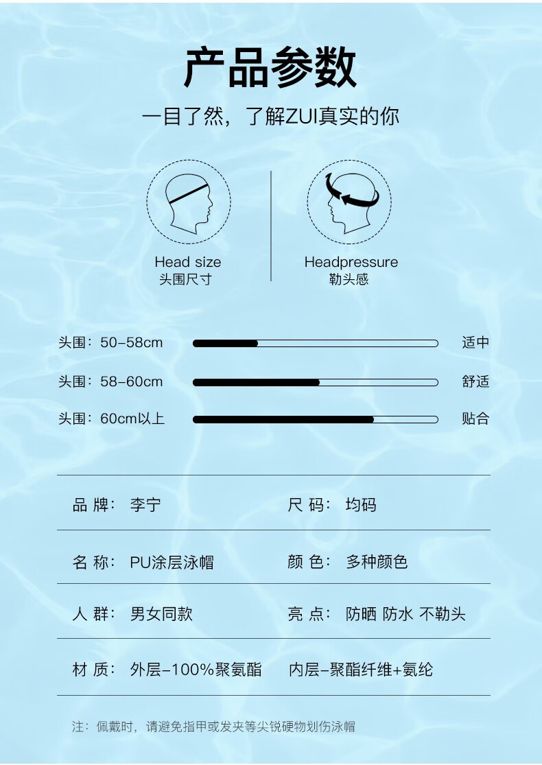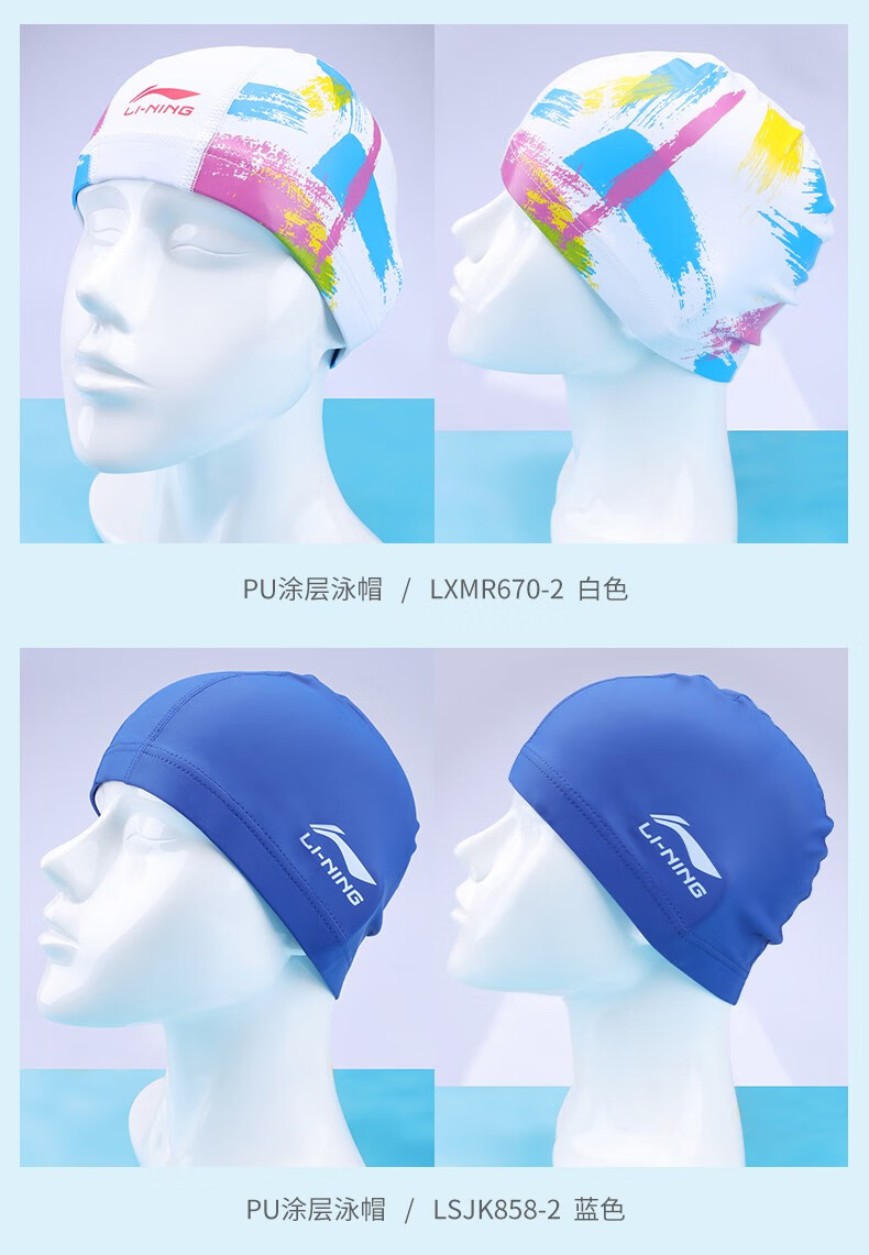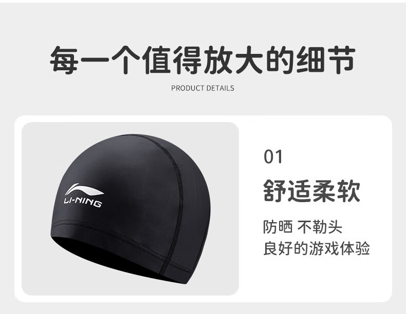 Li Ning (LI-NING) swimming caps for men and women, fabric swimming caps for men and women, comfortable and non-stretching, children and teenagers, high elastic fabric swimming caps, increased head circumference, LNMT951-1 black, waterproof coating, one size fits all