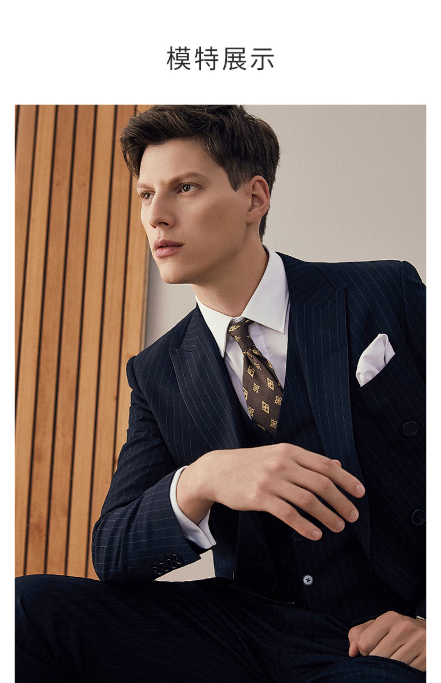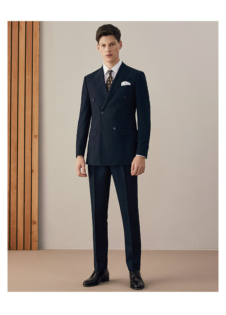 BUSYCON suit suit male groom wedding formal navy blue business striped double-breasted British style wedding suit three-piece suit (blue stripe) two-piece suit top + pants 46