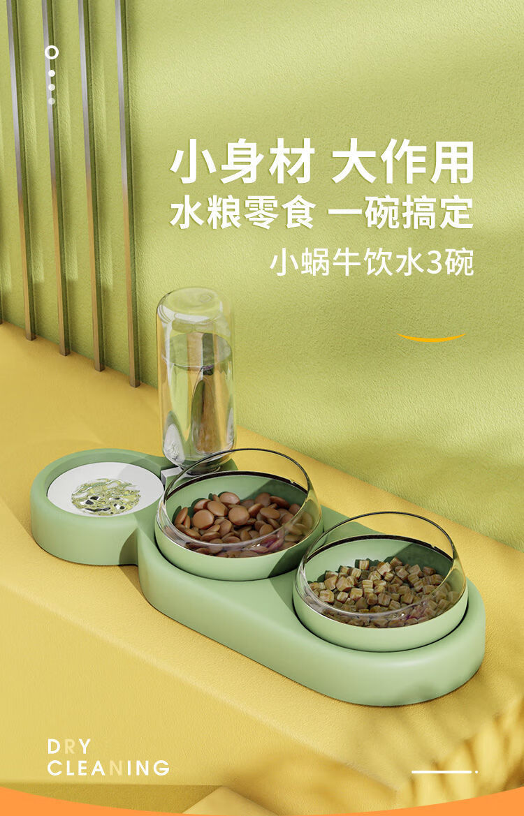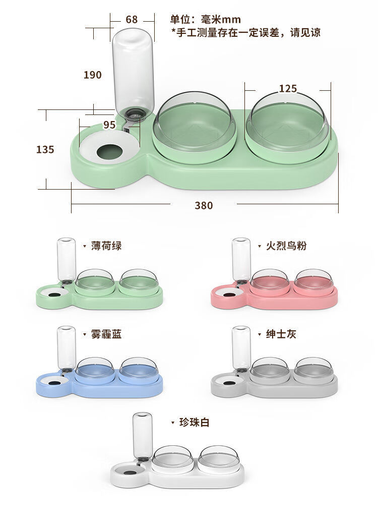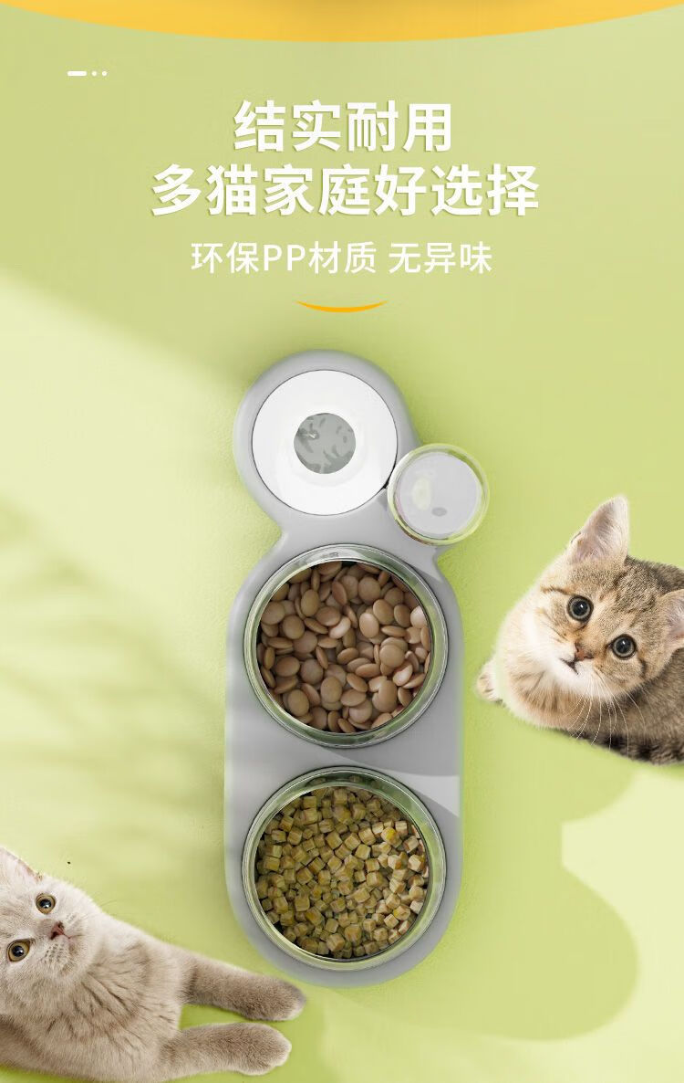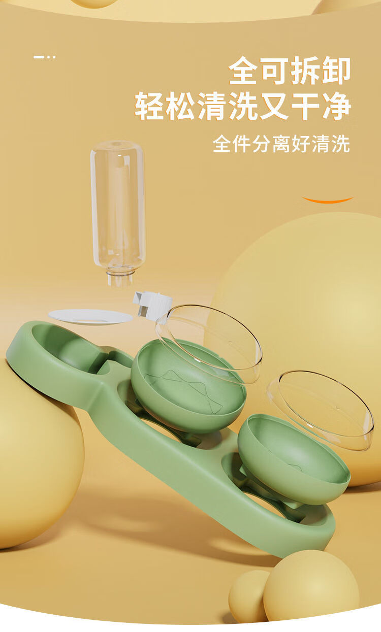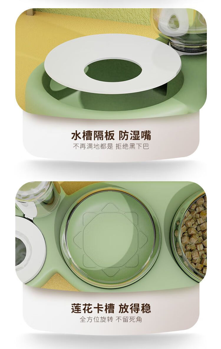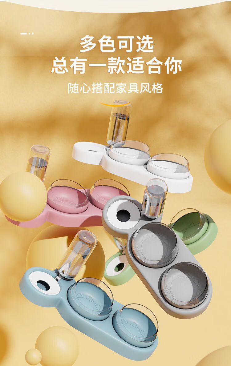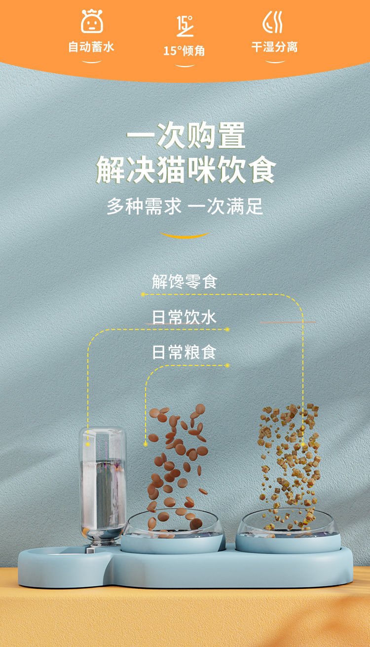 Huamei Chinchilla Bowl Double Bowl Dog Bowl Protects Cervical Vertebra Automatic Drinking Bowl Anti-Tip Cat Food Dog Rice Bowl Dog and Cat Supplies Dry and Wet Separation 2 Bowls 1 Water - Azure Blue Only 7 Left 2 Bowls 1 Water *Food Grade Material_Automatic Drinking Water