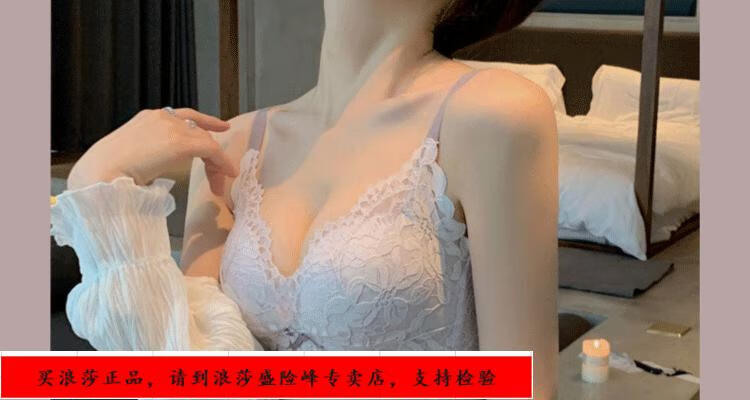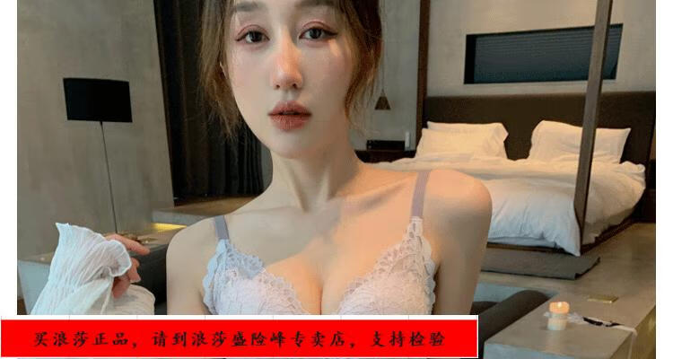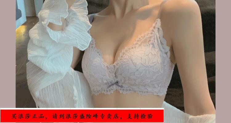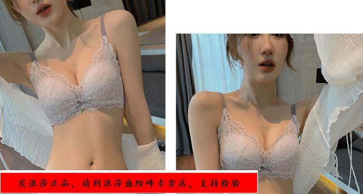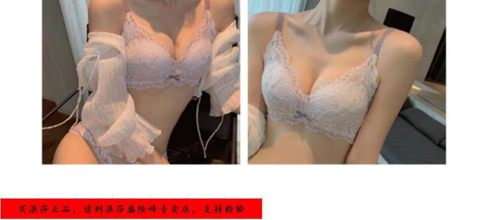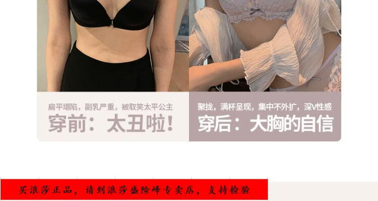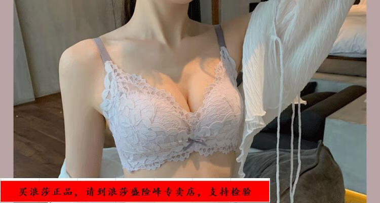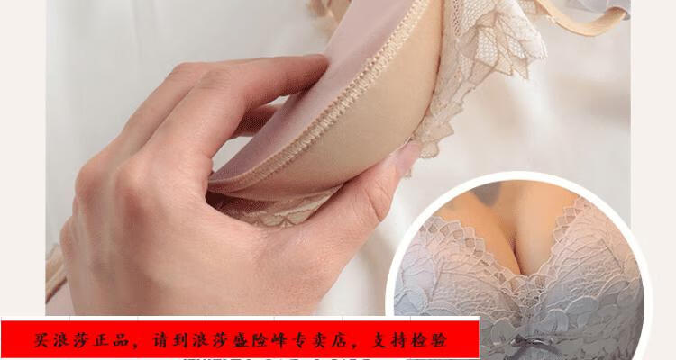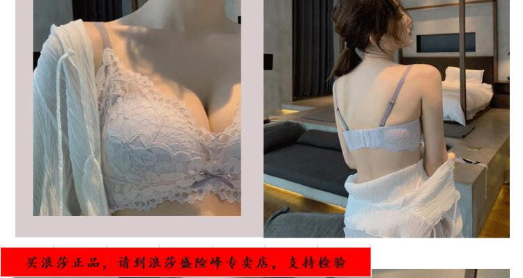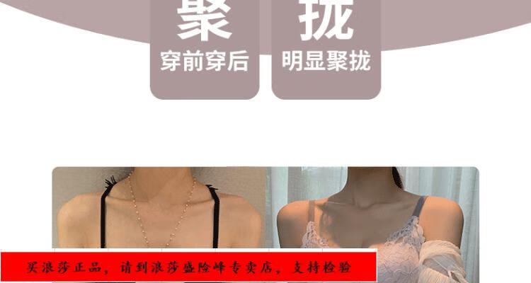 LangSha underwear for girls with small breasts, no wire rings, breast reduction, anti-sagging, comfortable lace sexy bra set, black underwear + panties set 70/32B