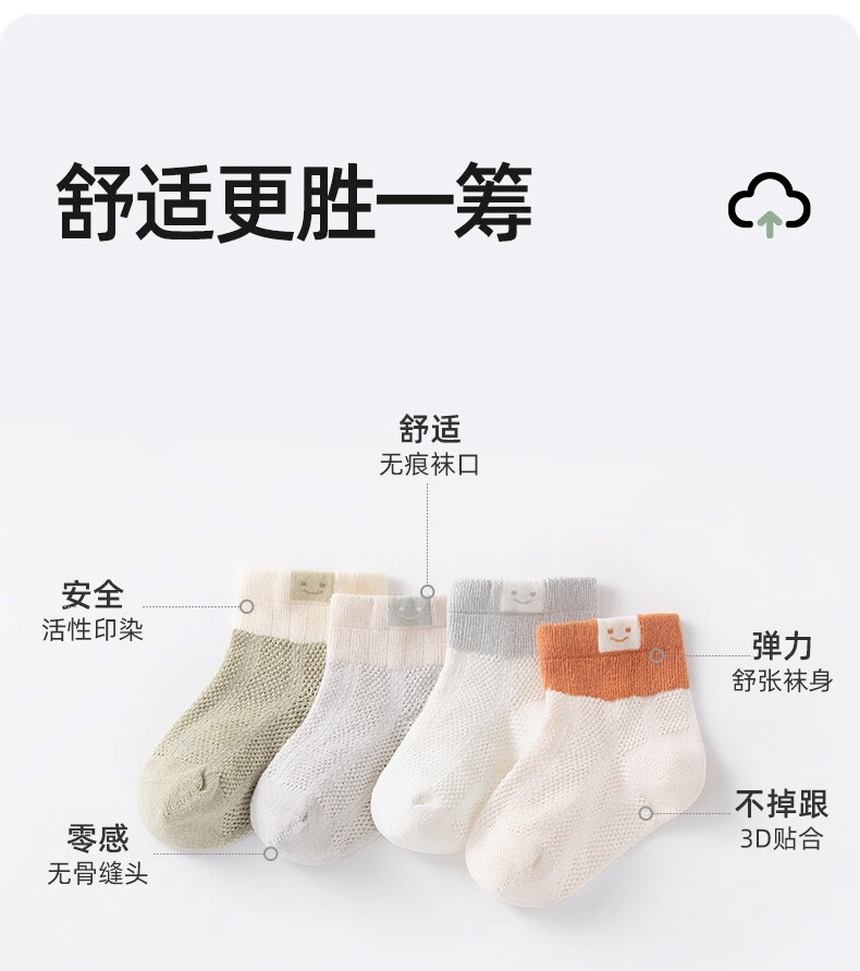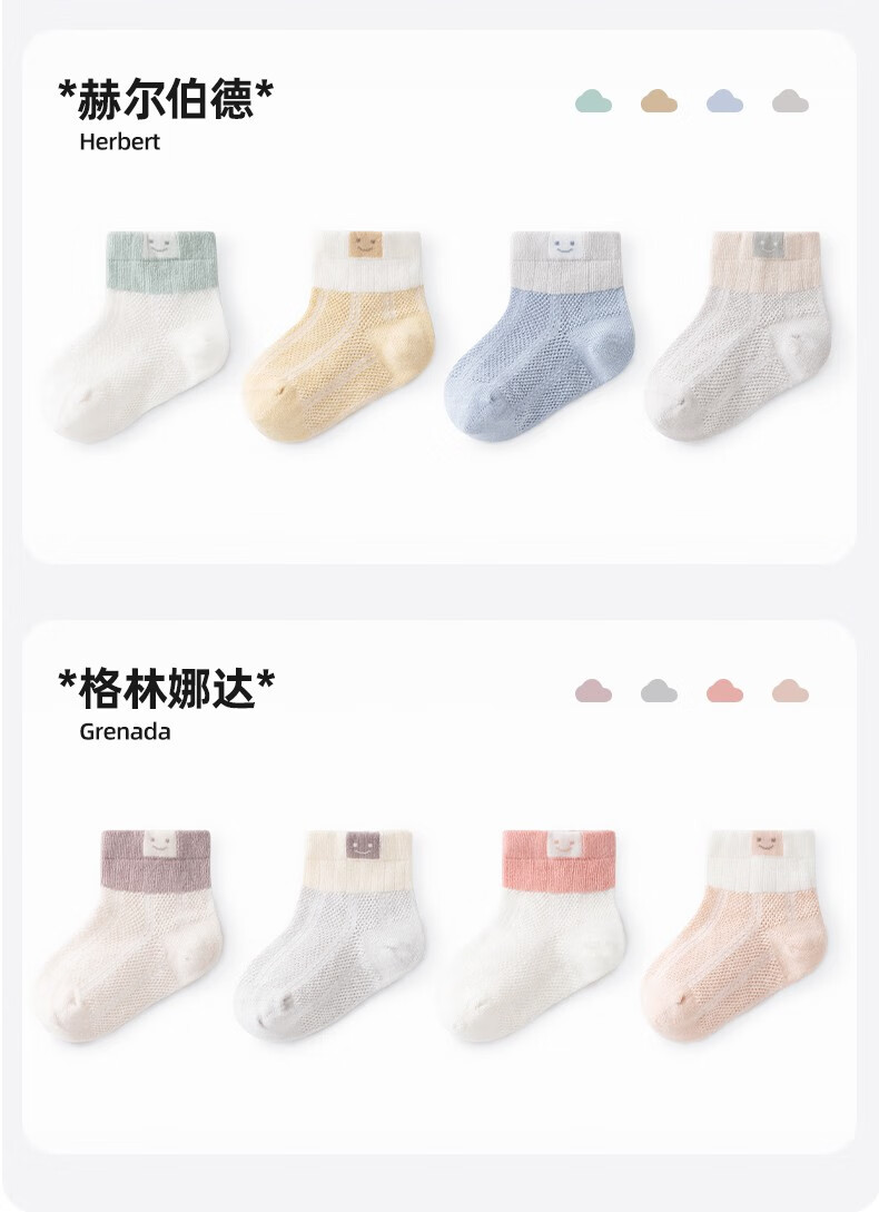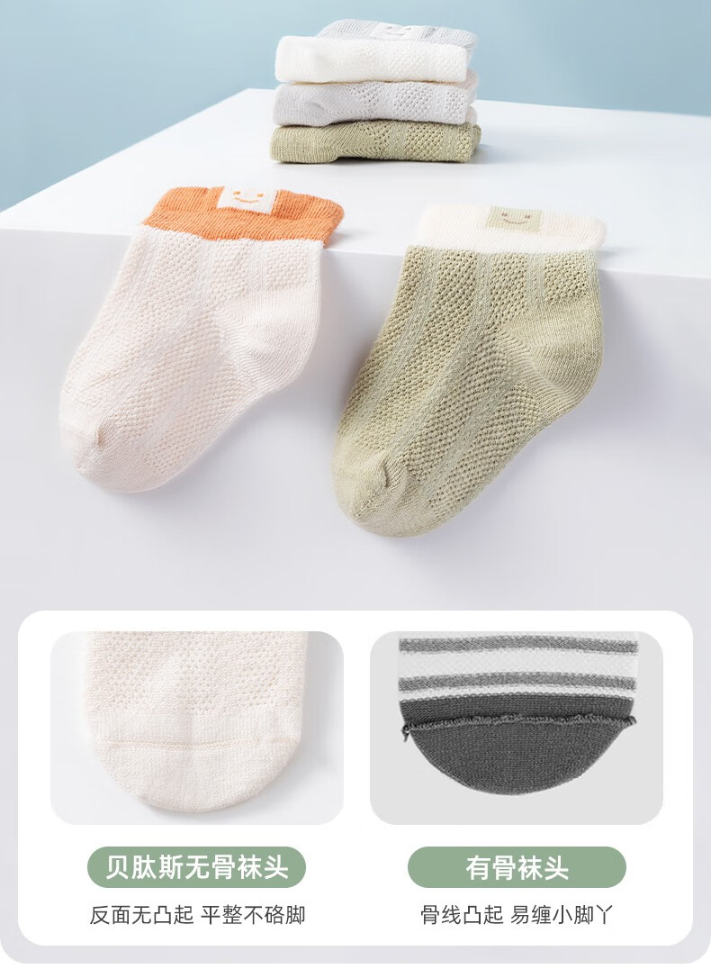 BETUS Children's Socks Regular Spring and Summer Mesh Baby Short Socks for Newborn Boys and Girls Bristol--Mesh Breathable 4 Pairs 3-5 Years Old (Recommended Foot Length 14-16cm)