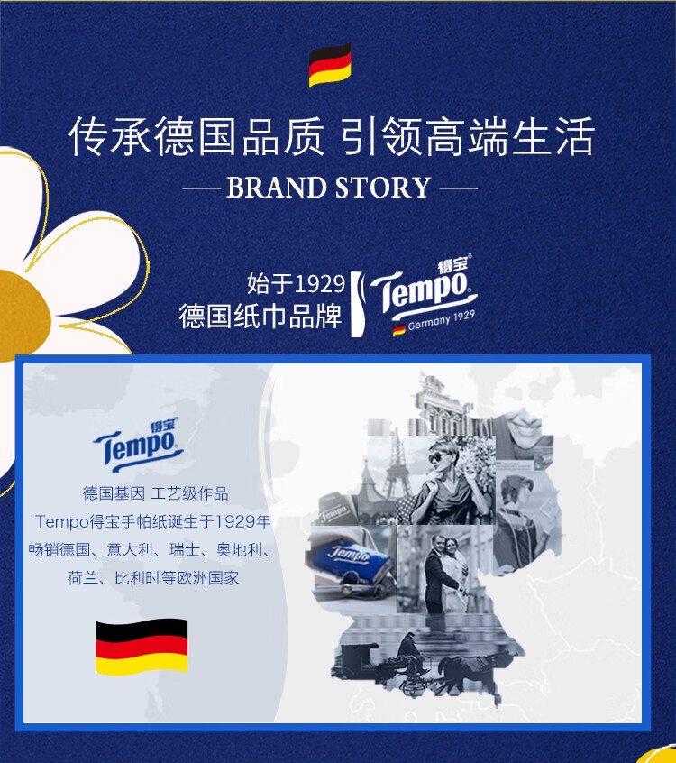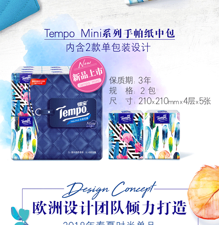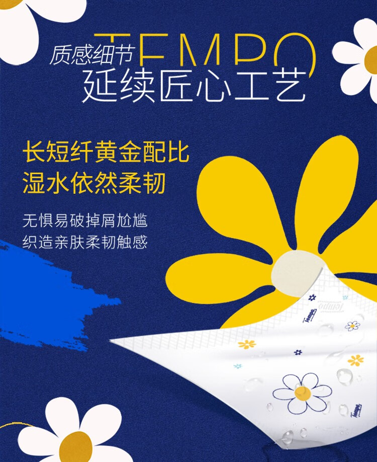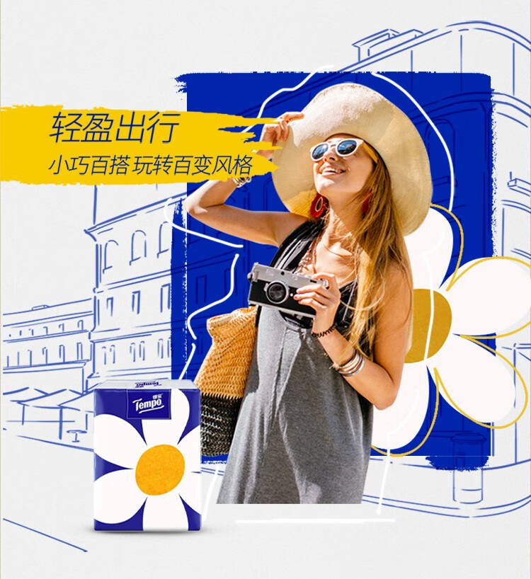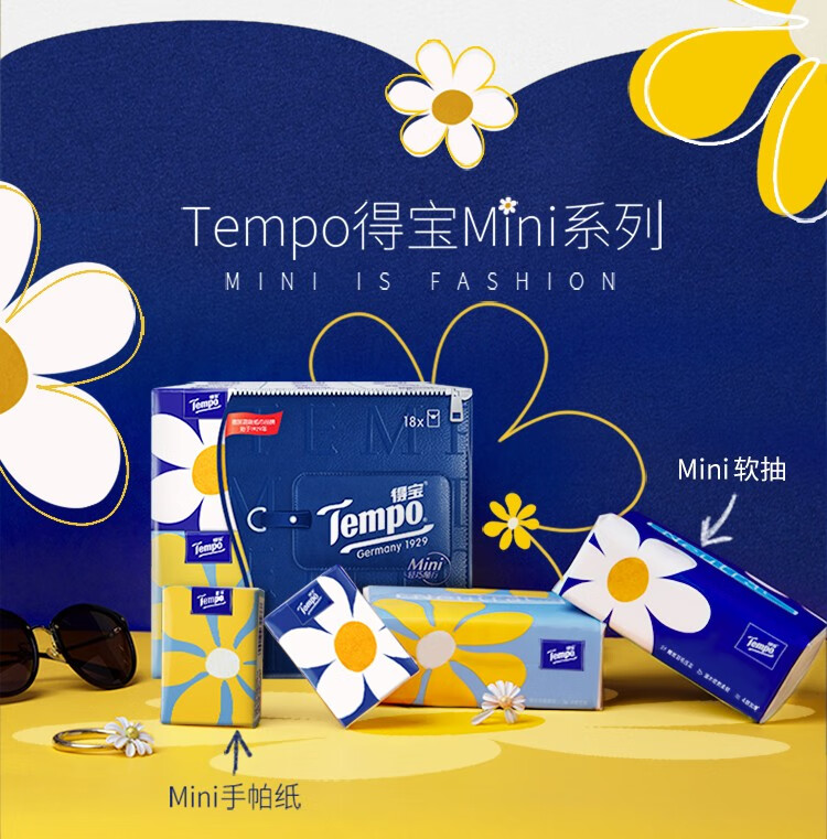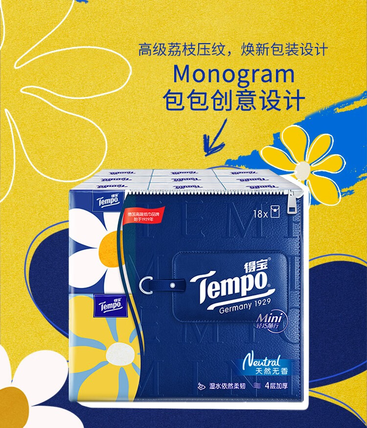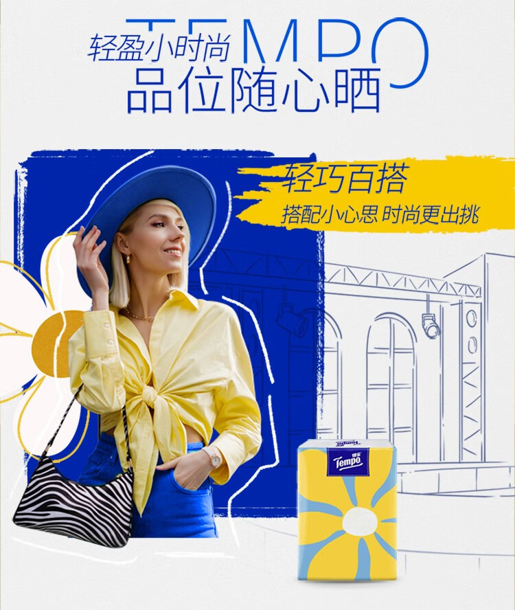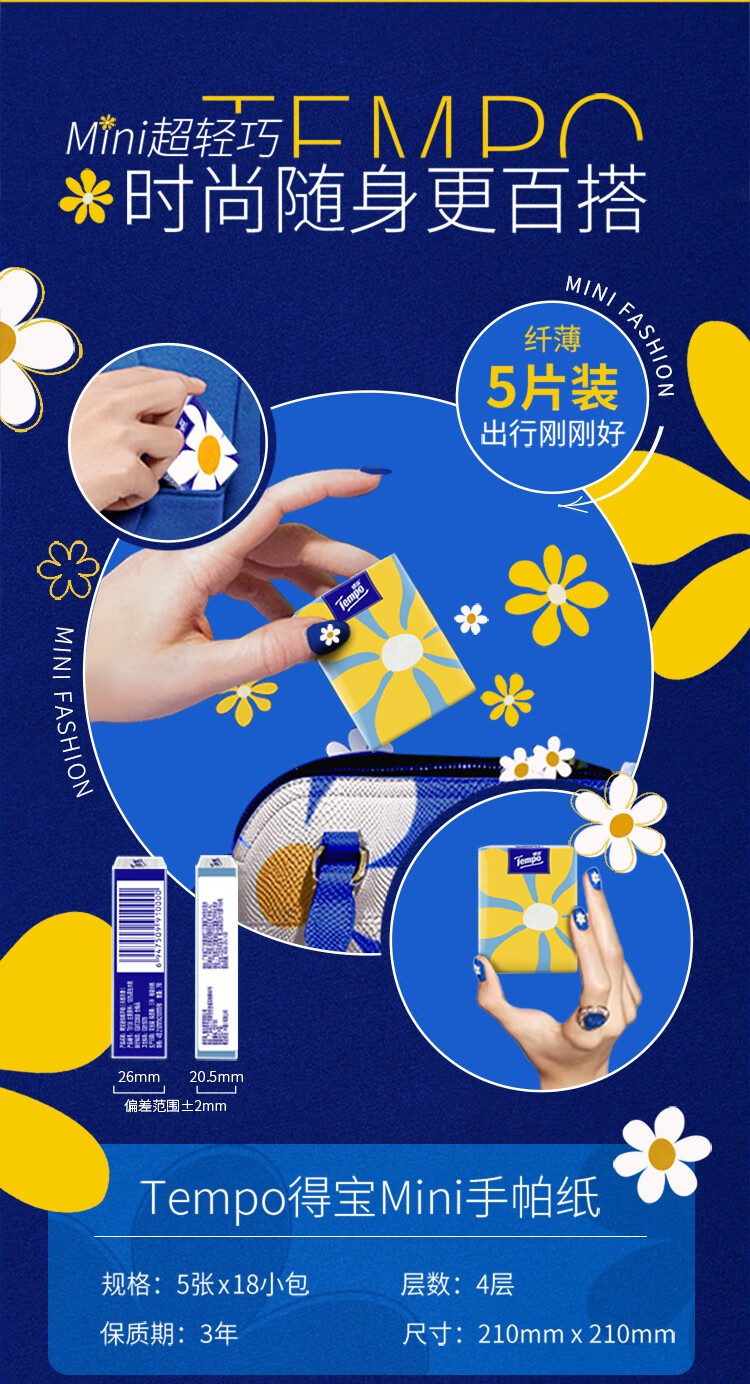 TEMPO handkerchief paper portable natural unscented MINI series 4-layer thick napkin toilet paper trendy printing 18 packs
