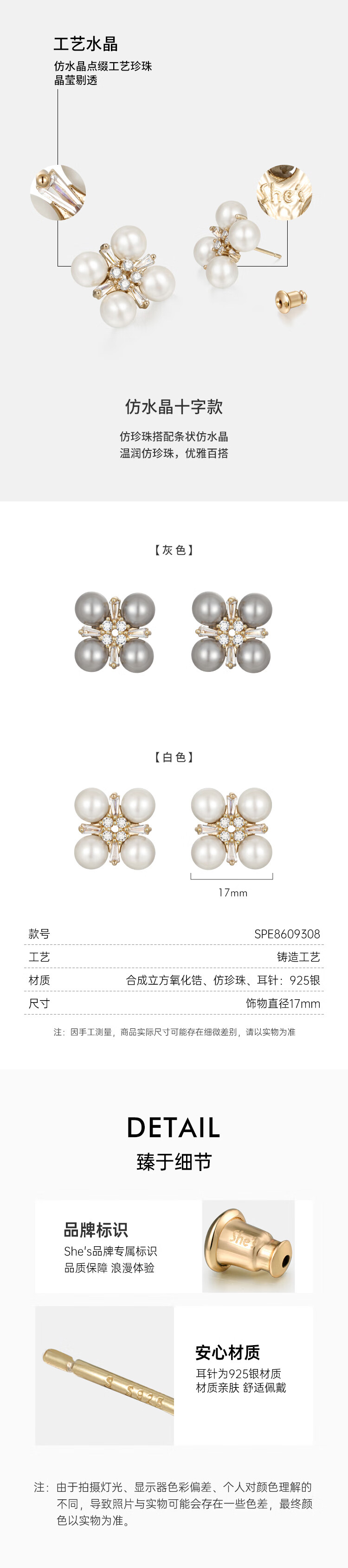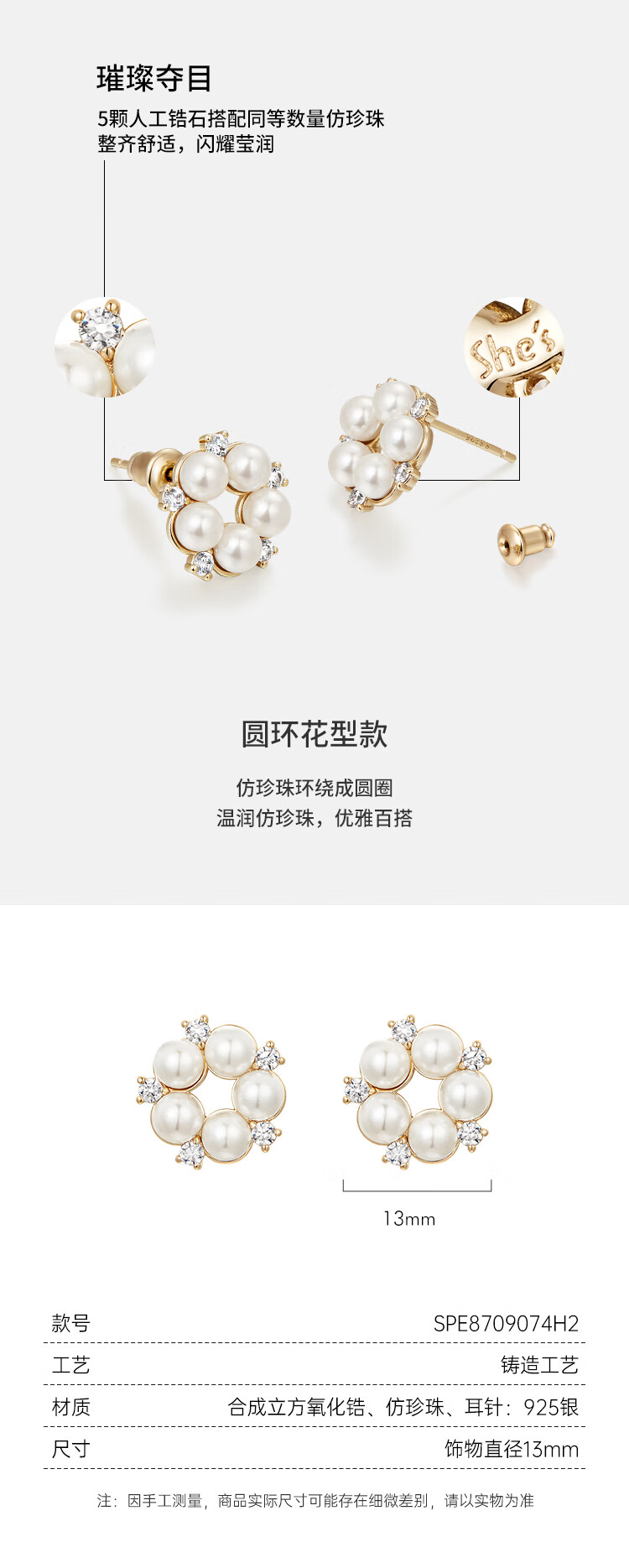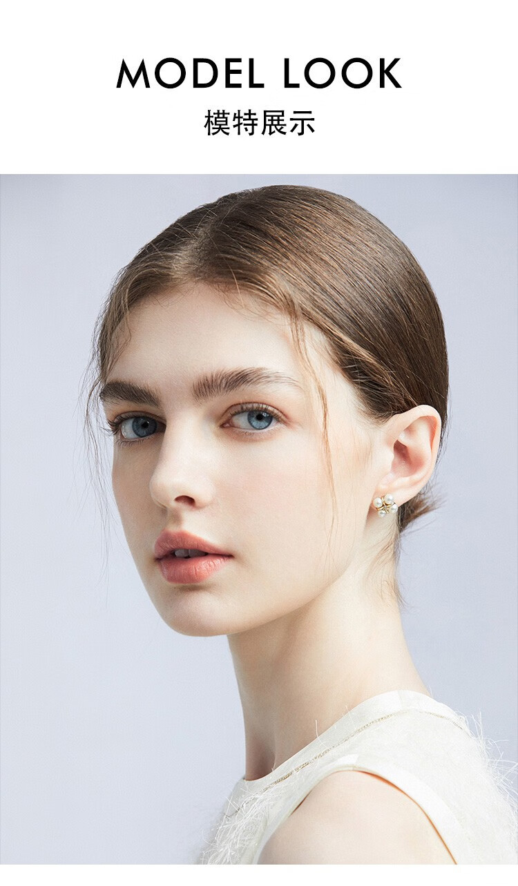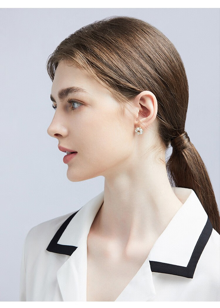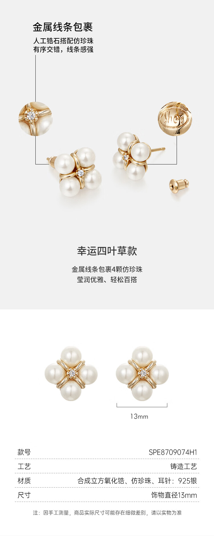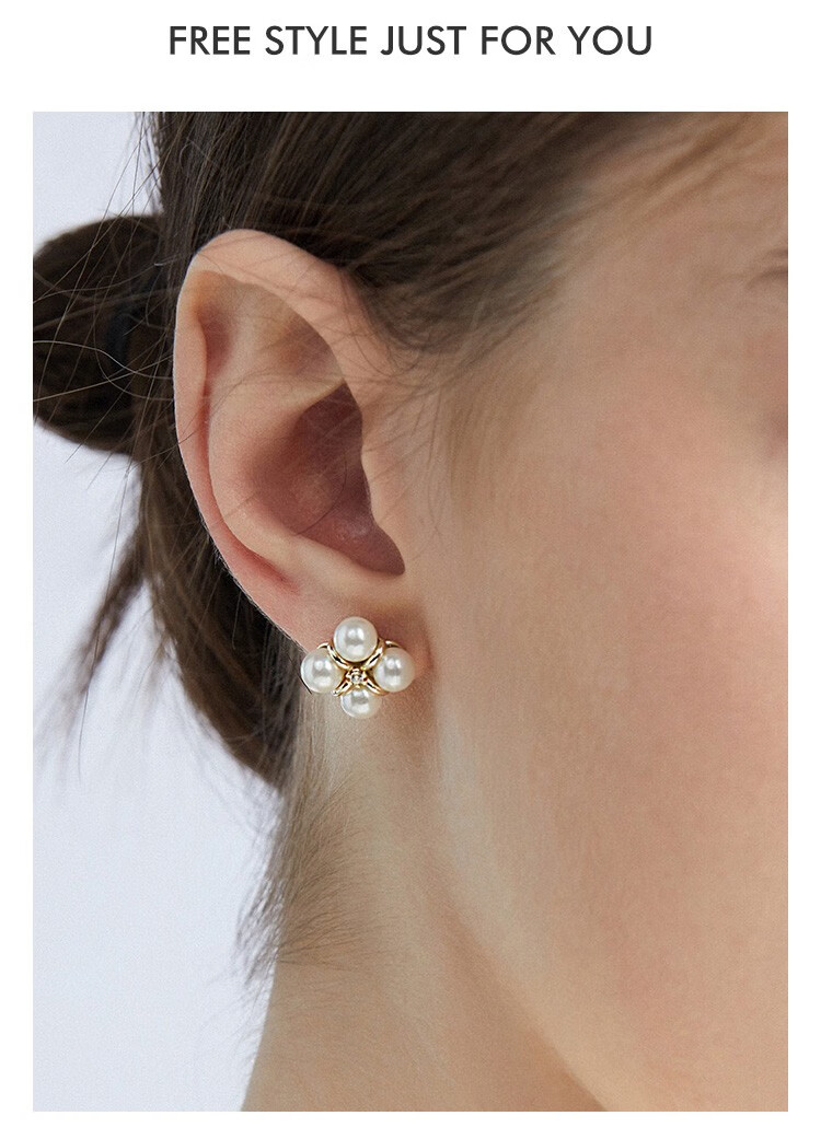 She s Akiko mini round four-leaf clover-shaped craft pearl earrings fashionable earrings birthday gift for girlfriend four-leaf clover type SPE8709074H1