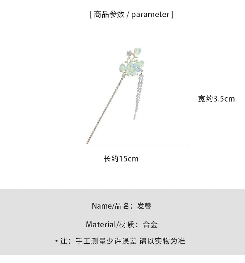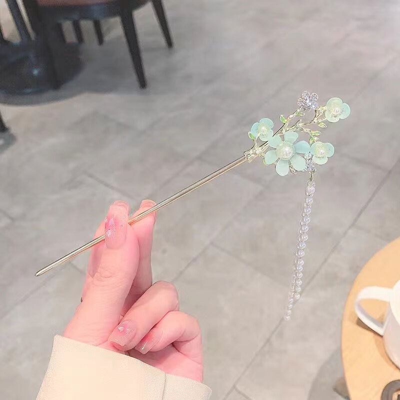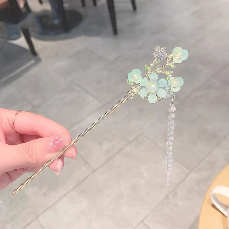 Mrs Win's new antique style tassel flower hairpin, ball headband, hairpin, cheongsam, Hanfu hairpin, walking accessories, light green flower tassel
