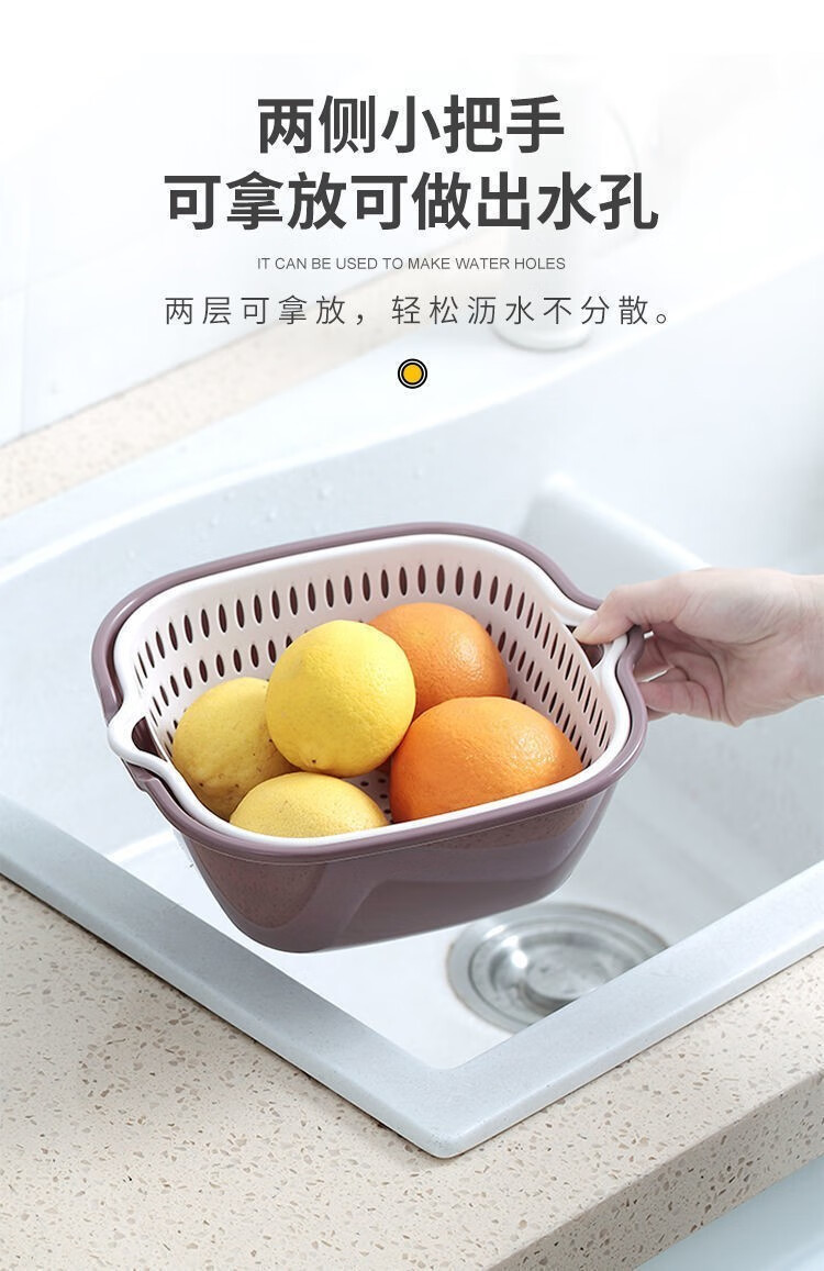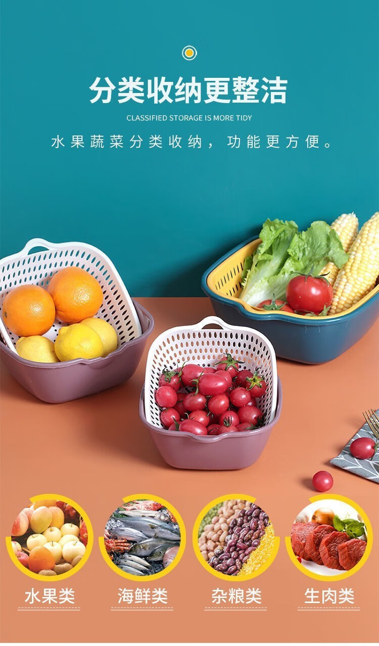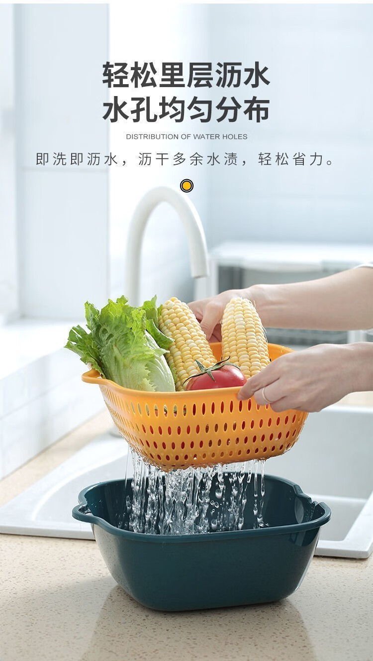 Chunshao vegetable sink kitchen drain basket washing vegetable basin vegetable basket multi-functional fruit plate vegetable basket thickened drain basket 2-piece set large blue and yellow two-color